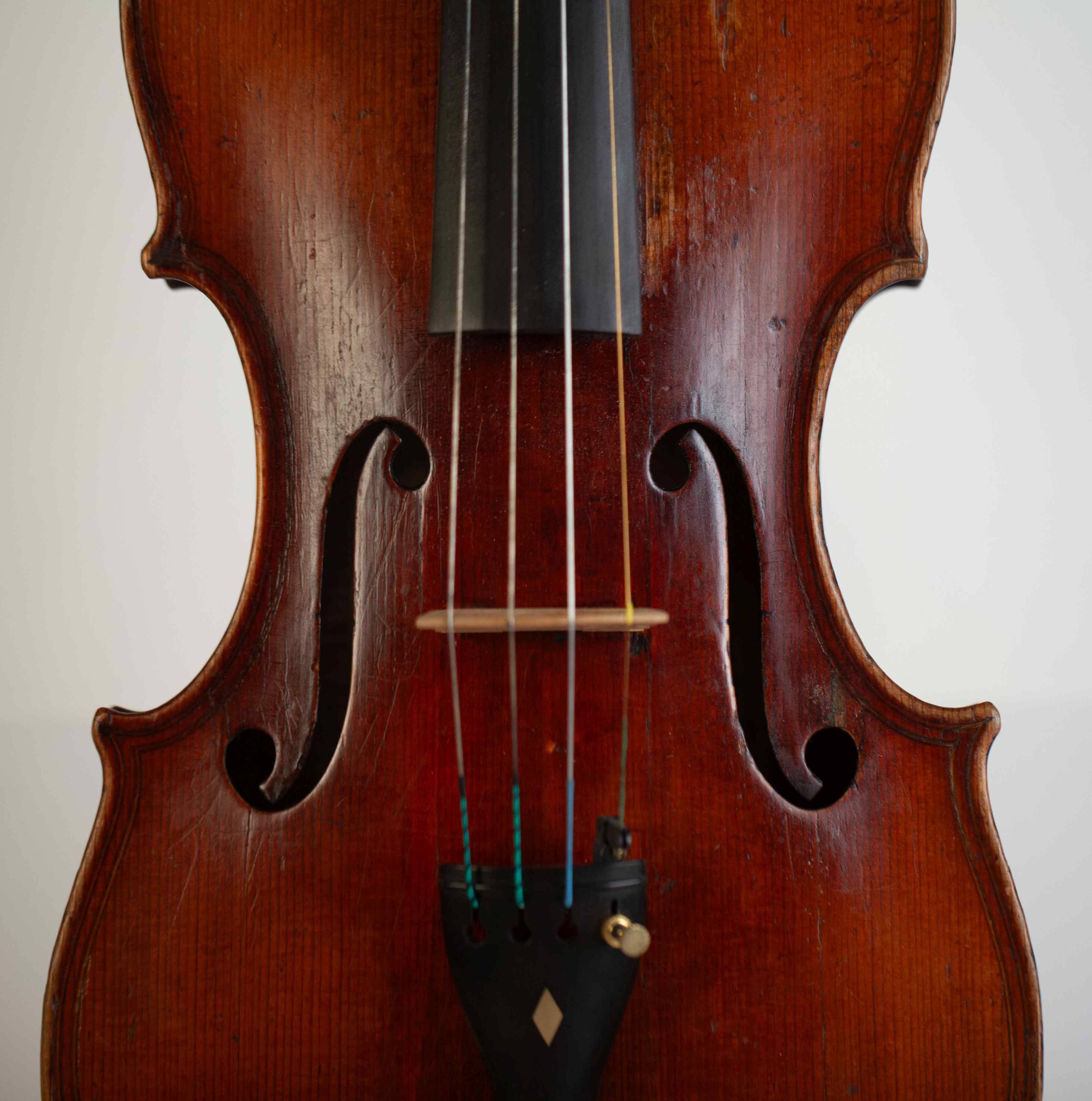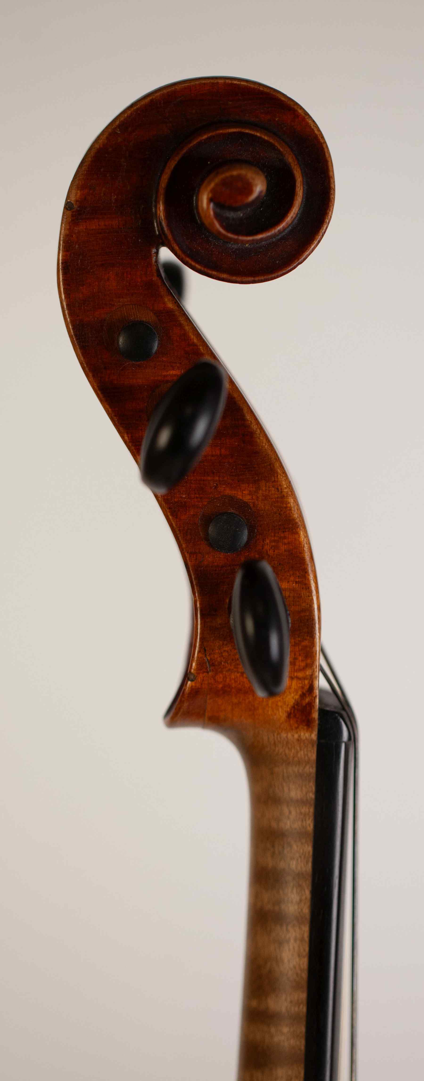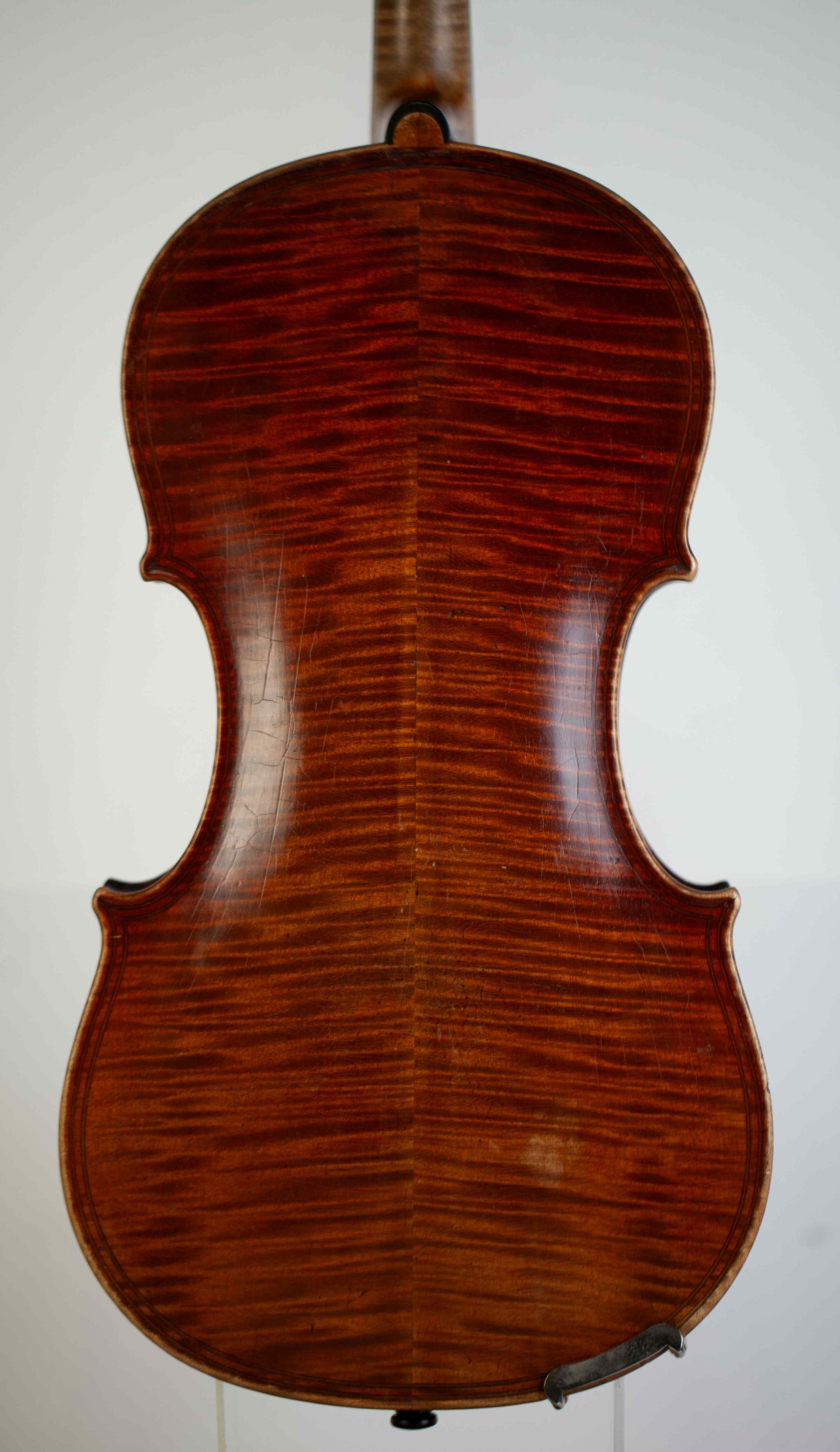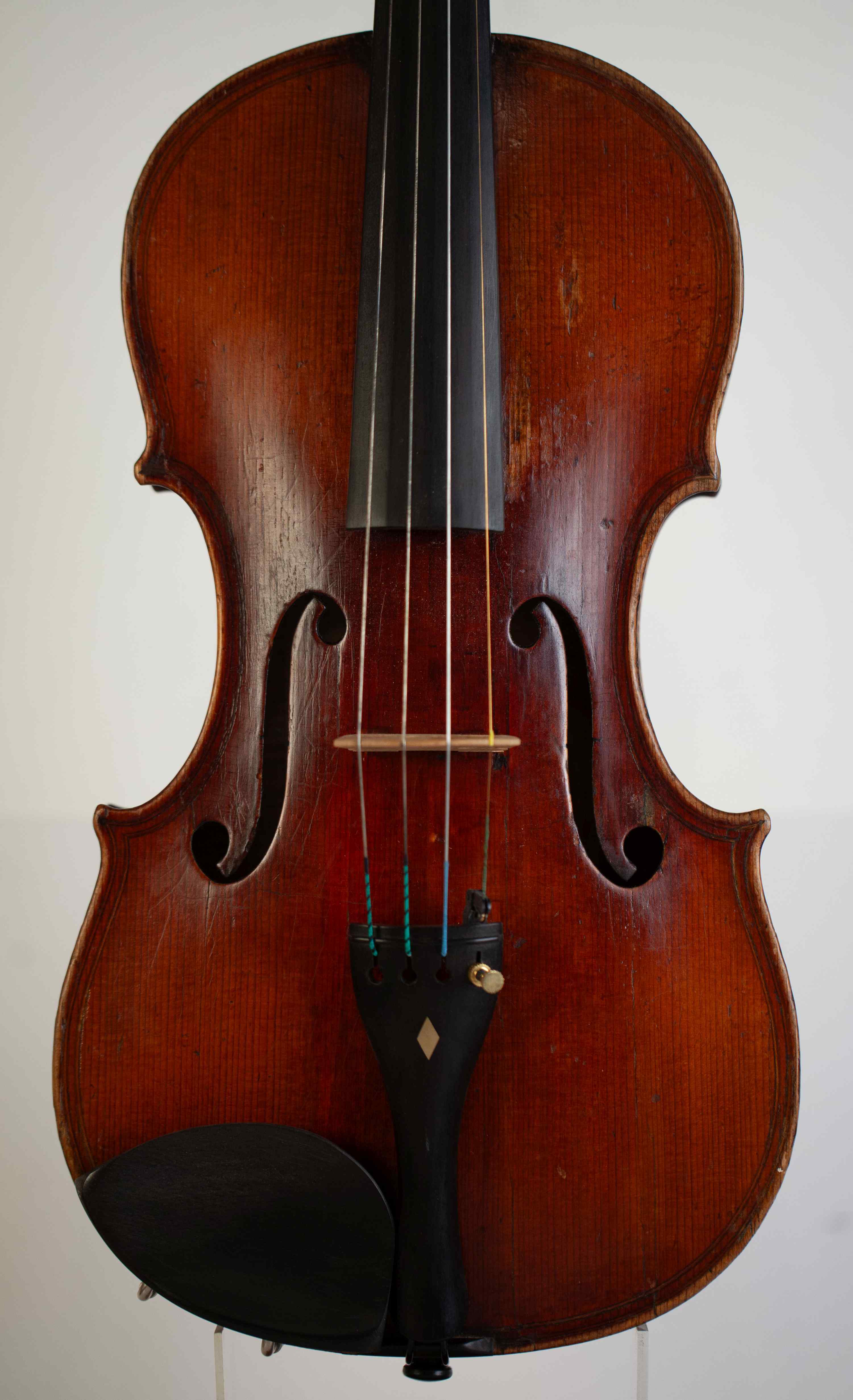 The instrument is ready to play with some old repaired cracks on top and sides, grafted scroll, bushed peg-holes, good ebony set up, master made bridge and Evah Pirazzi strings.