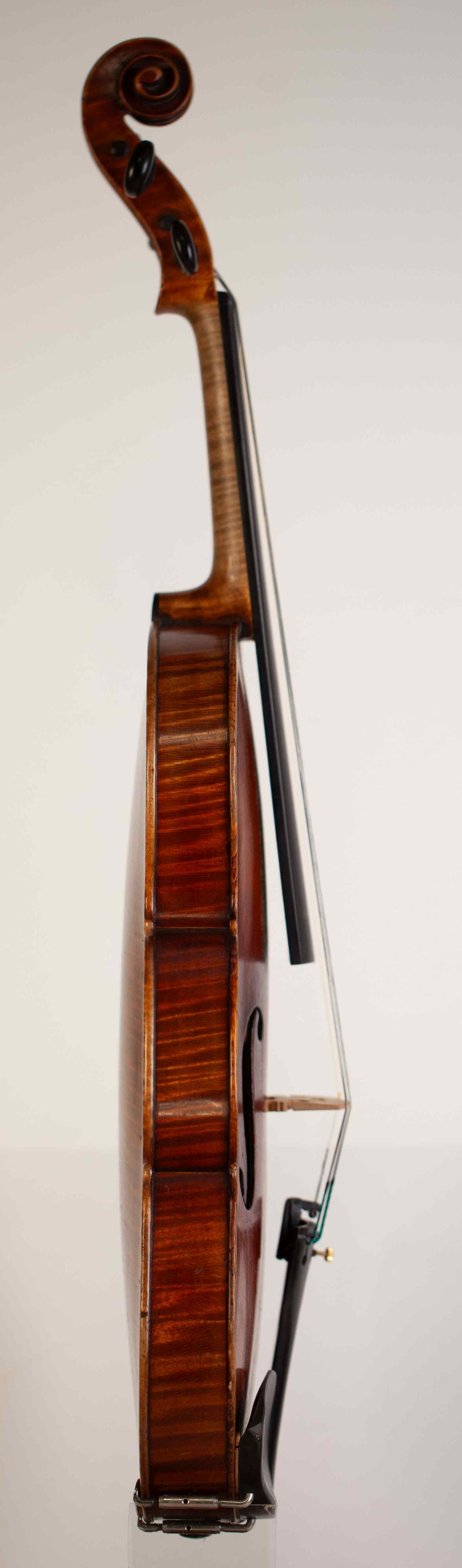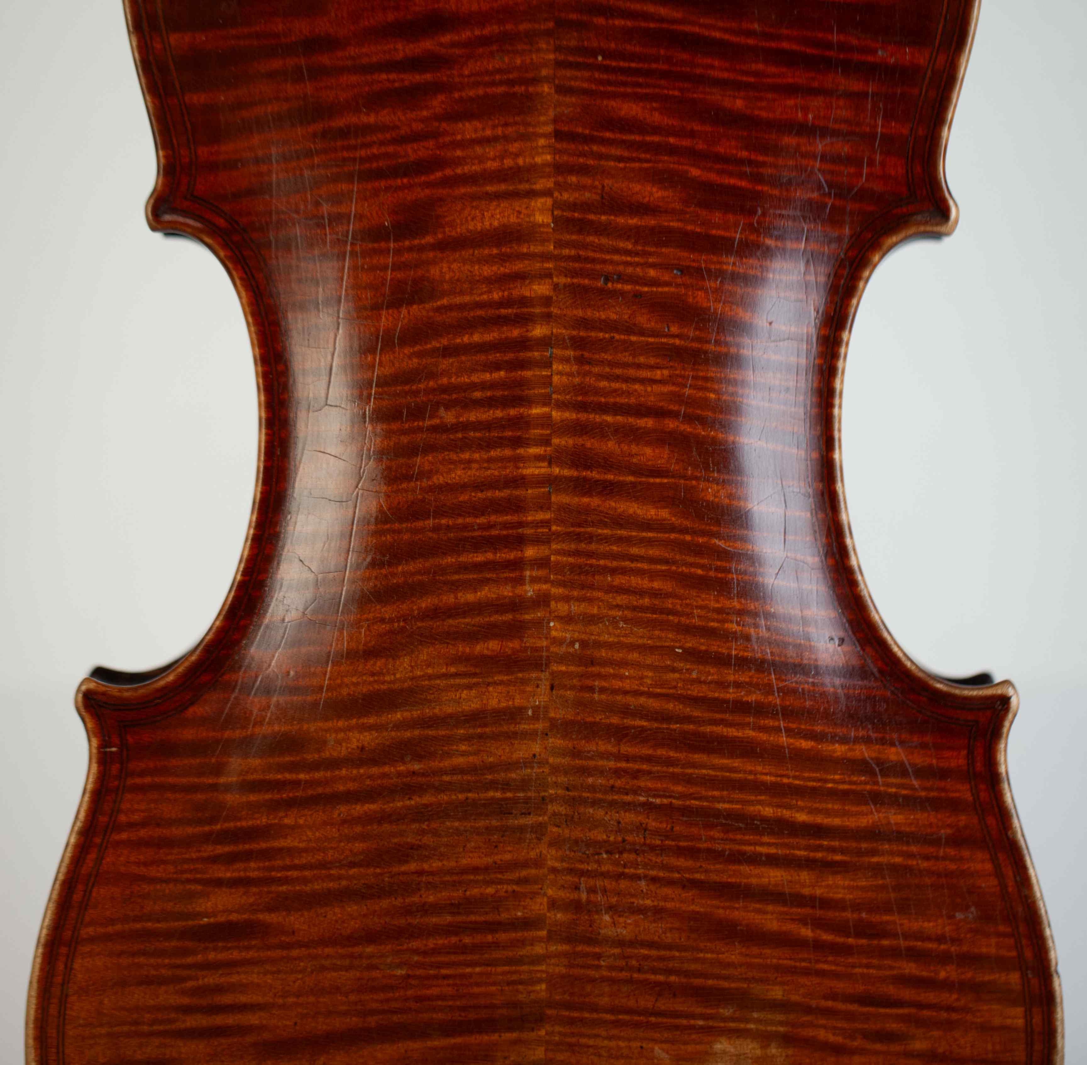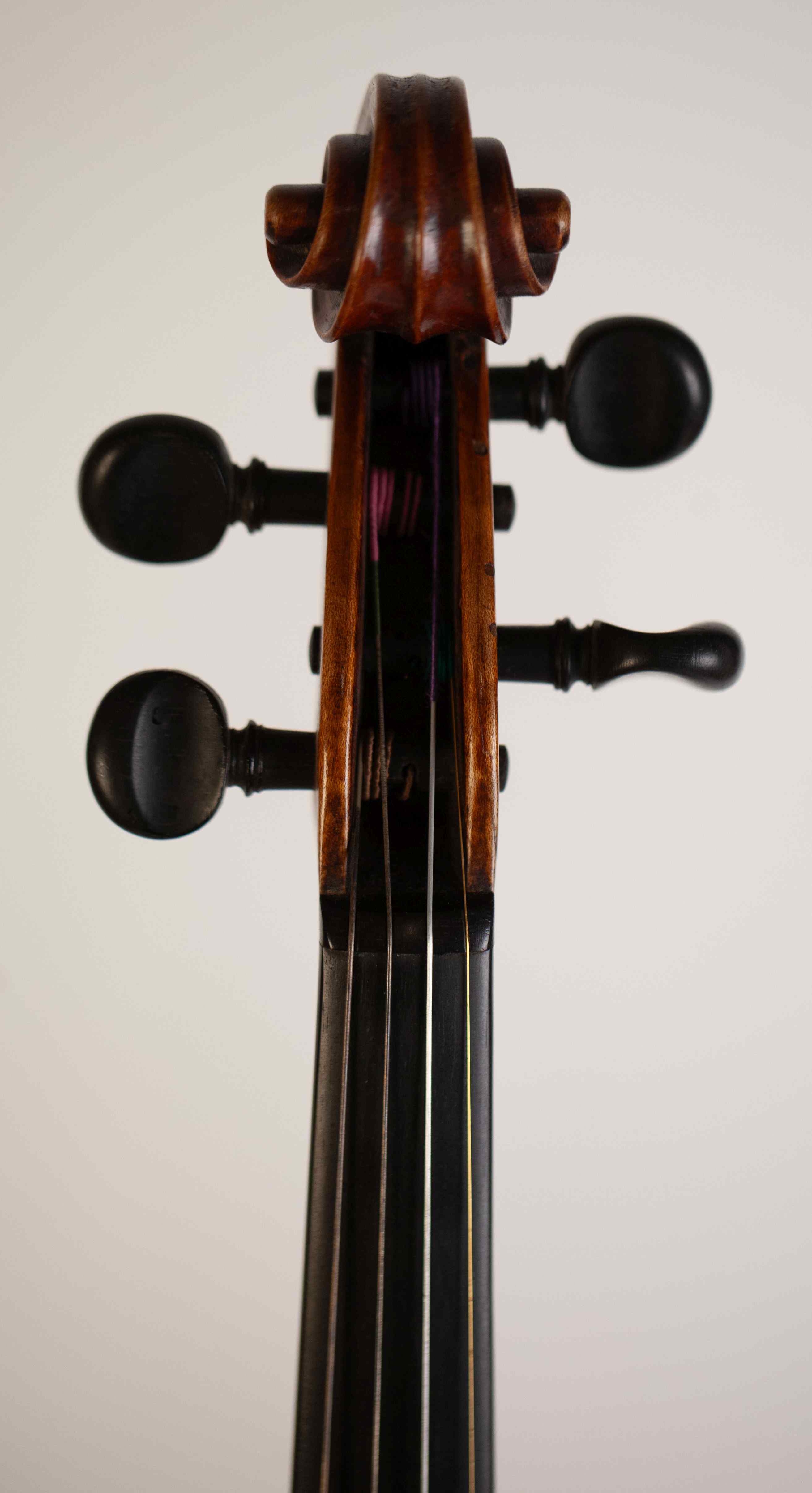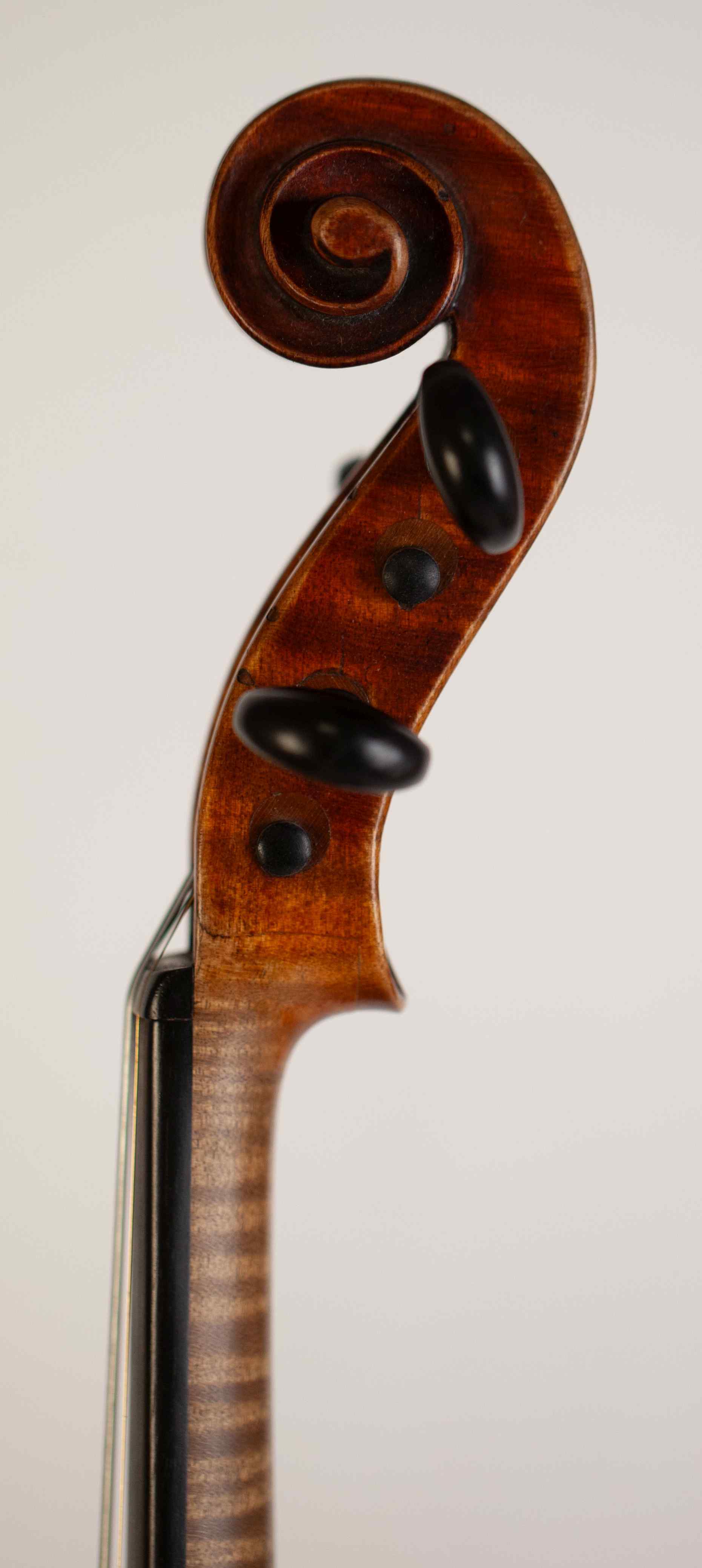The instrument is ready to play with some old repaired cracks on top and sides, grafted scroll, bushed peg-holes, good ebony set up, master made bridge and Evah Pirazzi strings.