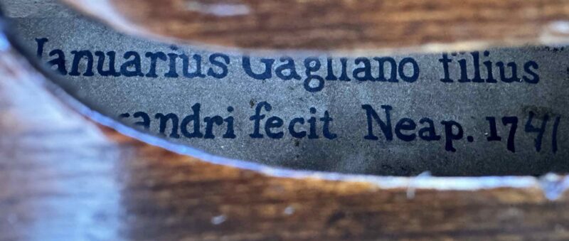 Old violin, labeled Januarius Gagliano filius Alexandri fecit Neap. 1741.