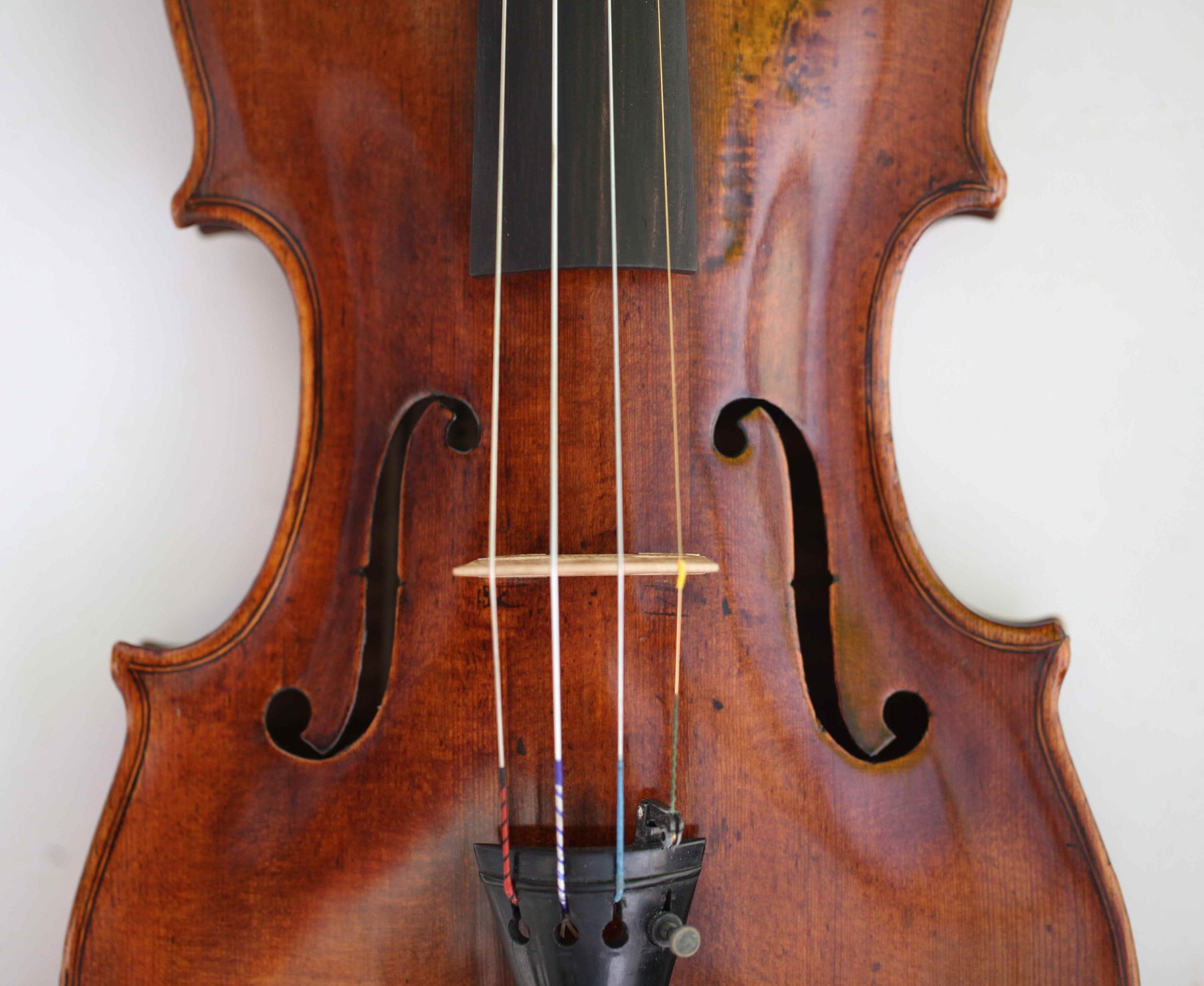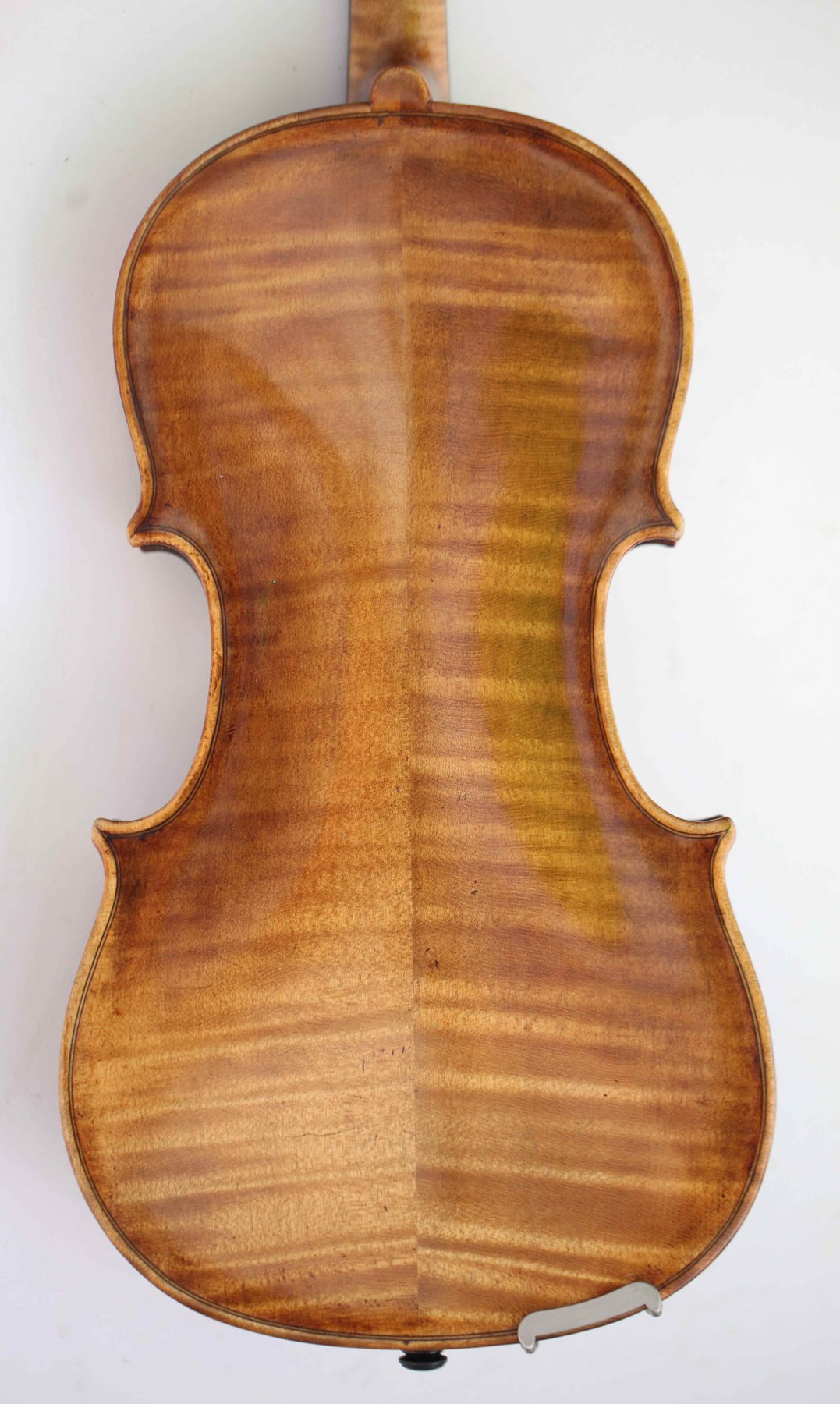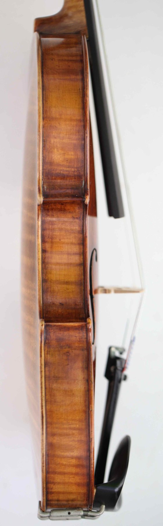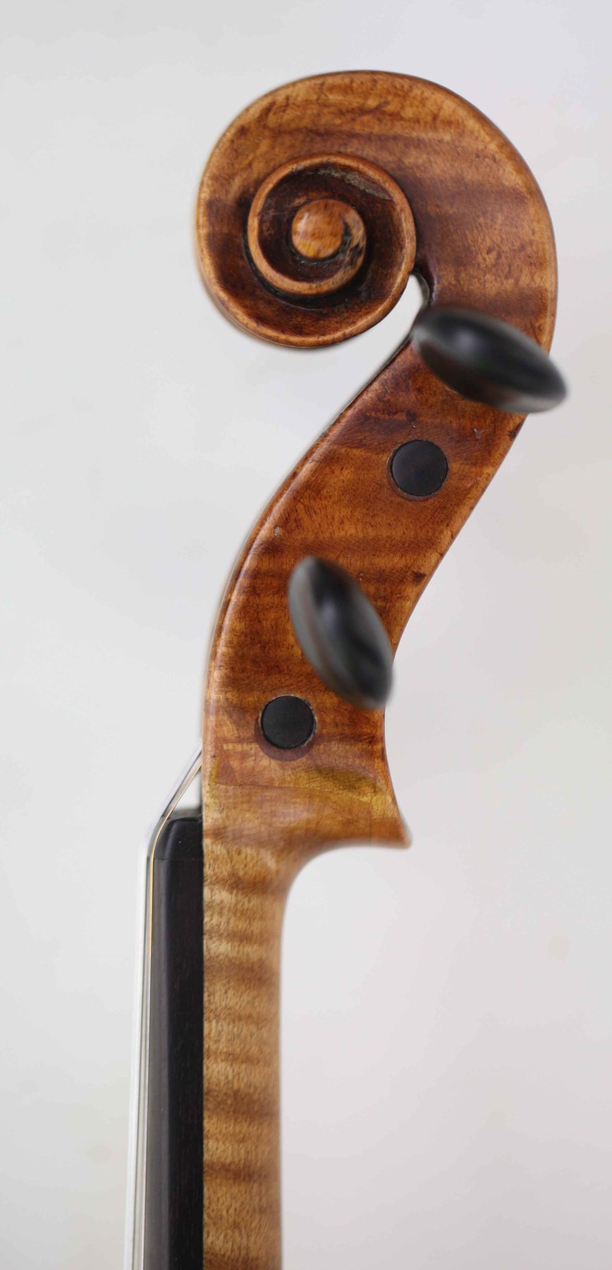 The instrument is ready to play with grafted scroll, finest ebony set up, old master made bridge and pirastro strings. Some old professionally repaired (not visible) cracks.