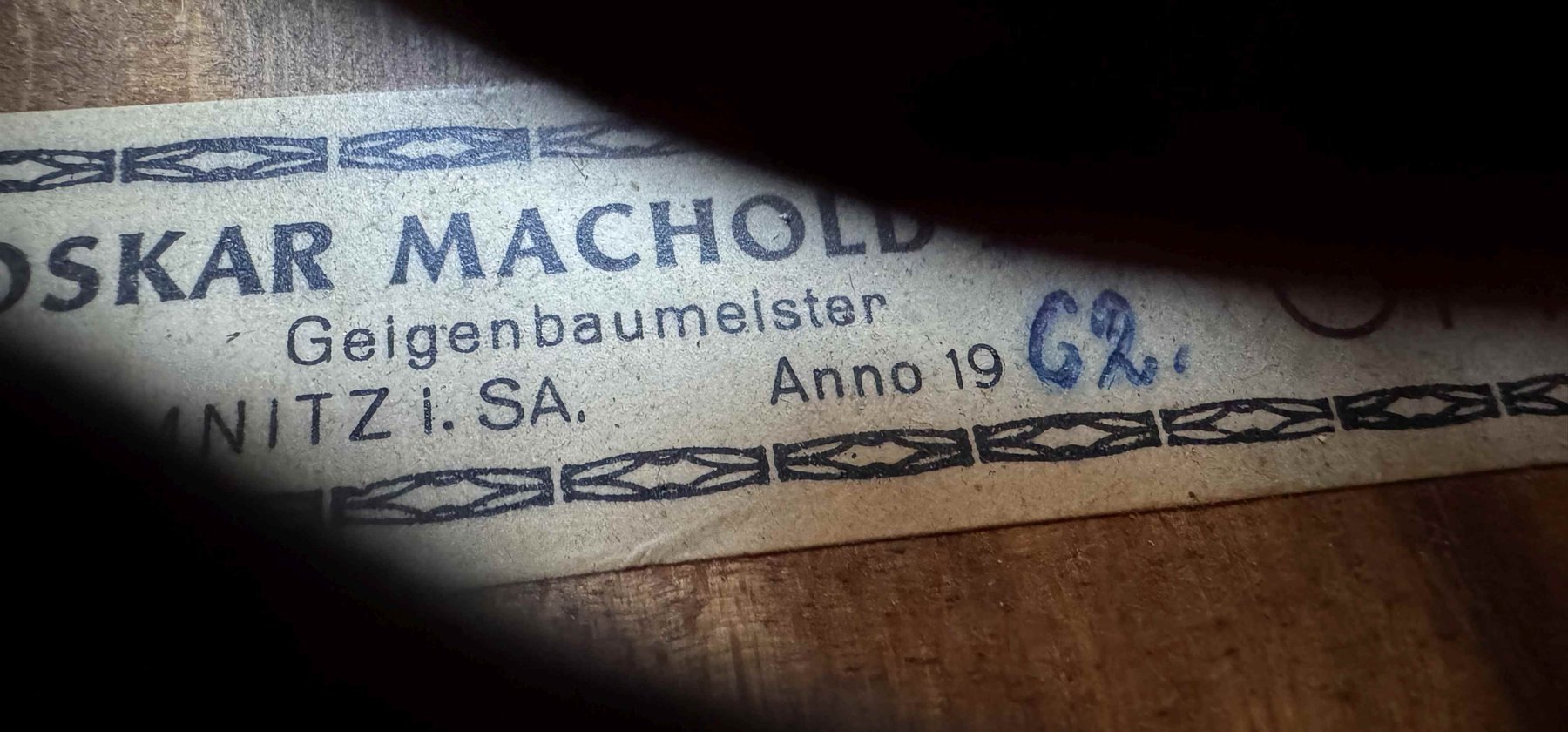Old violin made and labeled: Oskar Machold Geigenbaumeister Chemnitz i Sa Anno 1962 O.M.