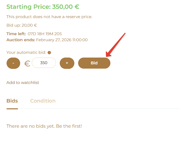 When the reserve price is reached, you’ll see “reserve met.” Only lots with this message will be sold once the sale comes to an end.