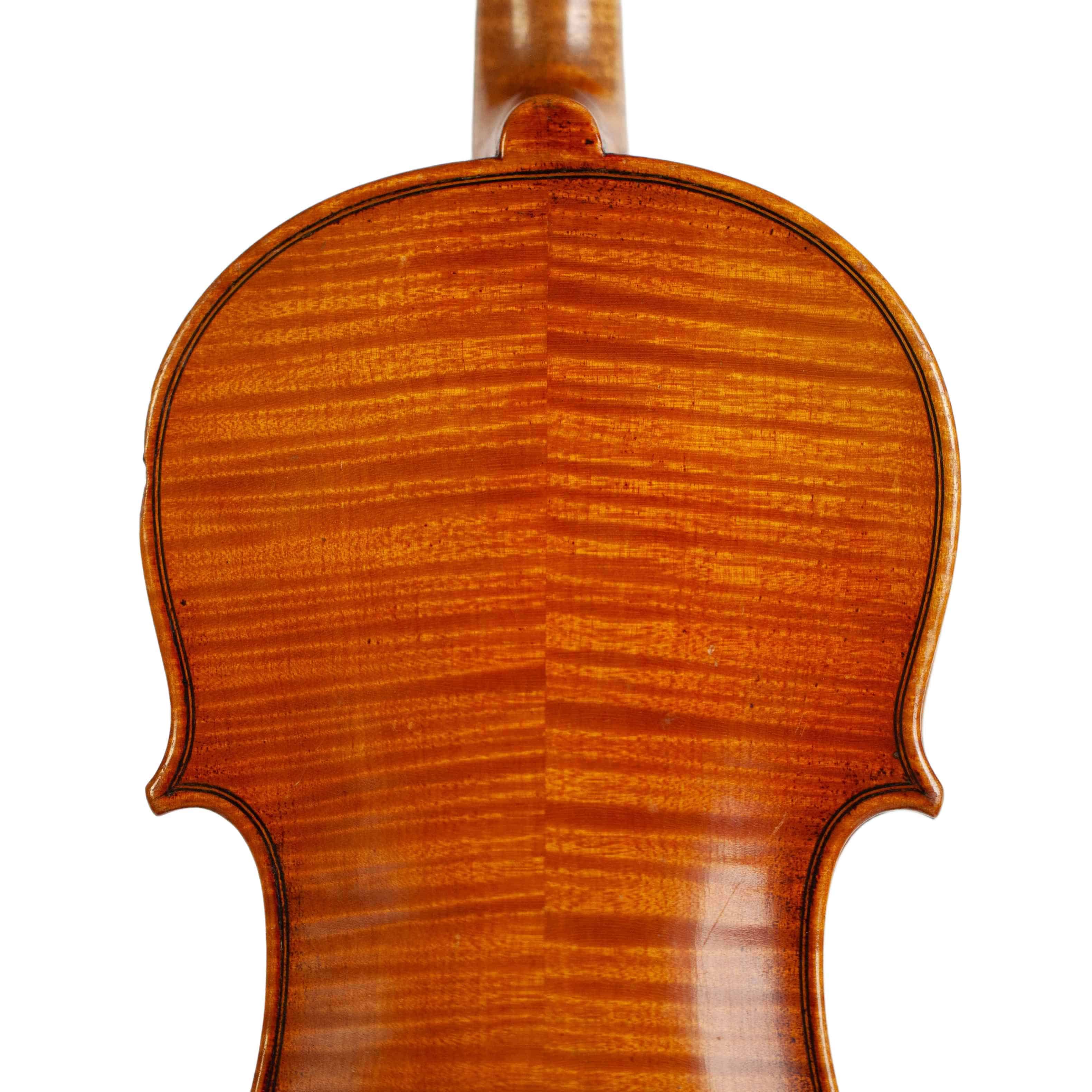 The whole length of the violin is 515 mm and the back 314 mm. The width of the upper bouts: 139 mm; middle bouts: 97 mm; lower bouts: 174 mm.