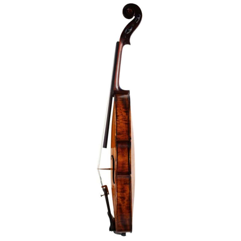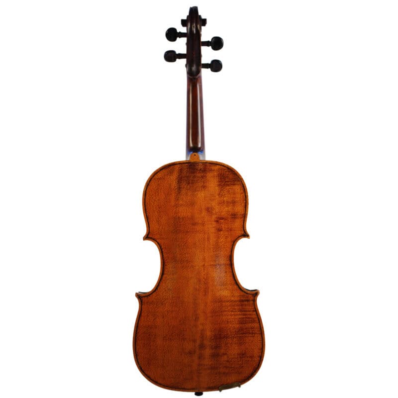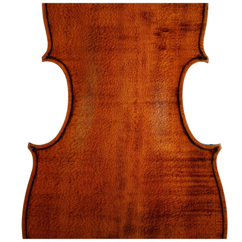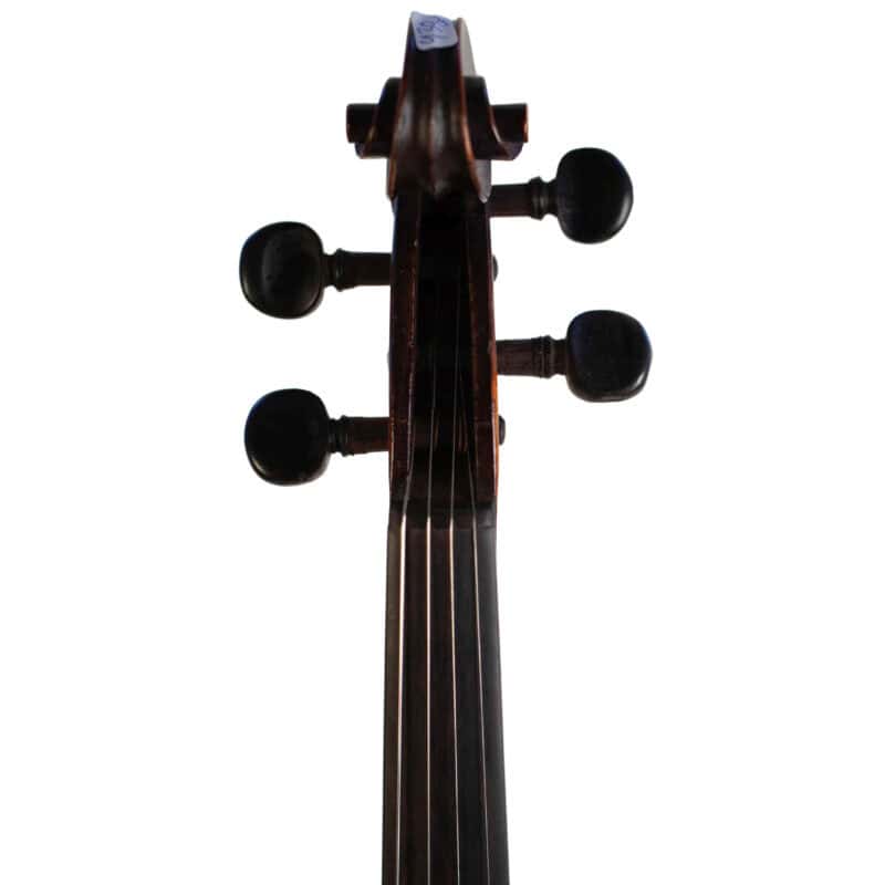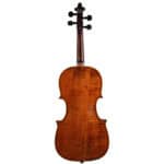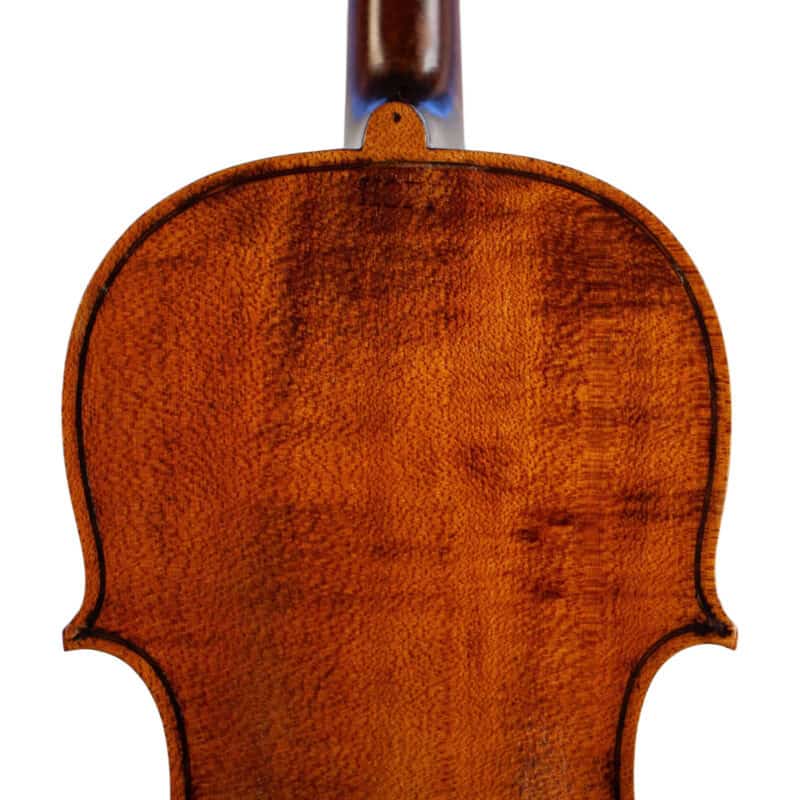 The whole length of the violin is 587 mm and the back 353 mm. The width of the upper bouts: 163 mm; middle bouts: 115 mm; lower bouts: 203 mm.