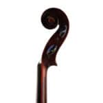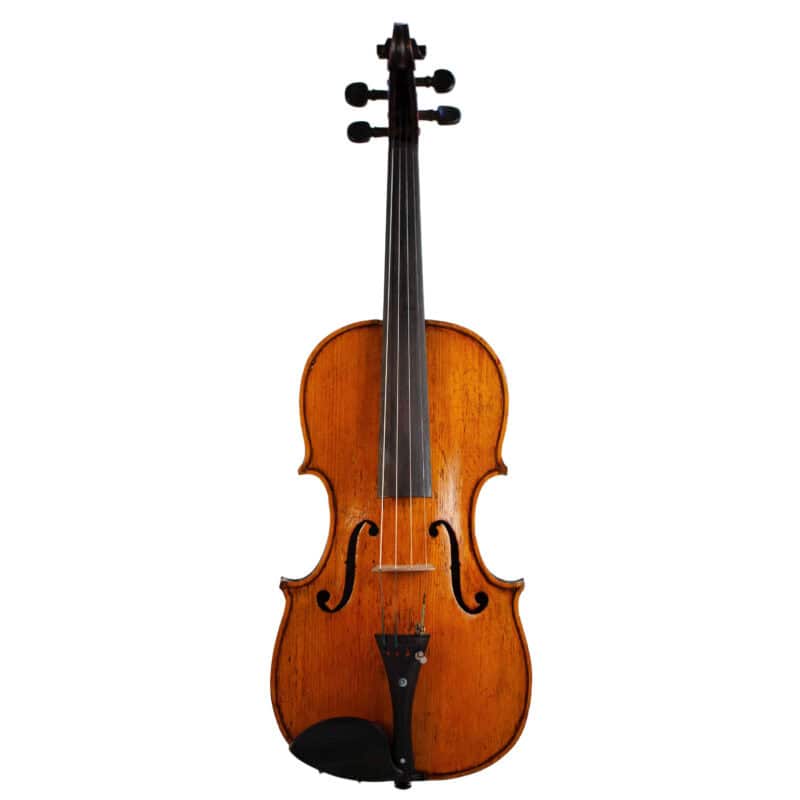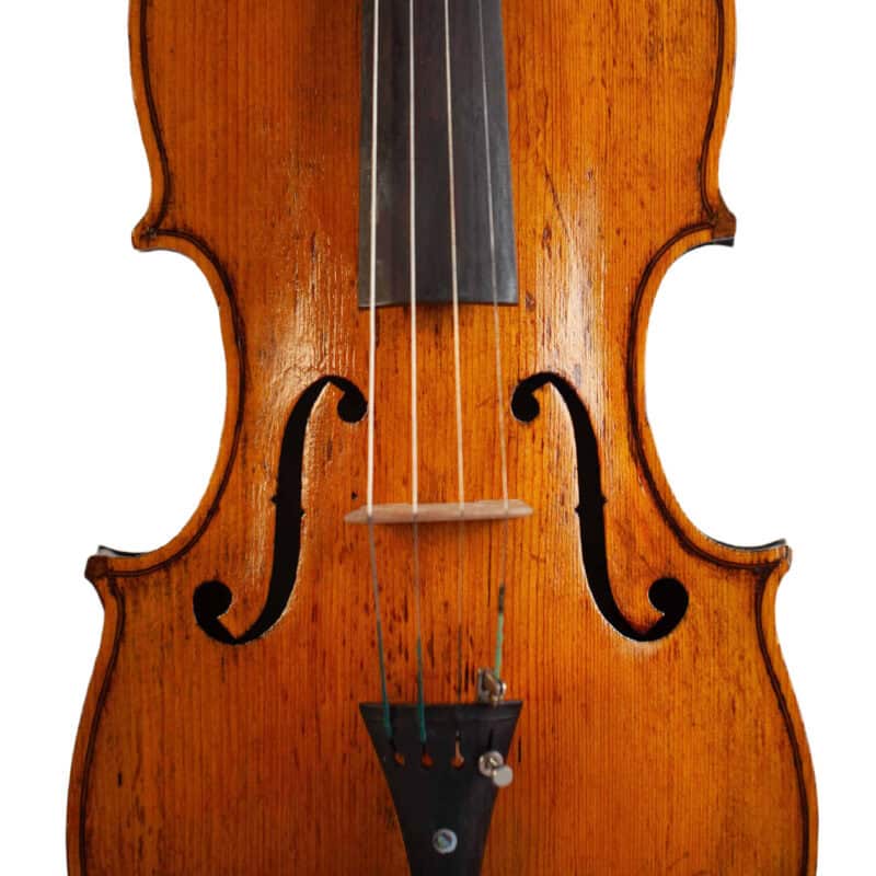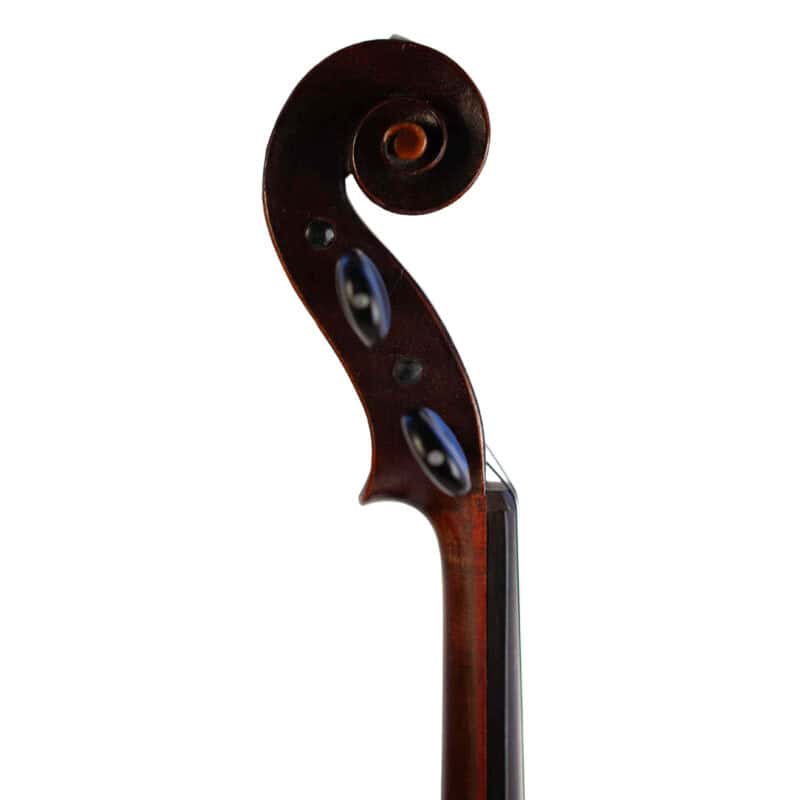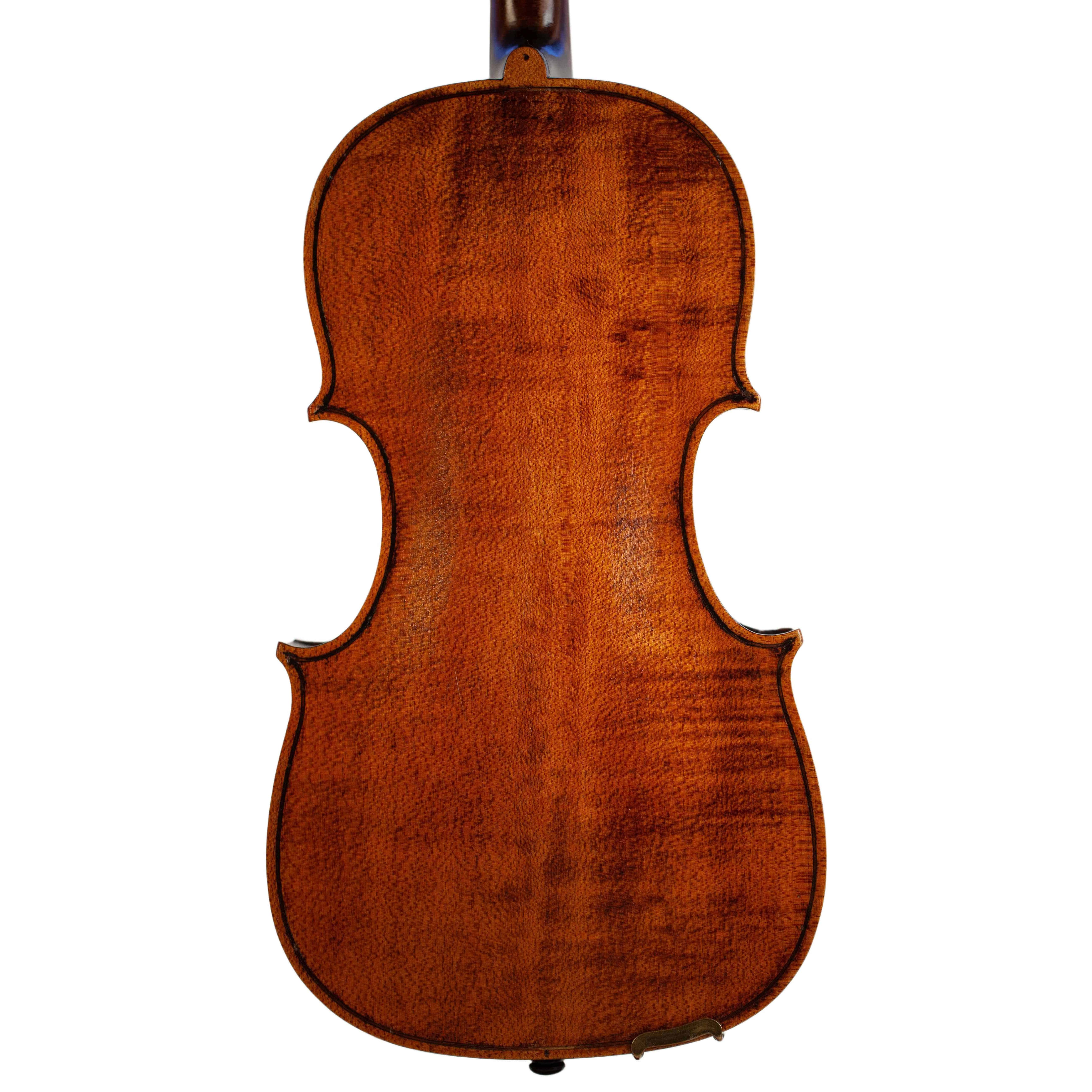 The whole length of the violin is 587 mm and the back 353 mm. The width of the upper bouts: 163 mm; middle bouts: 115 mm; lower bouts: 203 mm.