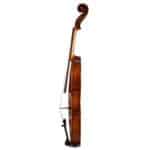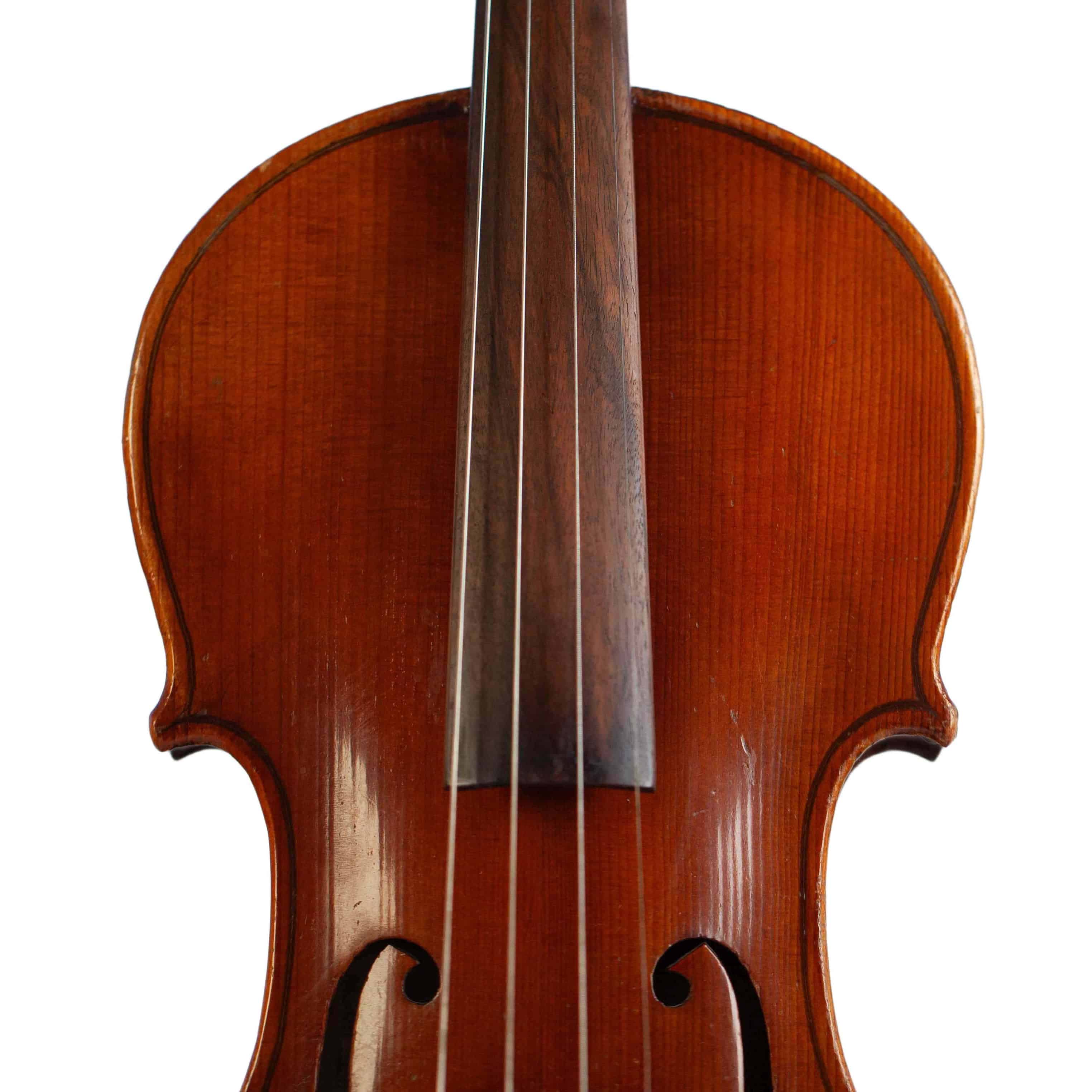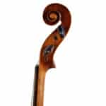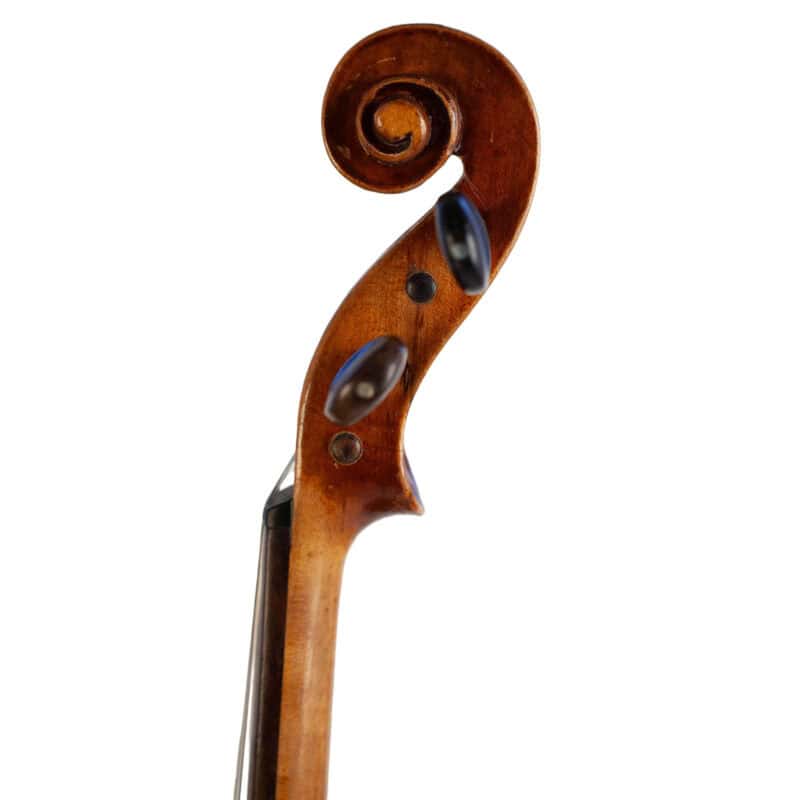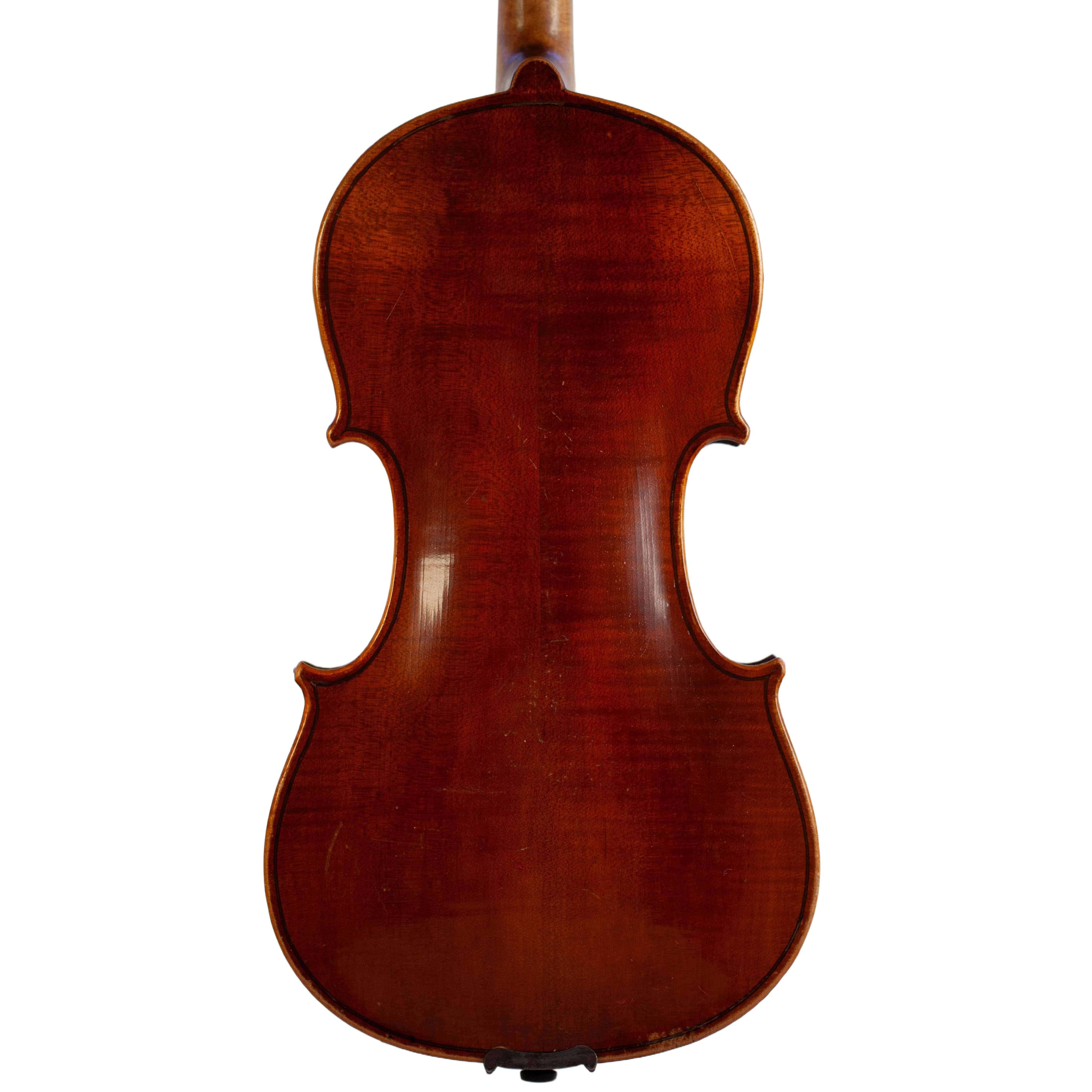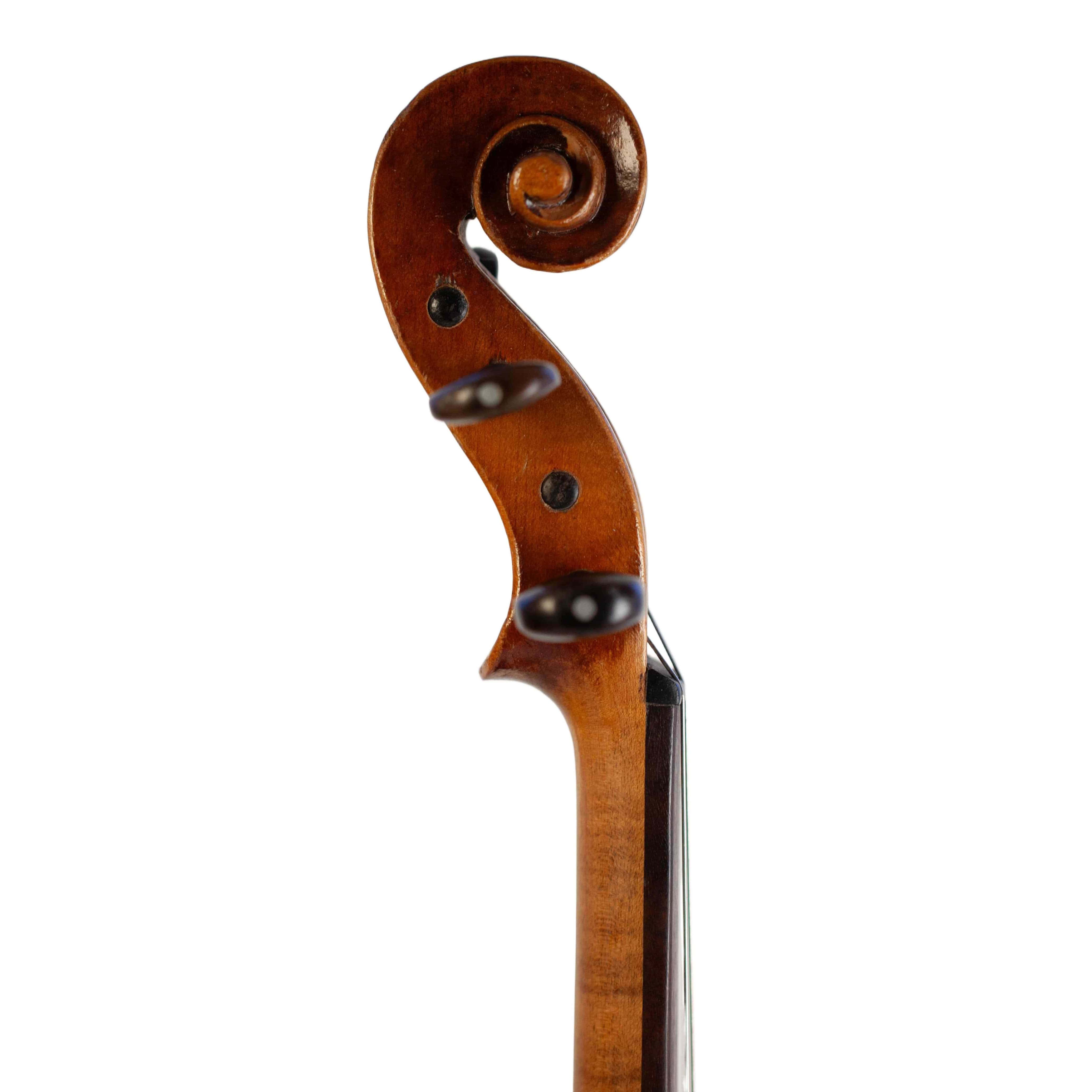 The whole length of the violin is 593 mm and the back 358 mm. The width of the upper bouts: 165 mm; middle bouts: 110 mm; lower bouts: 205 mm.