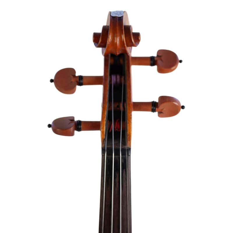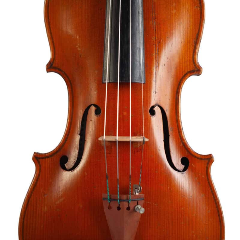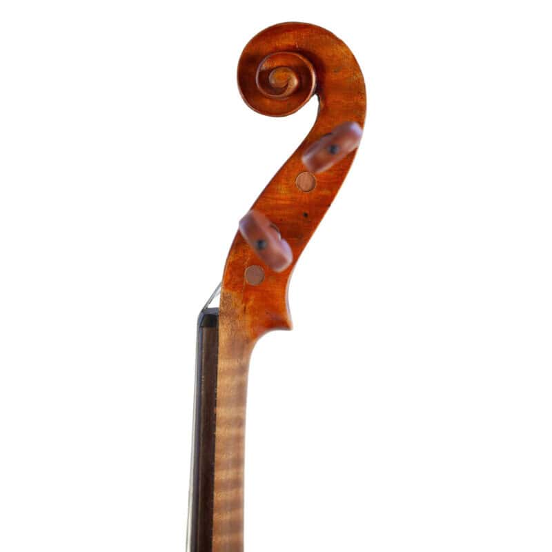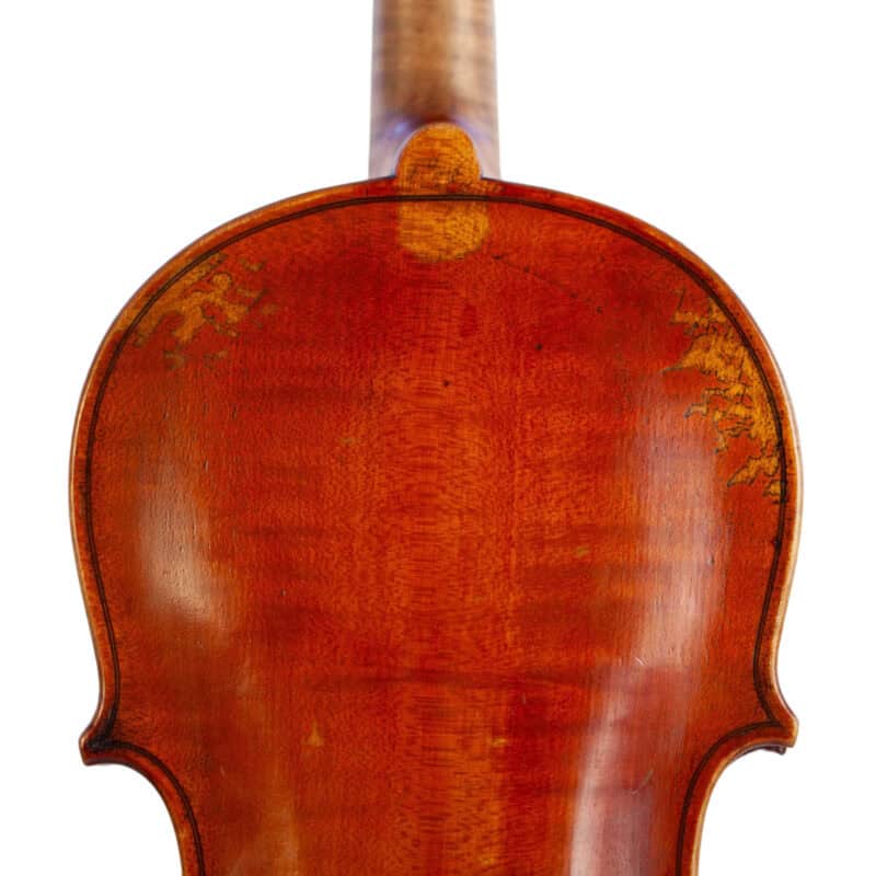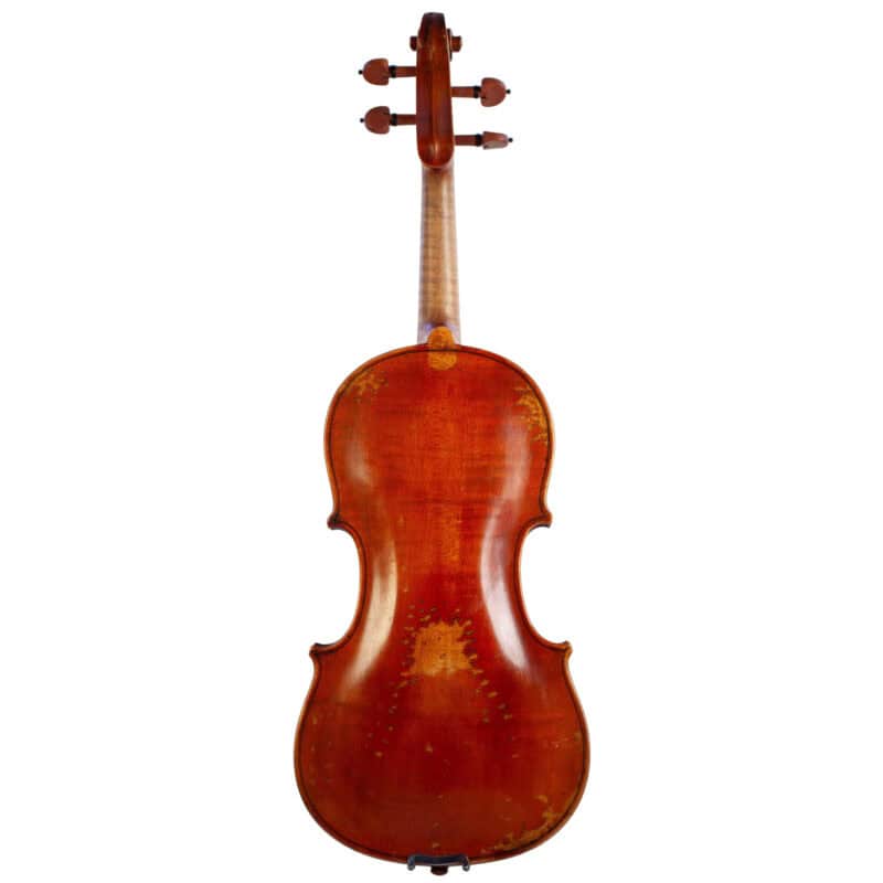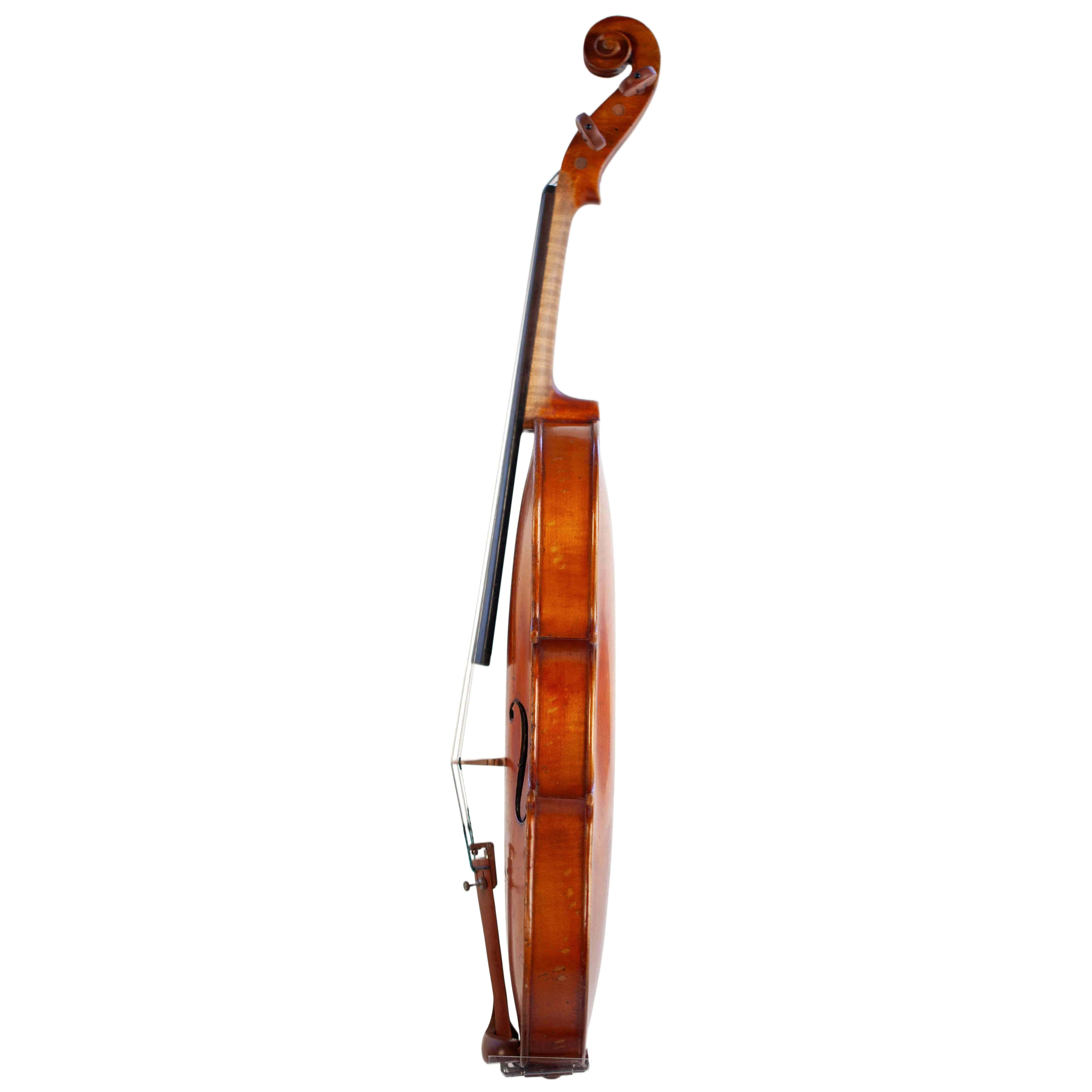 The whole length of the violin is 597 mm and the back 364 mm. The width of the upper bouts: 164 mm; middle bouts: 117 mm; lower bouts: 207 mm.