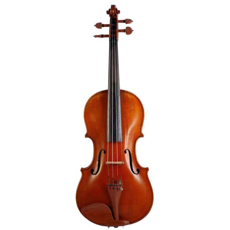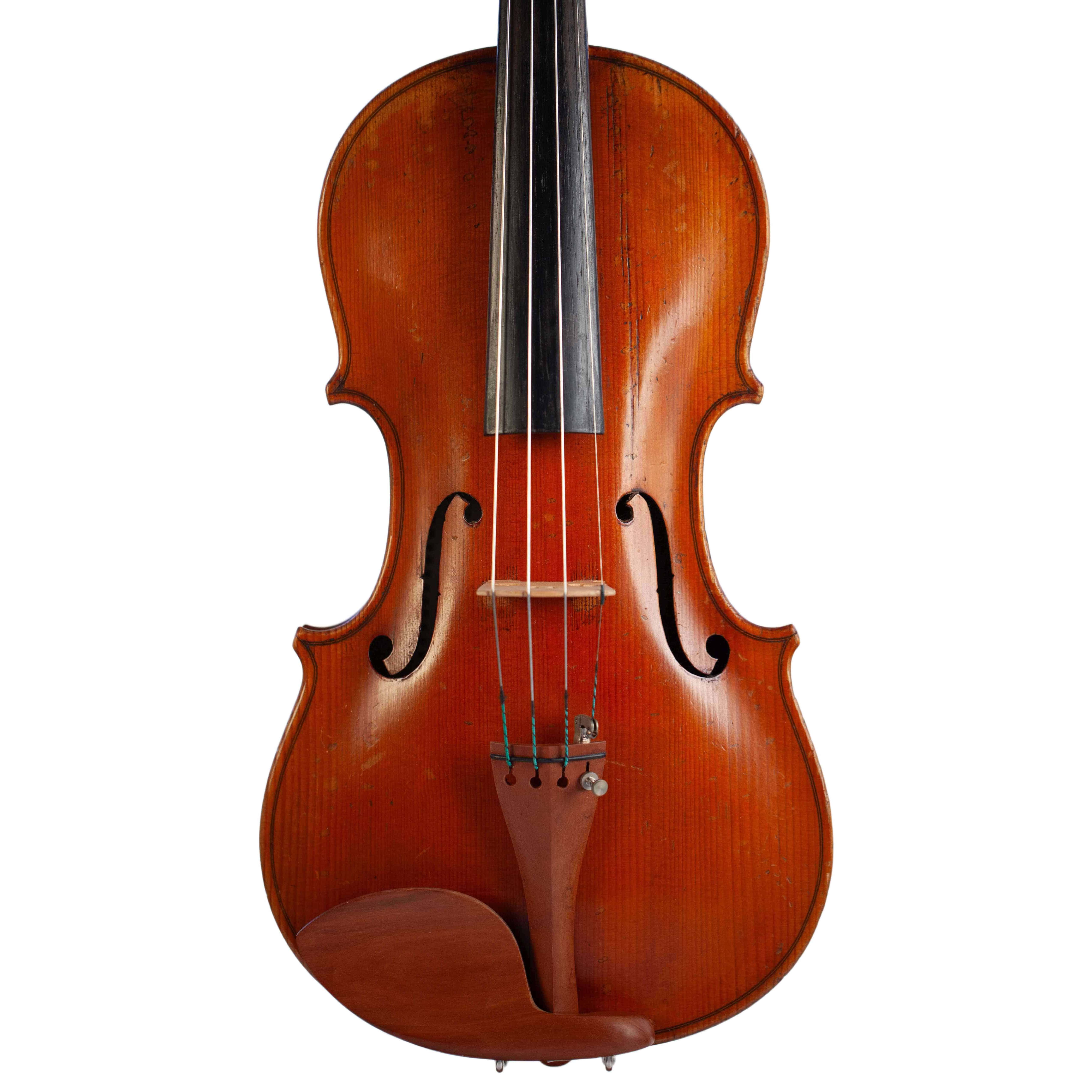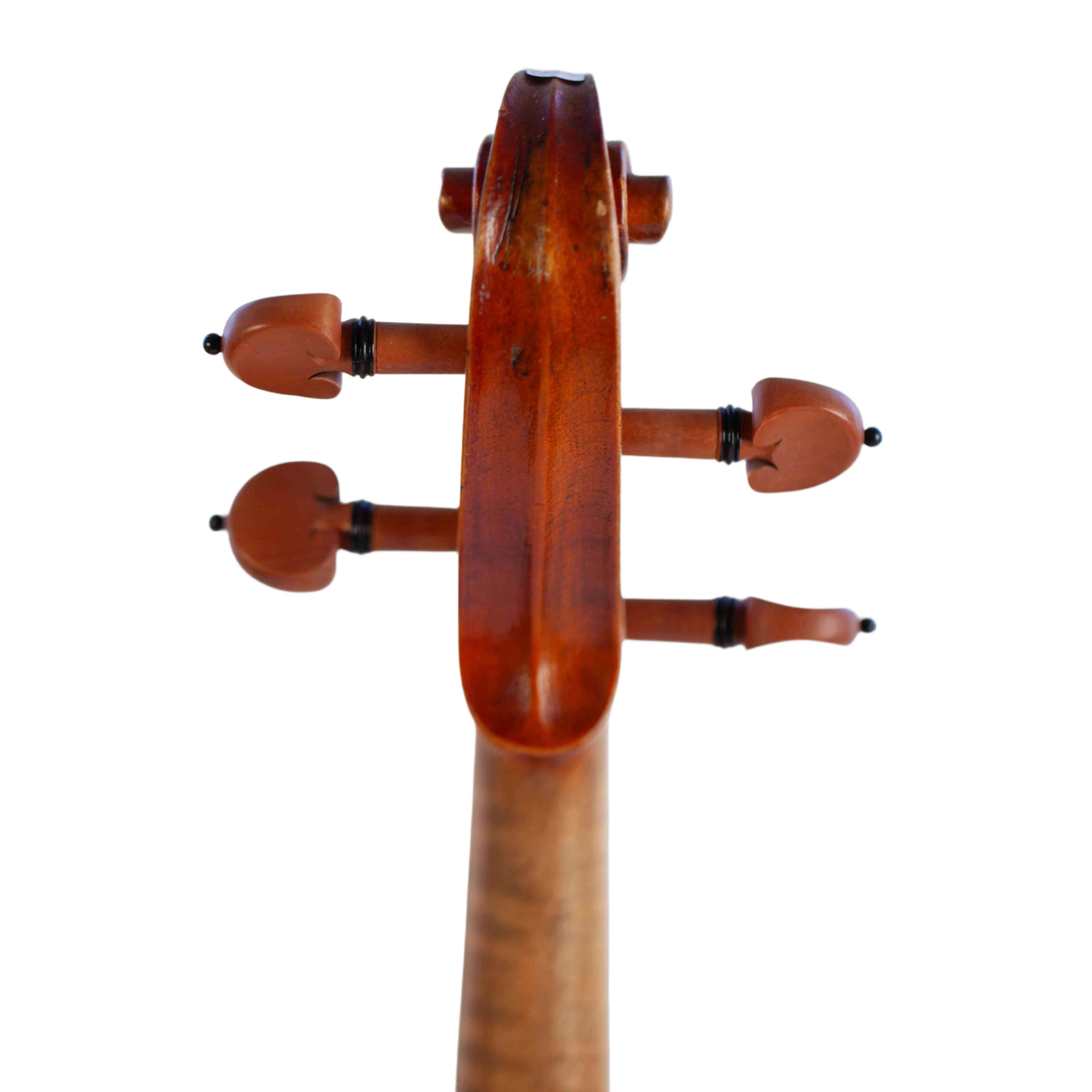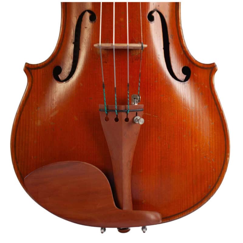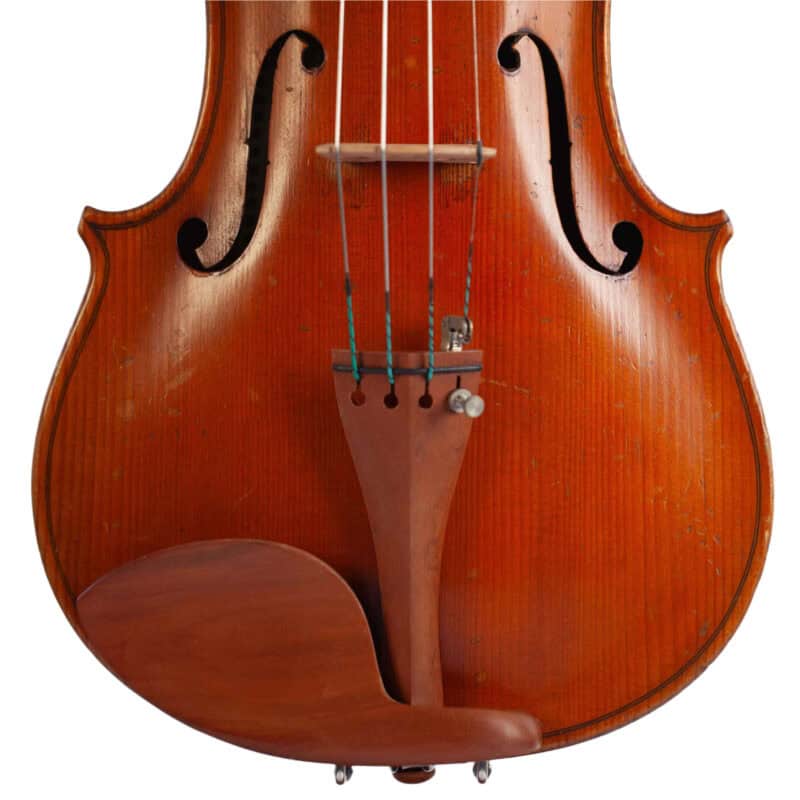 The whole length of the violin is 597 mm and the back 364 mm. The width of the upper bouts: 164 mm; middle bouts: 117 mm; lower bouts: 207 mm.