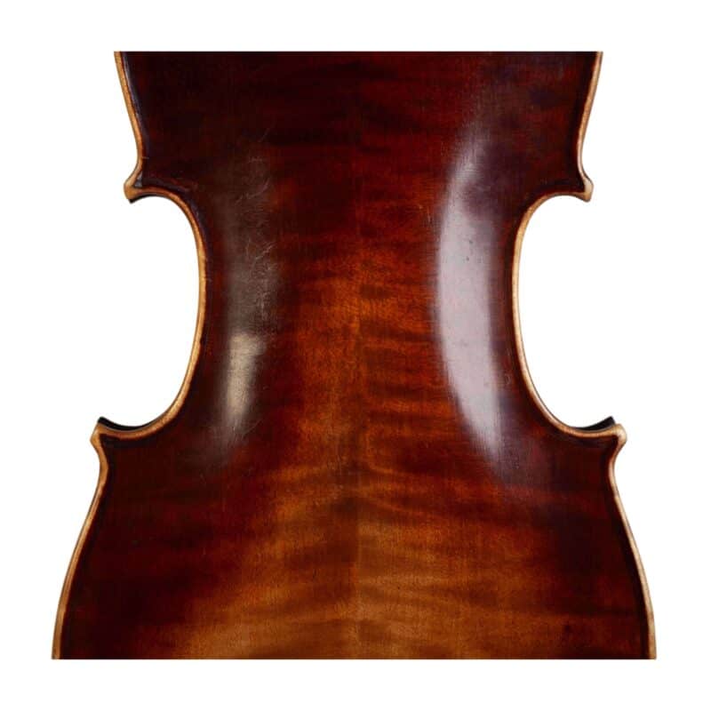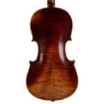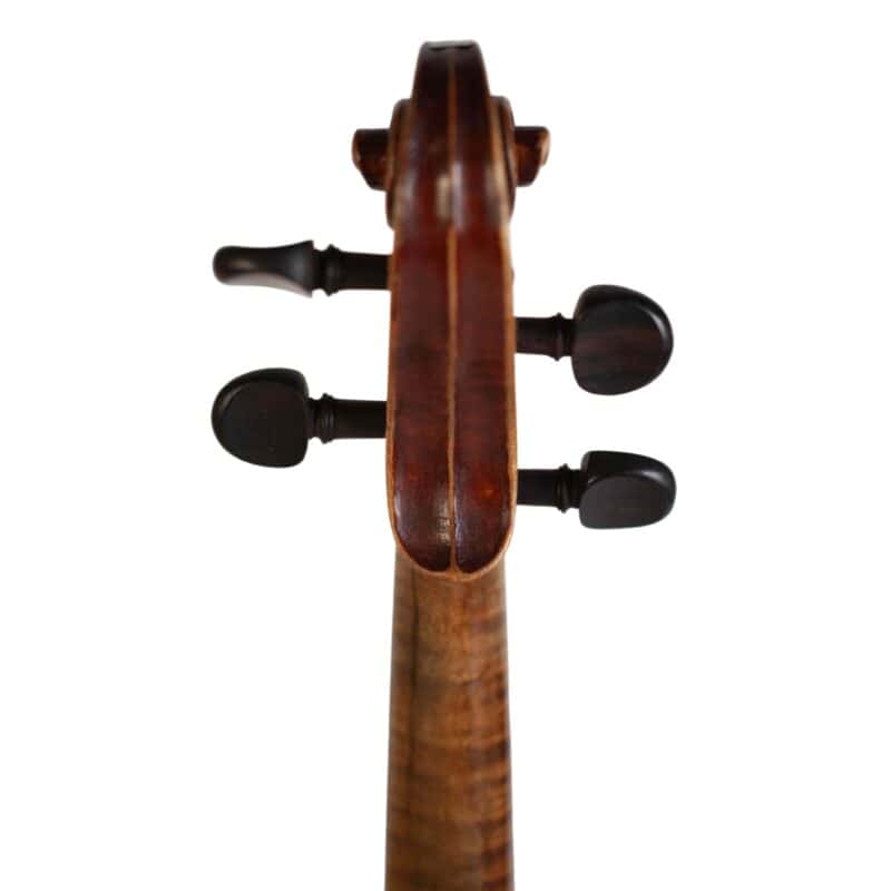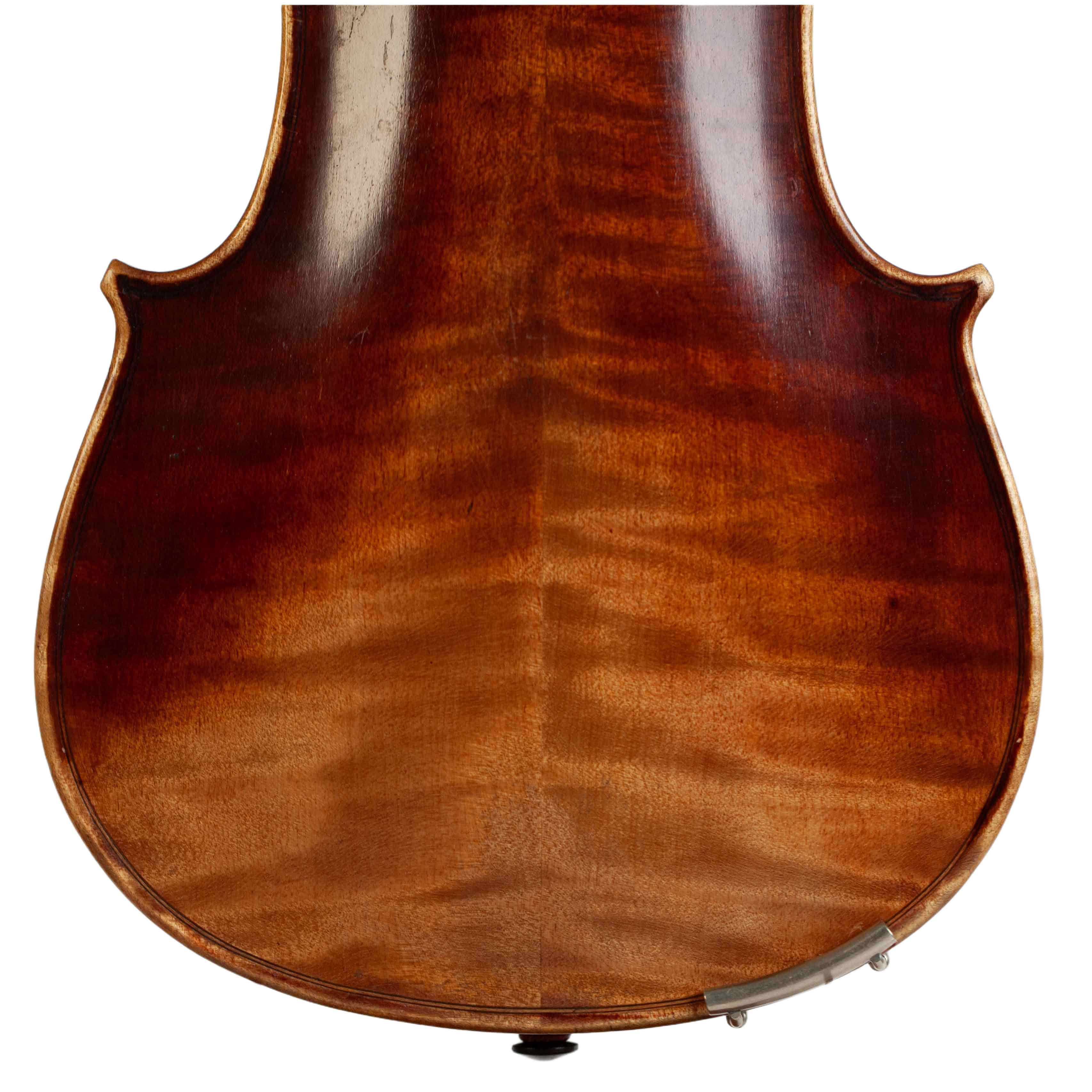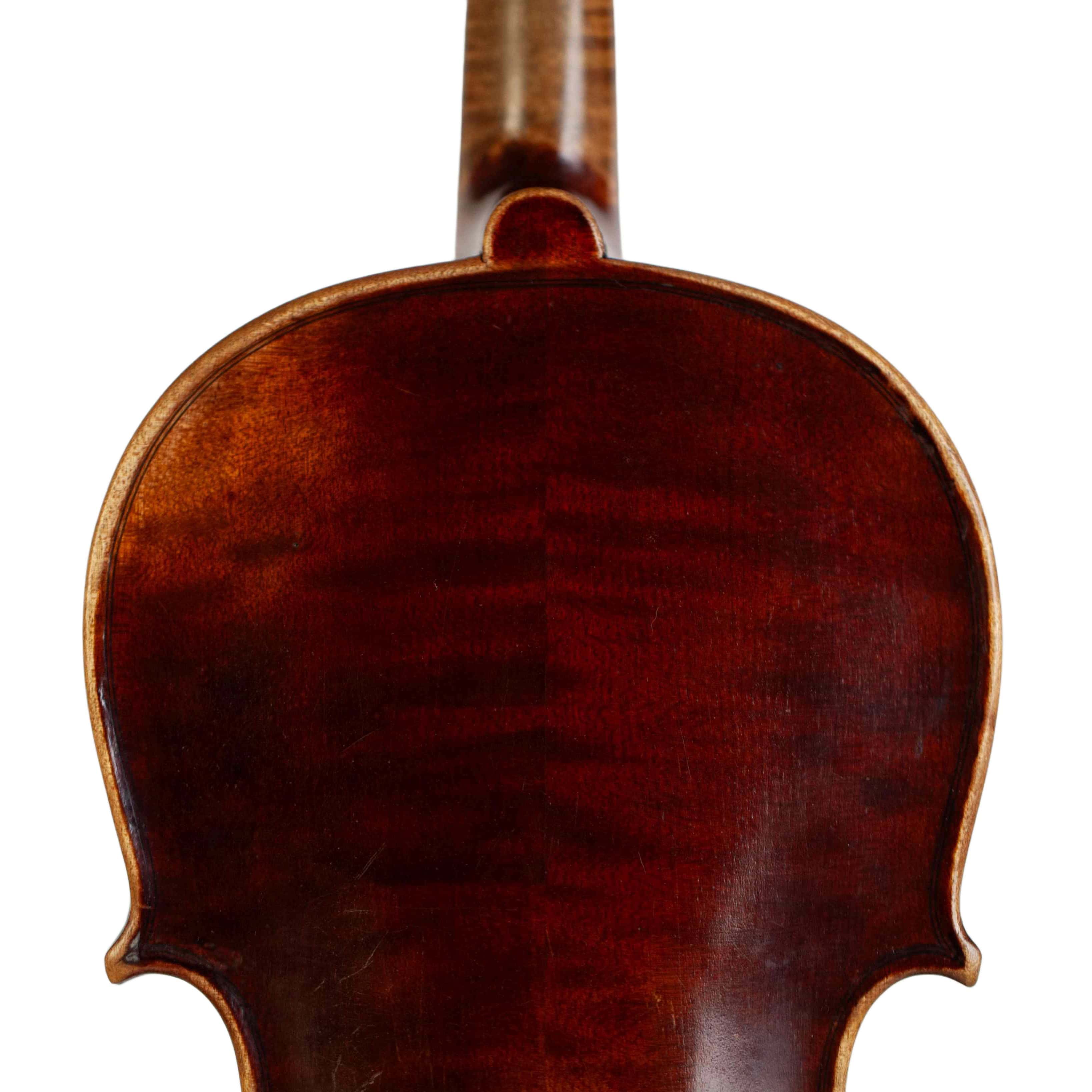 The whole length of the violin is 591 mm and the back 359 mm. The width of the upper bouts: 165 mm; middle bouts: 110 mm; lower bouts: 202 mm.