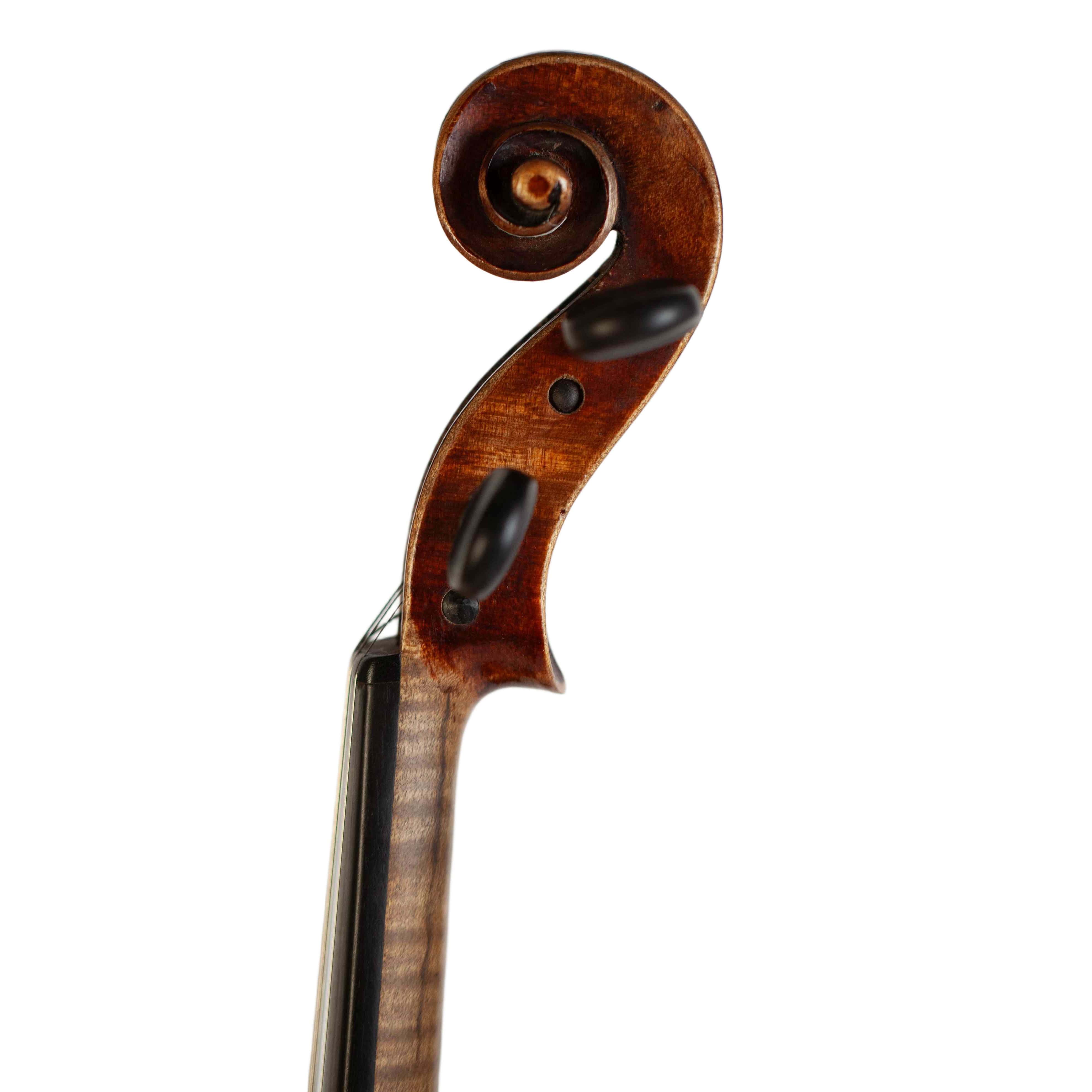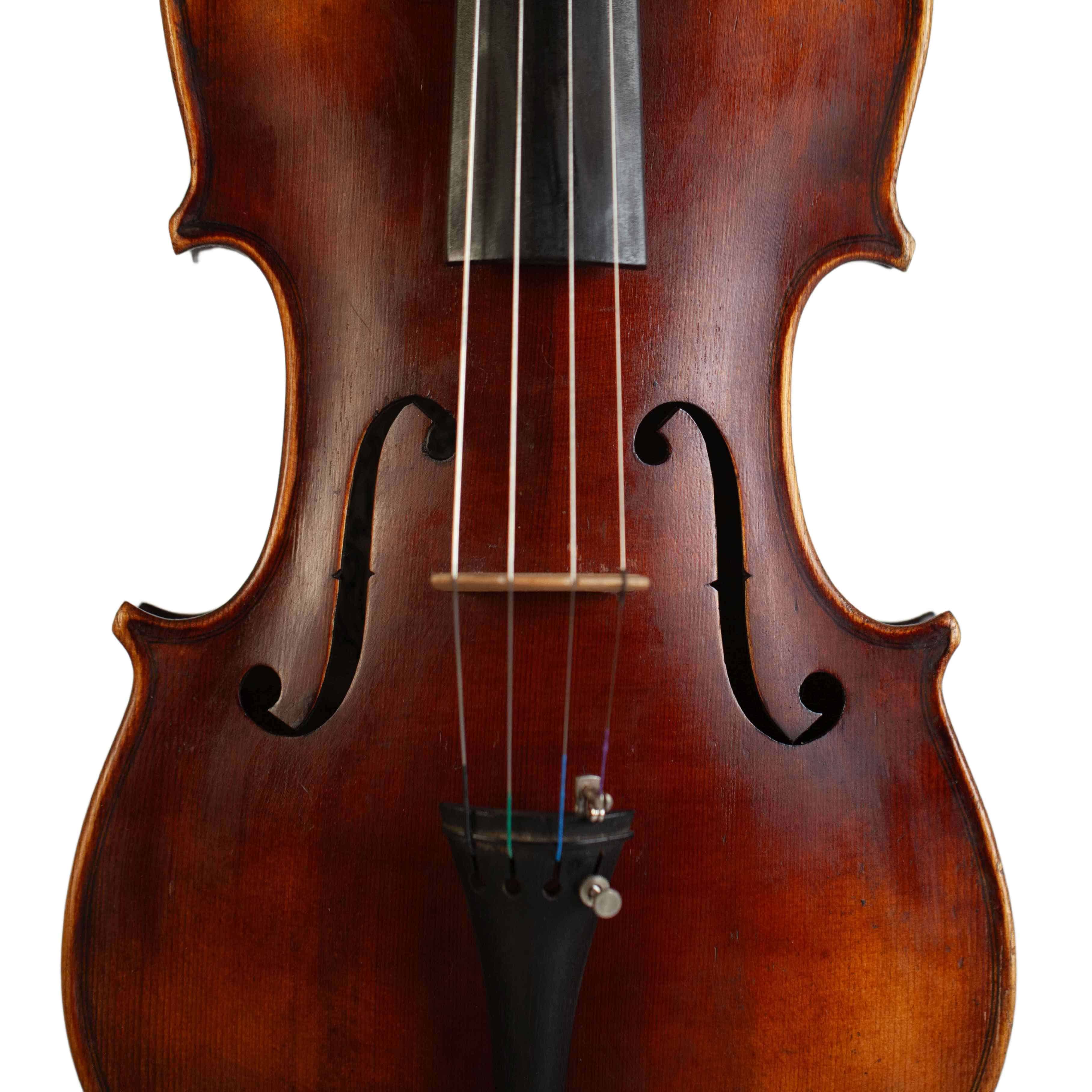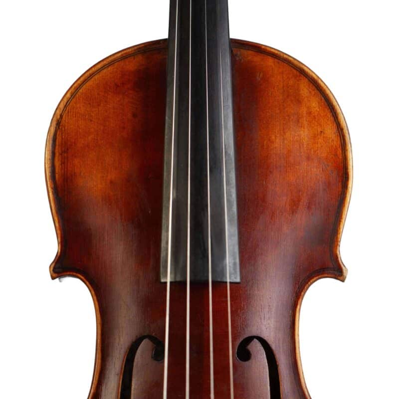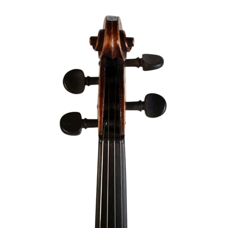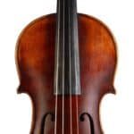 The whole length of the violin is 591 mm and the back 359 mm. The width of the upper bouts: 165 mm; middle bouts: 110 mm; lower bouts: 202 mm.