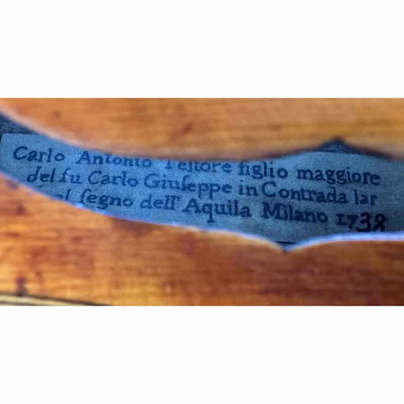 Label: Carlo Antonio Testore figlio maggiore del fu Carlo Giuseppe in Contrada larga al fegno dell’Aquila Milano 1738.