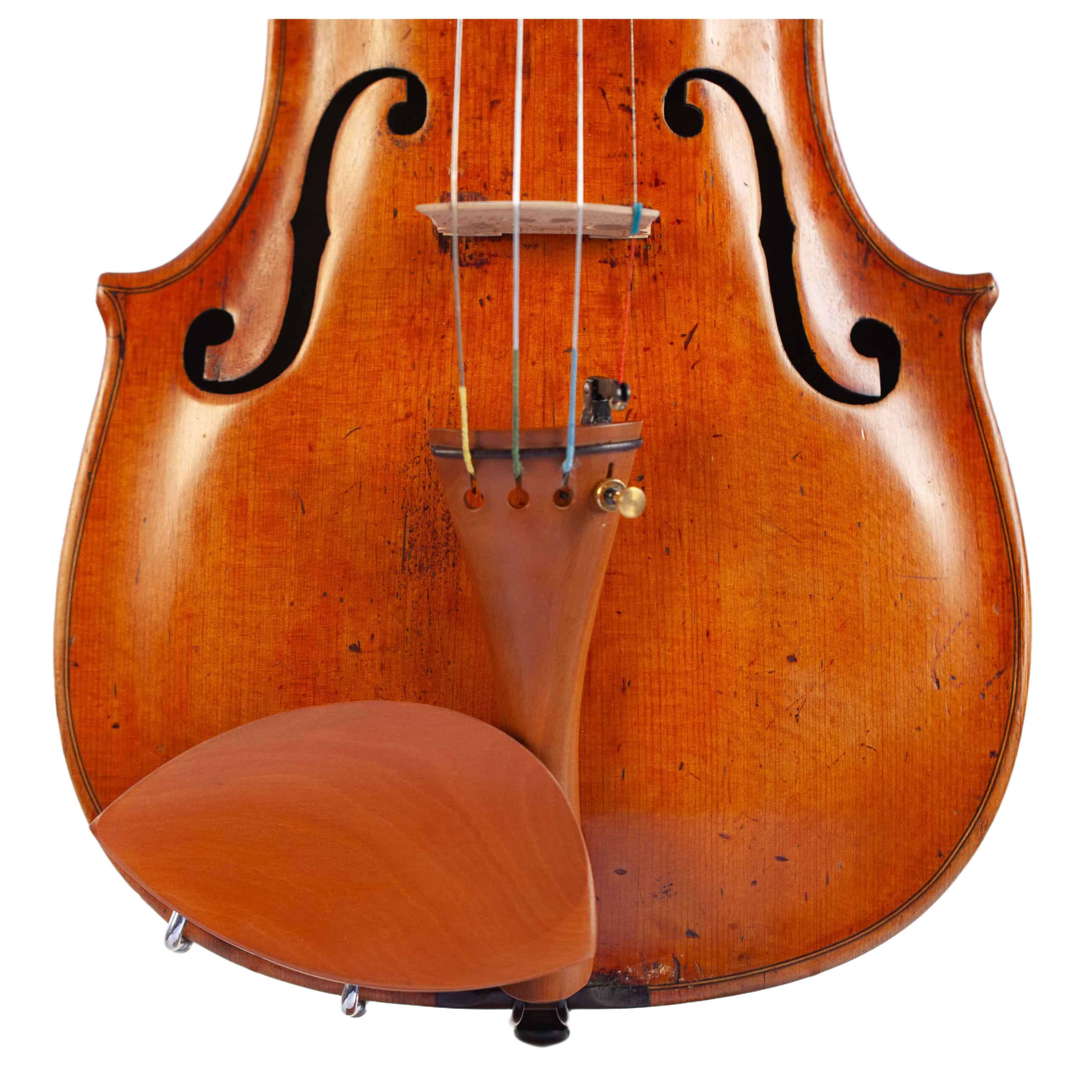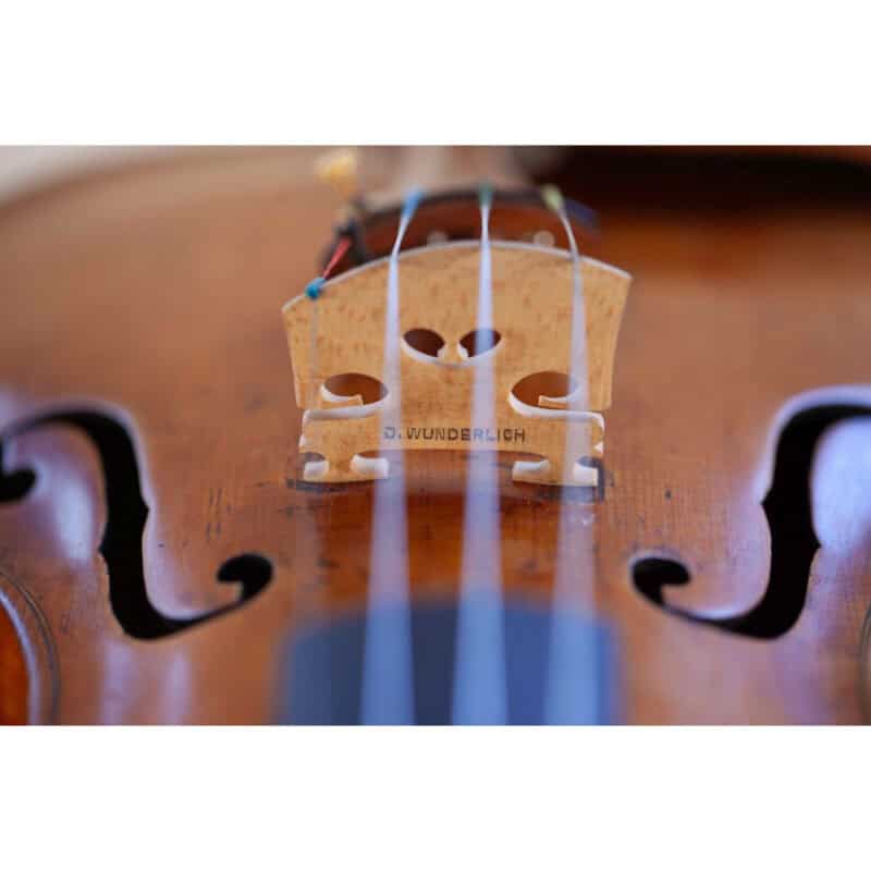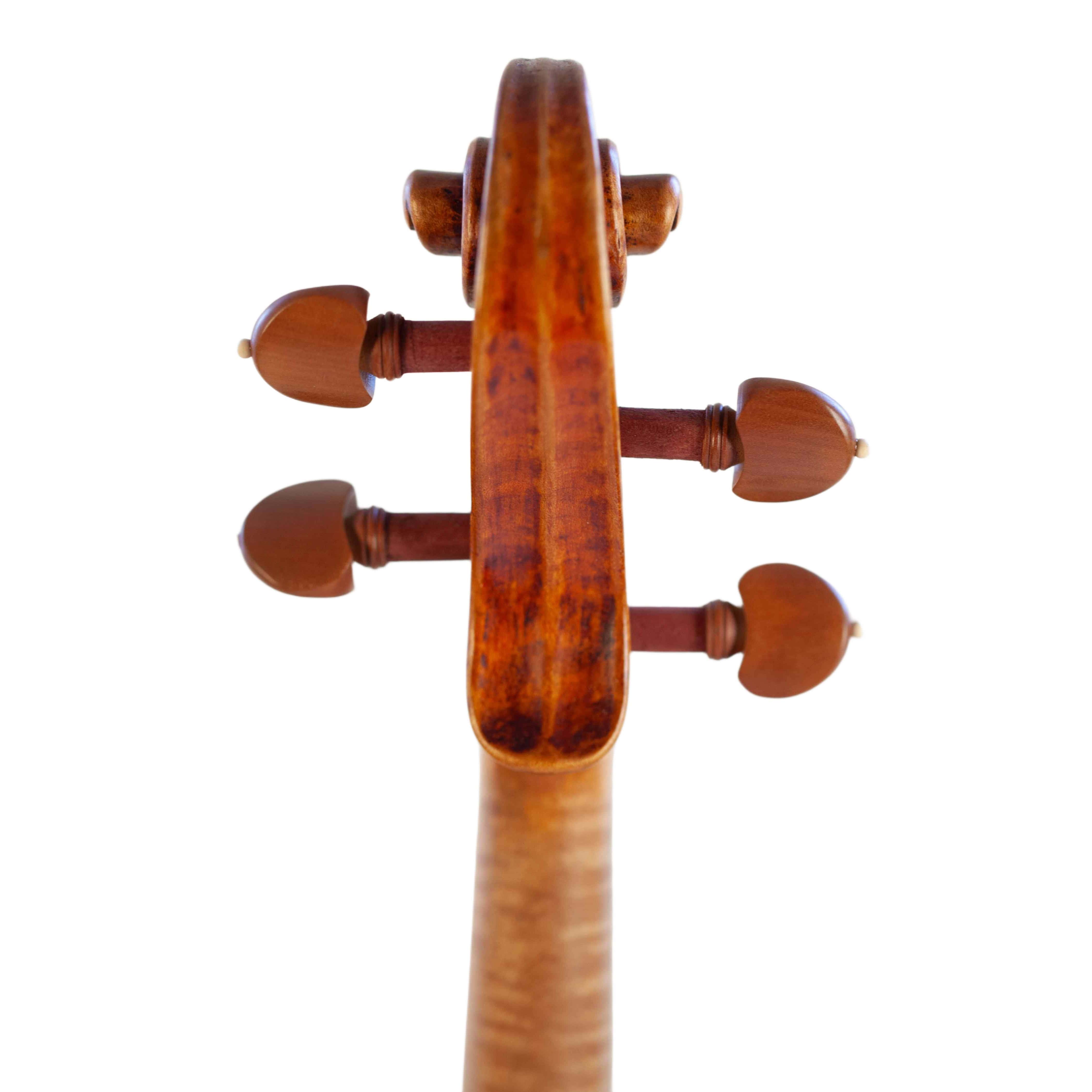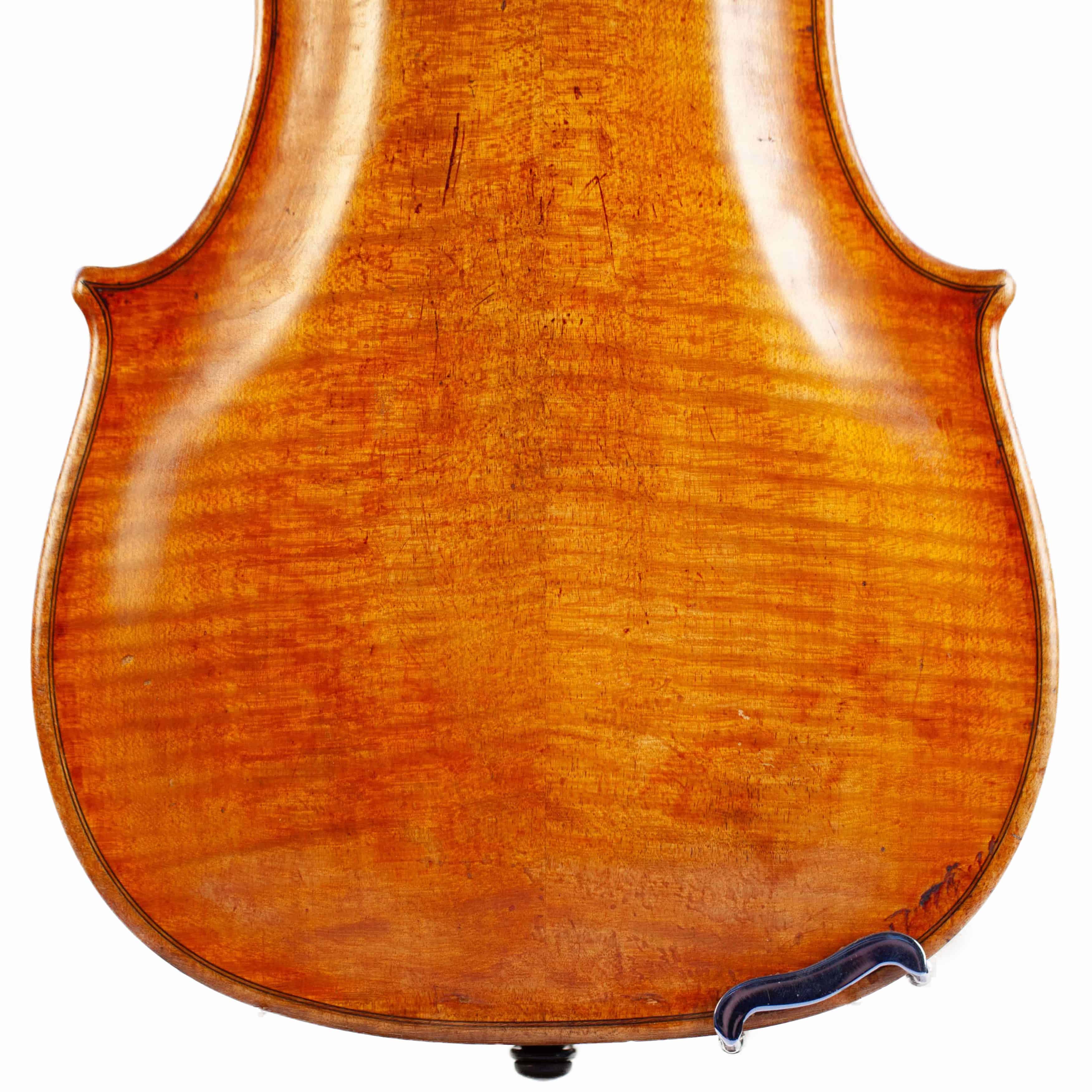 whole length is 589 mm. The width of the upper bouts: 164 mm; middle bouts: 117 mm; lower bouts: 200 mm.
