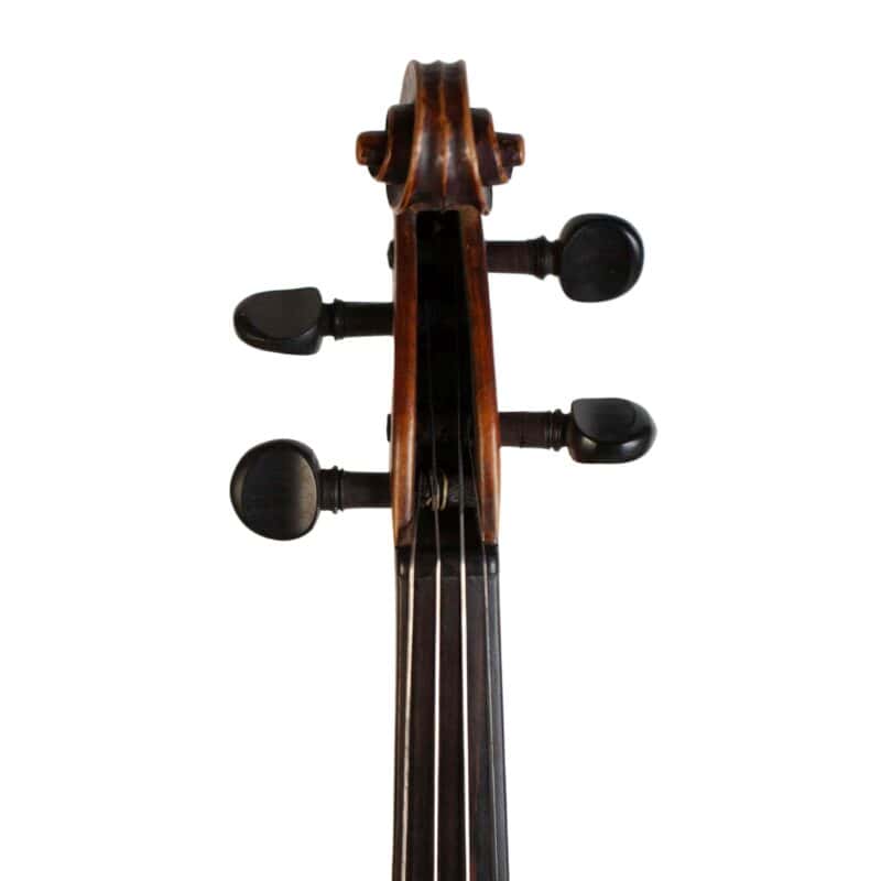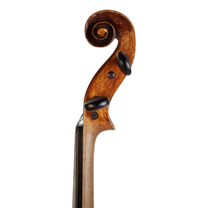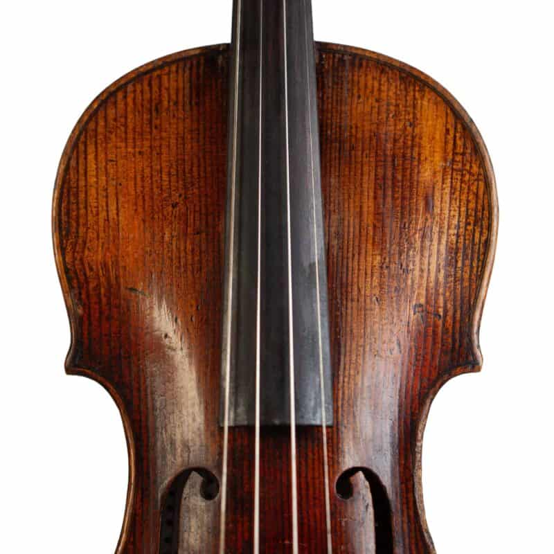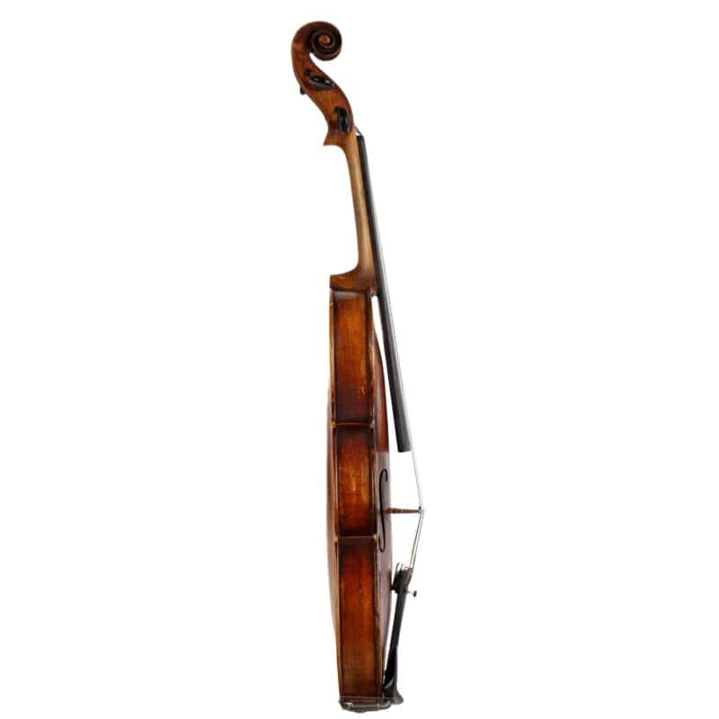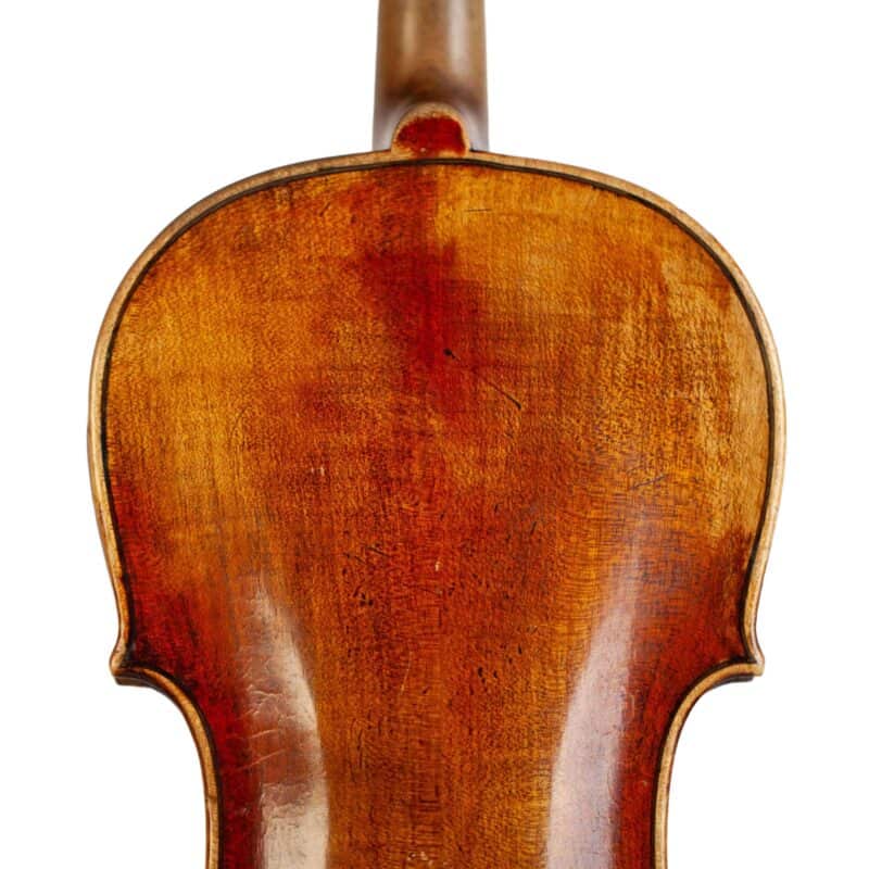 The whole length of the violin is 588 mm and the back 359 mm. The width of the upper bouts: 162 mm; middle bouts: 109 mm; lower bouts: 201 mm.