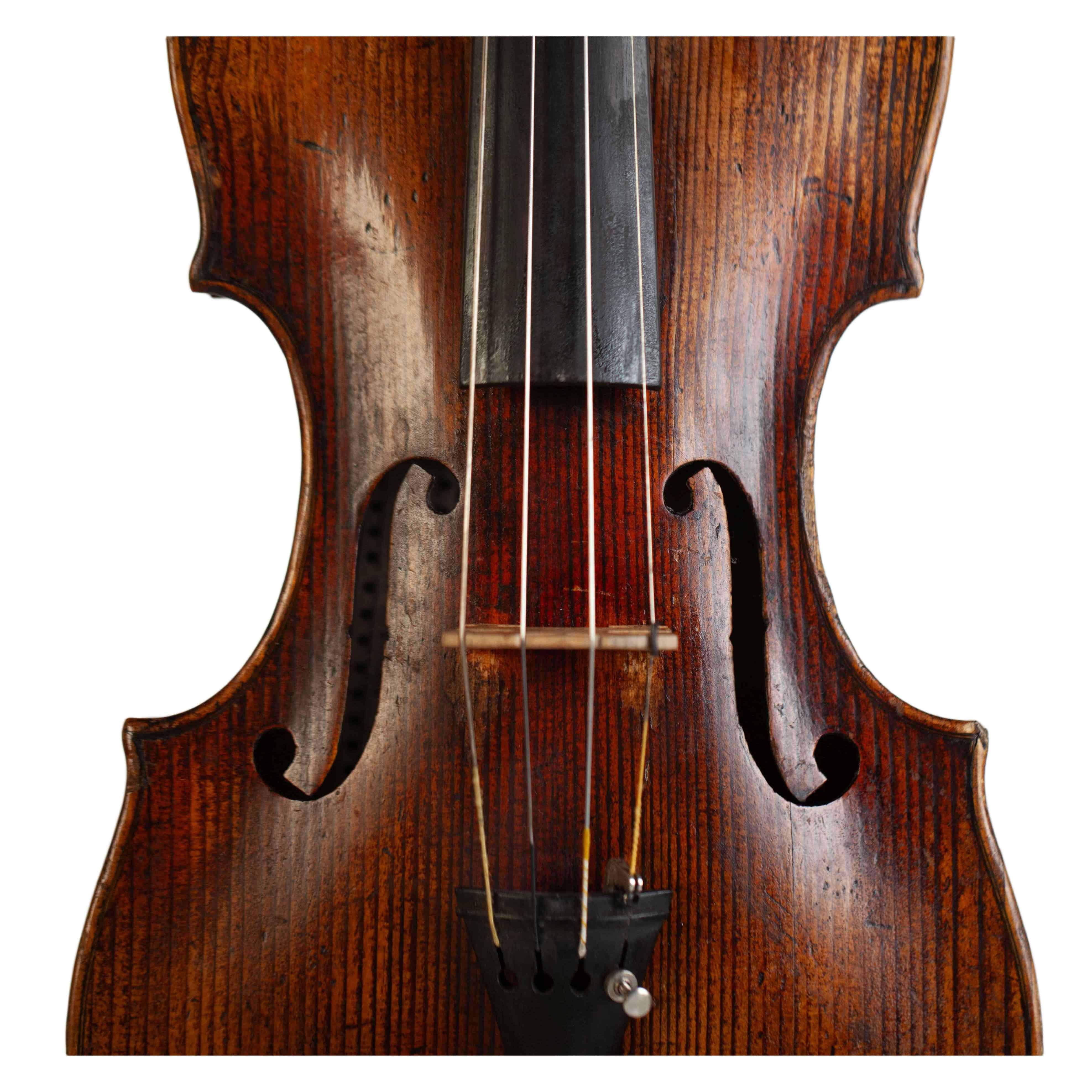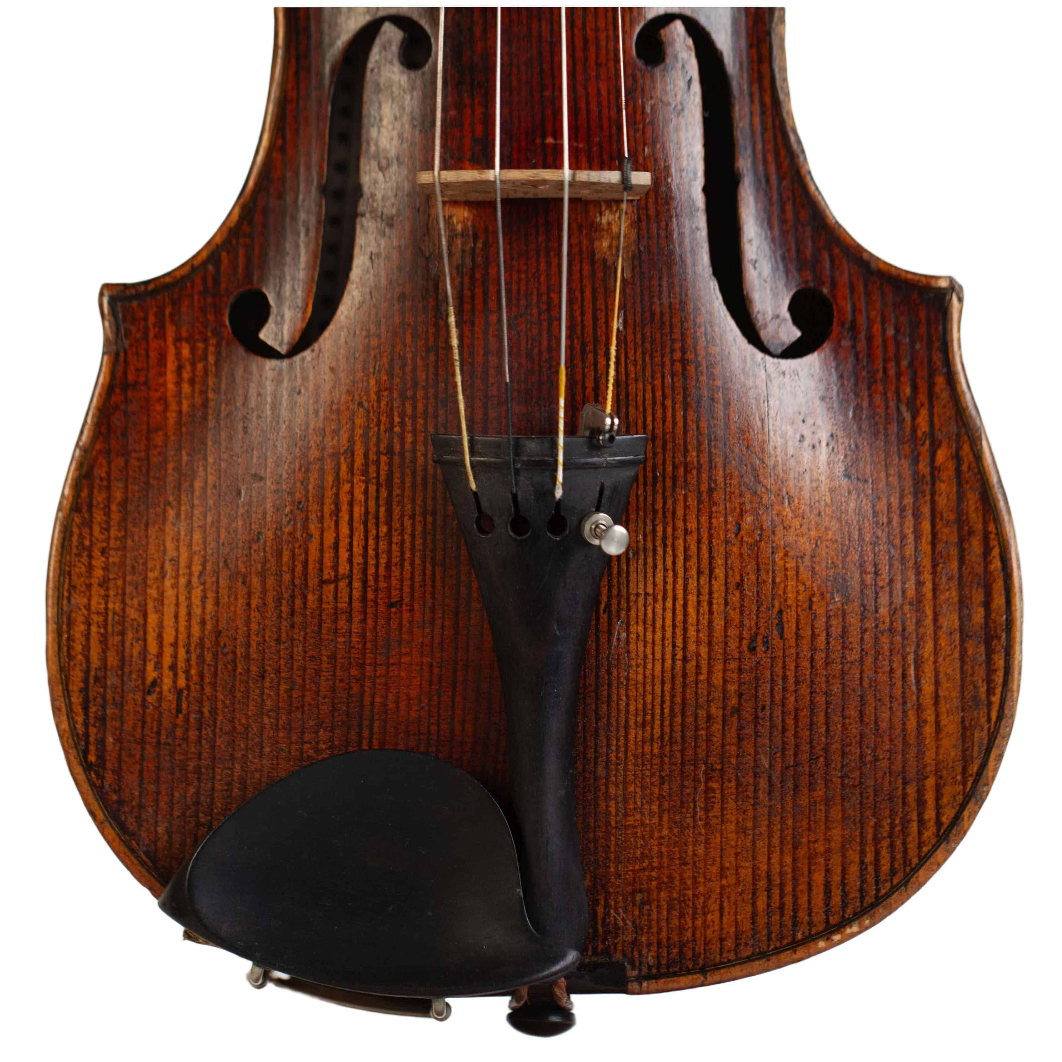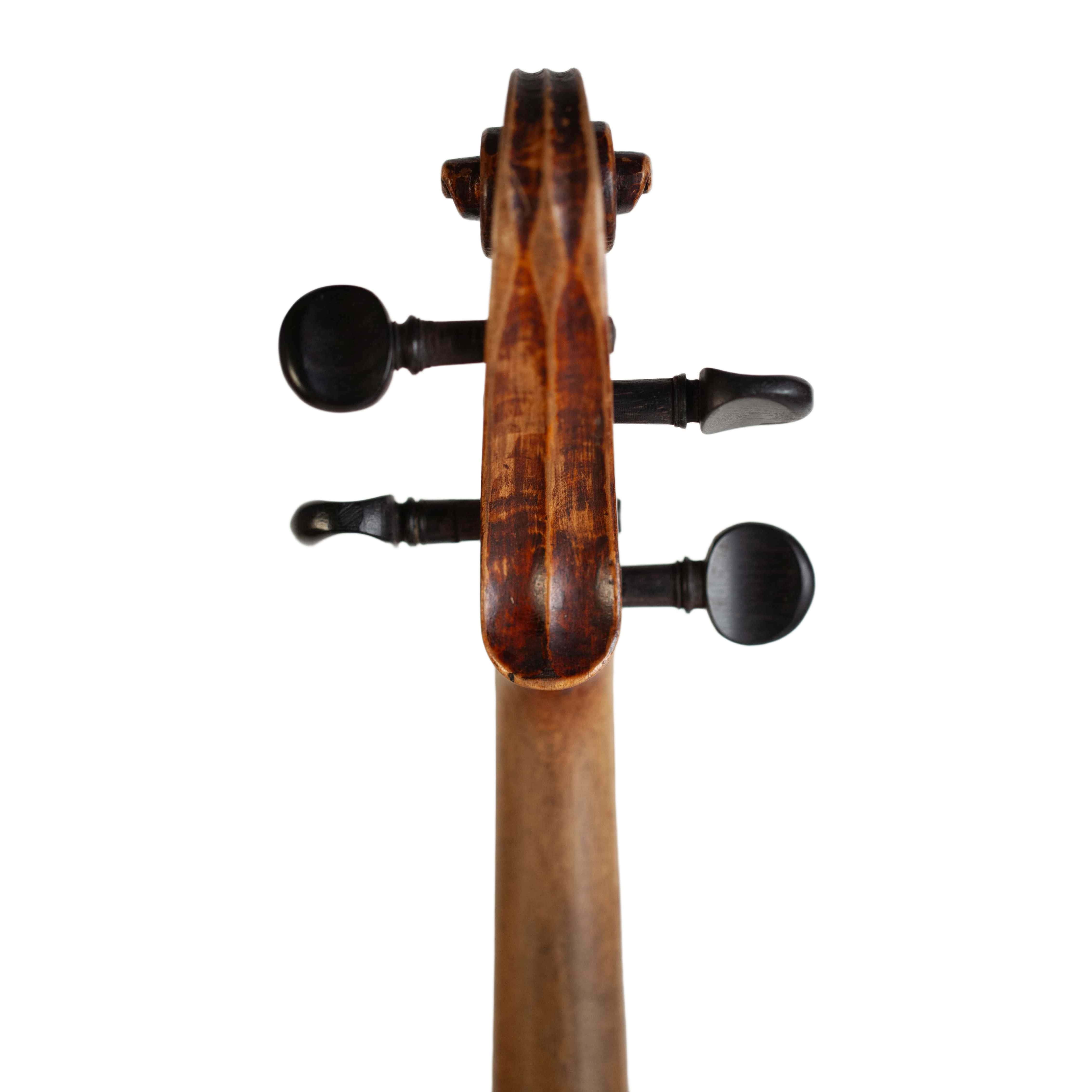 The whole length of the violin is 588 mm and the back 359 mm. The width of the upper bouts: 162 mm; middle bouts: 109 mm; lower bouts: 201 mm.