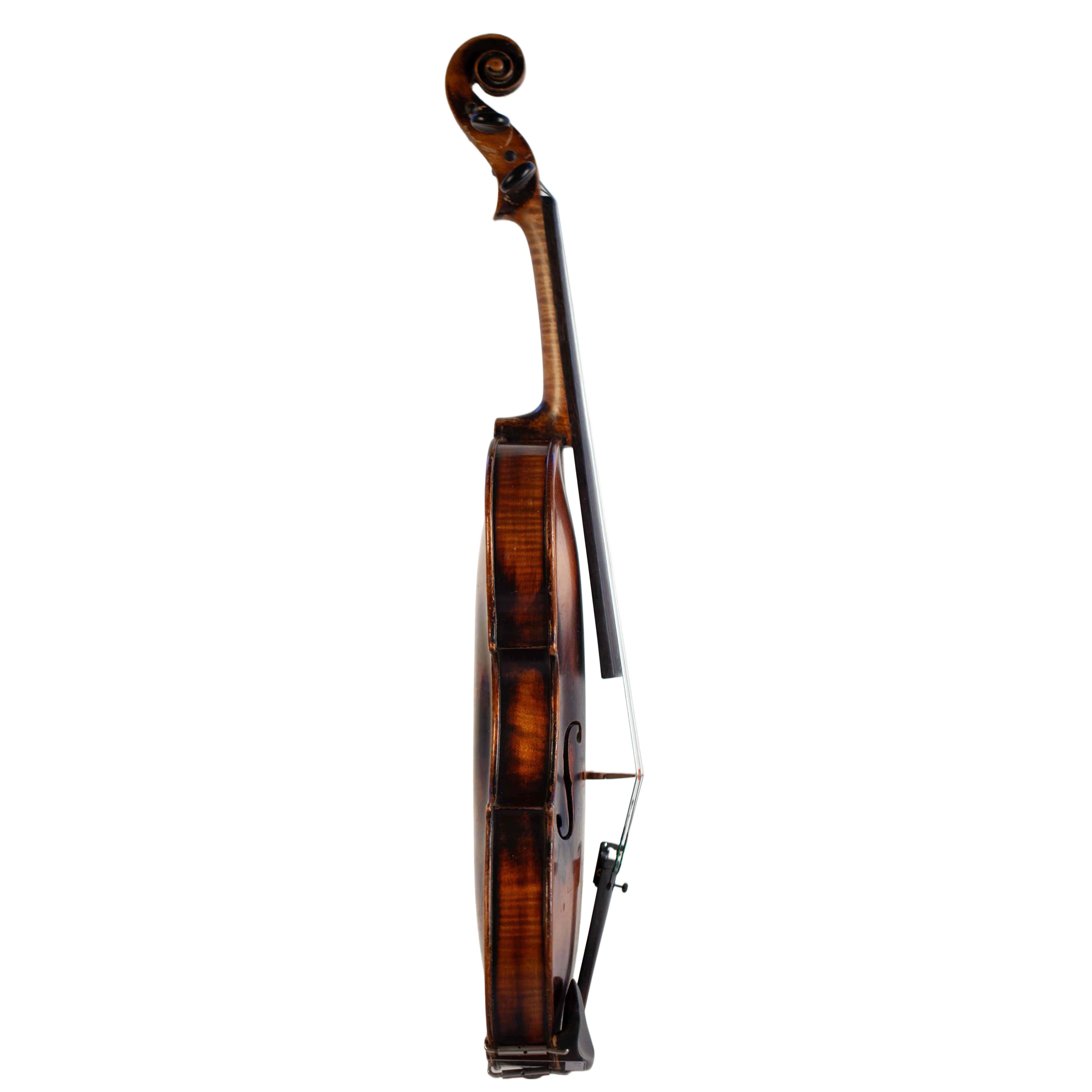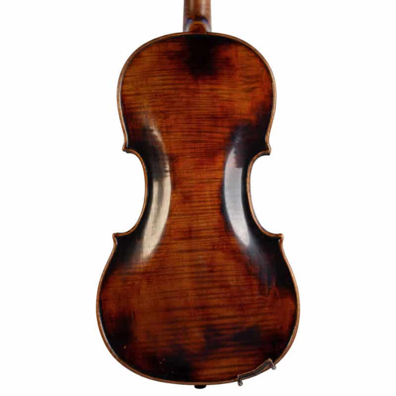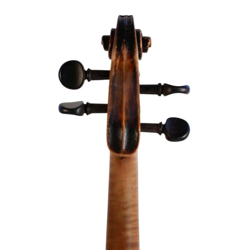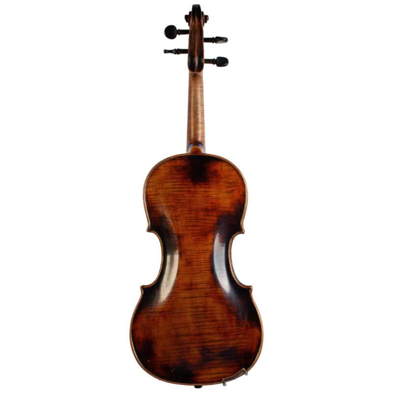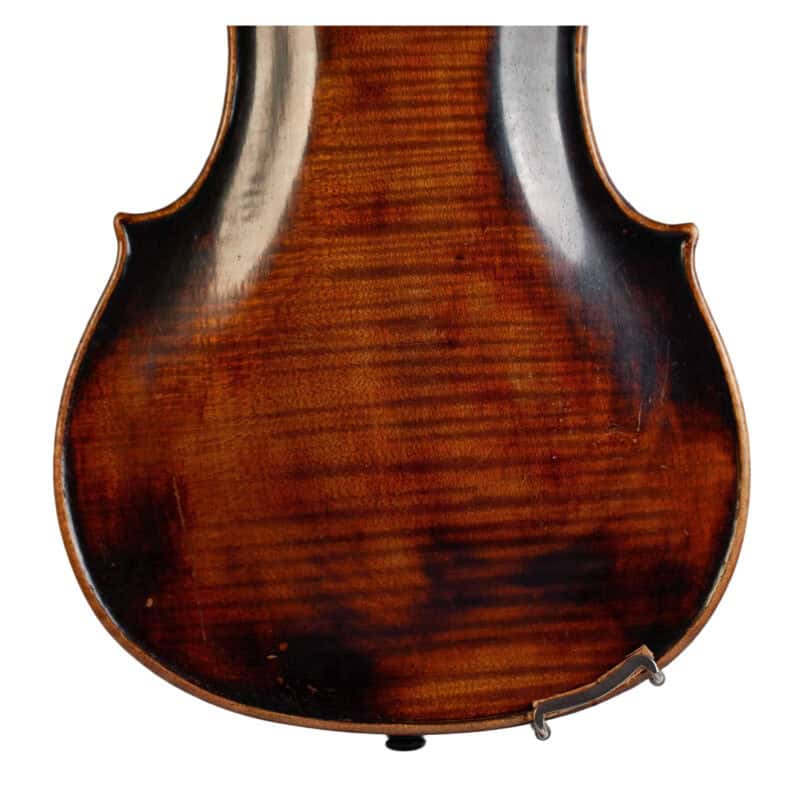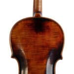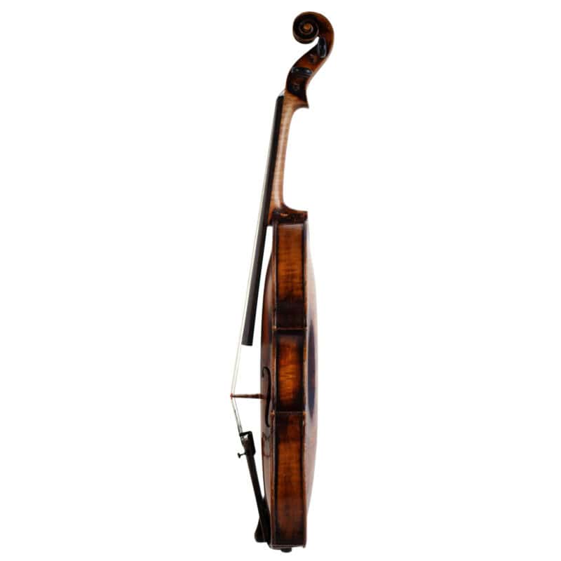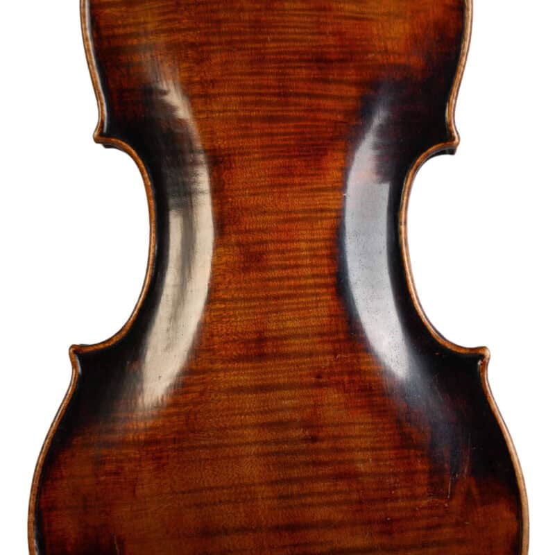 The whole length of the violin is 585 mm and the back 356 mm. The width of the upper bouts: 162 mm; middle bouts: 111 mm; lower bouts: 205 mm.