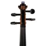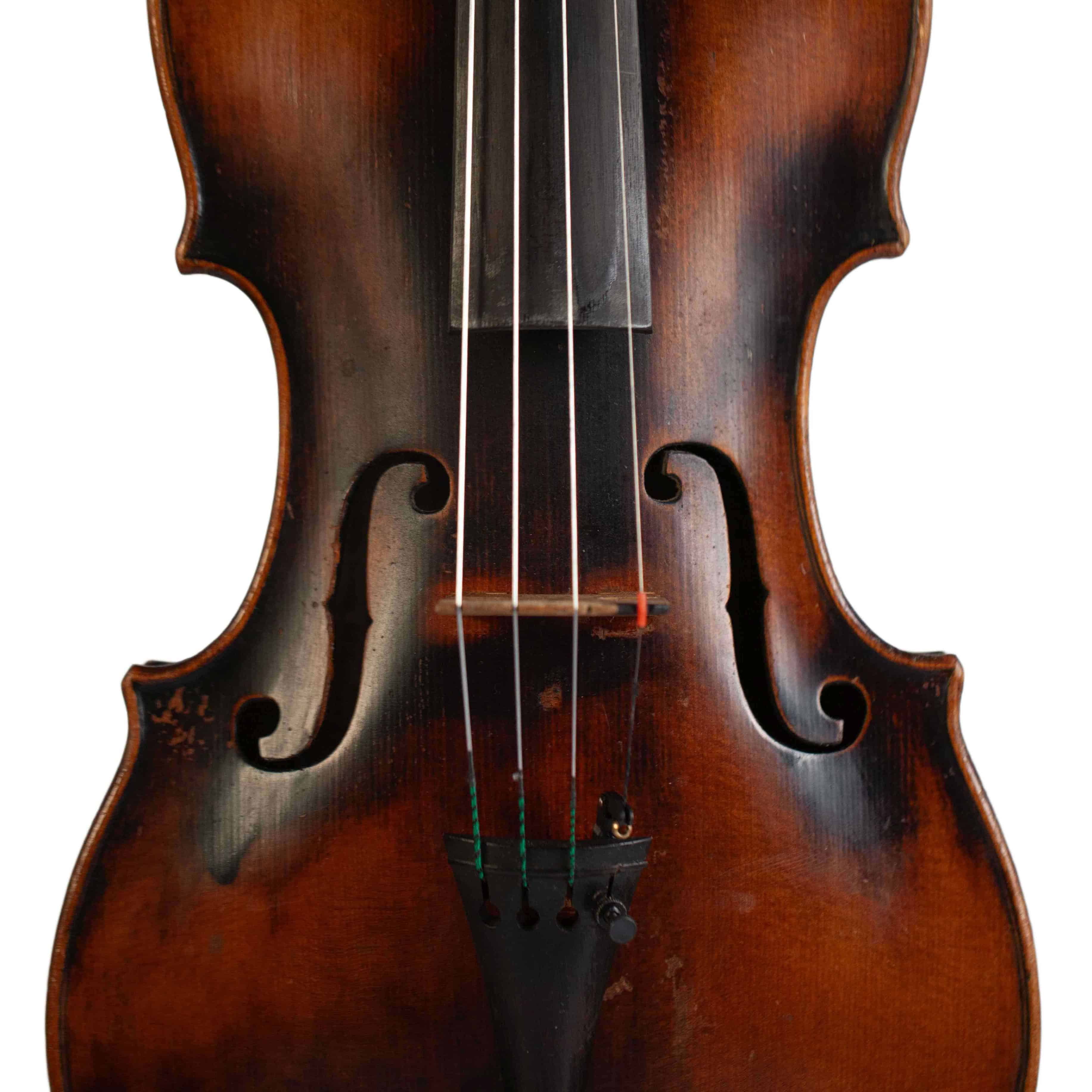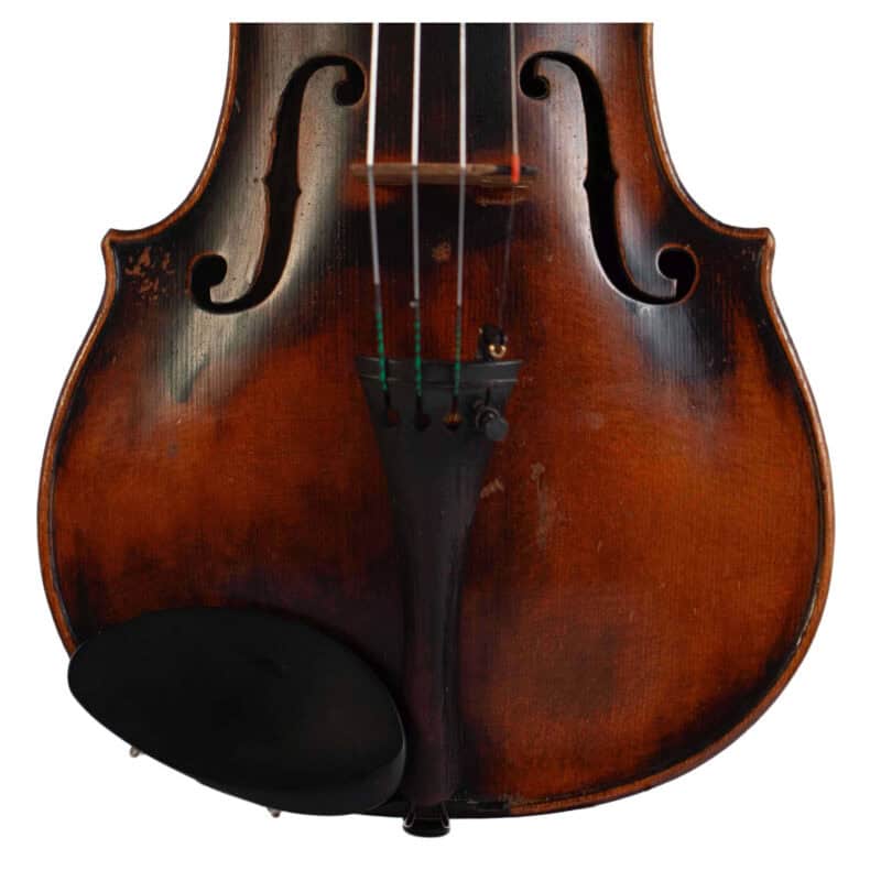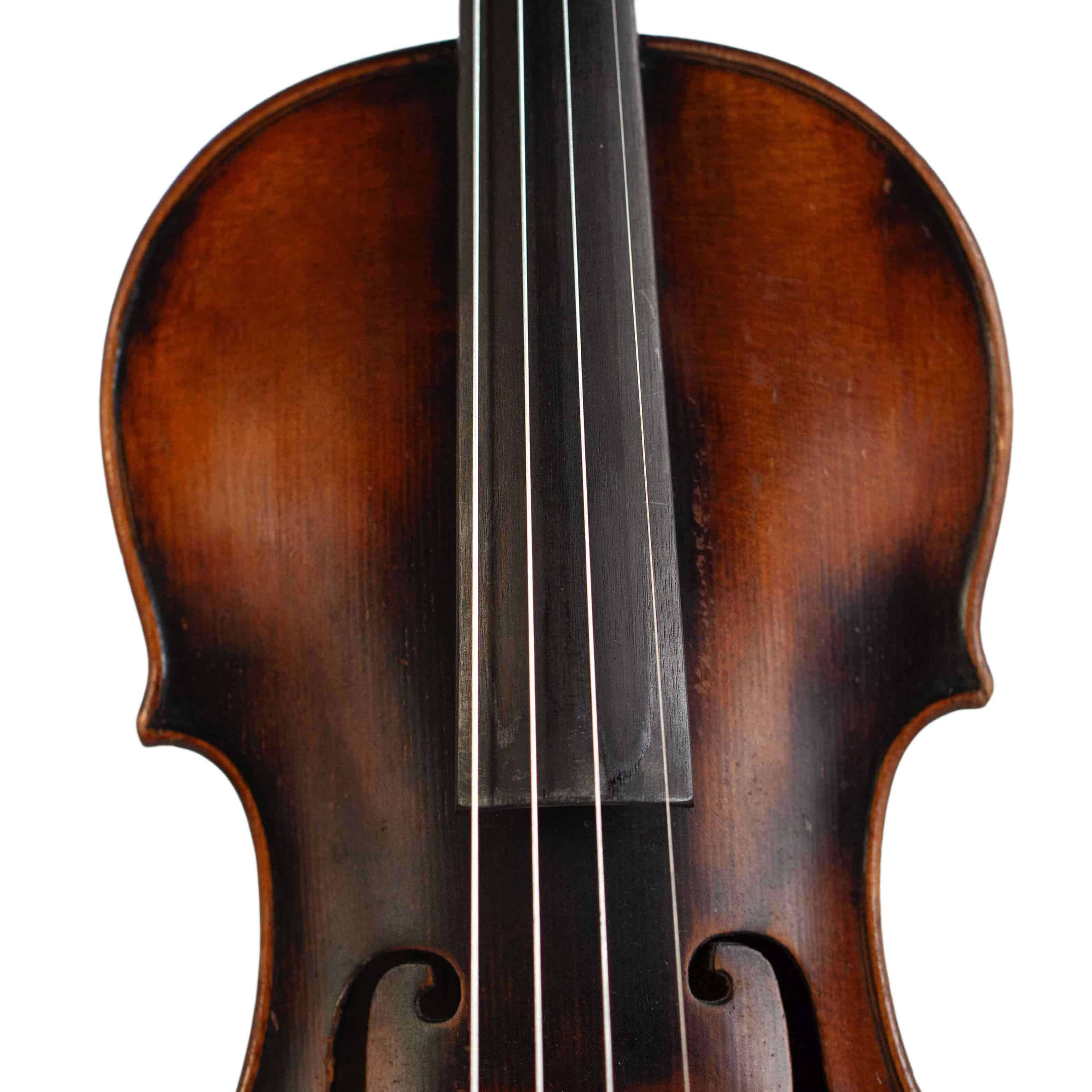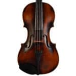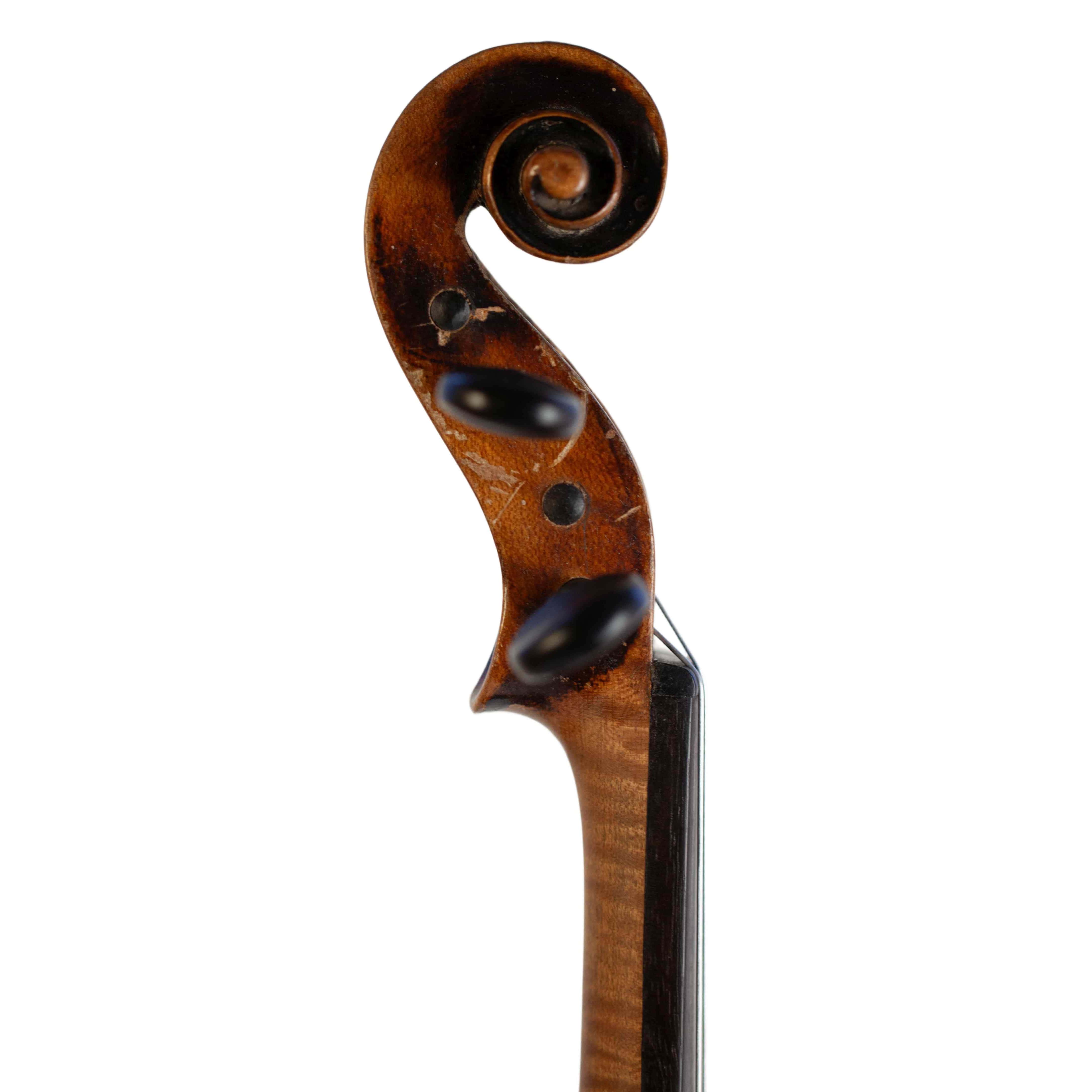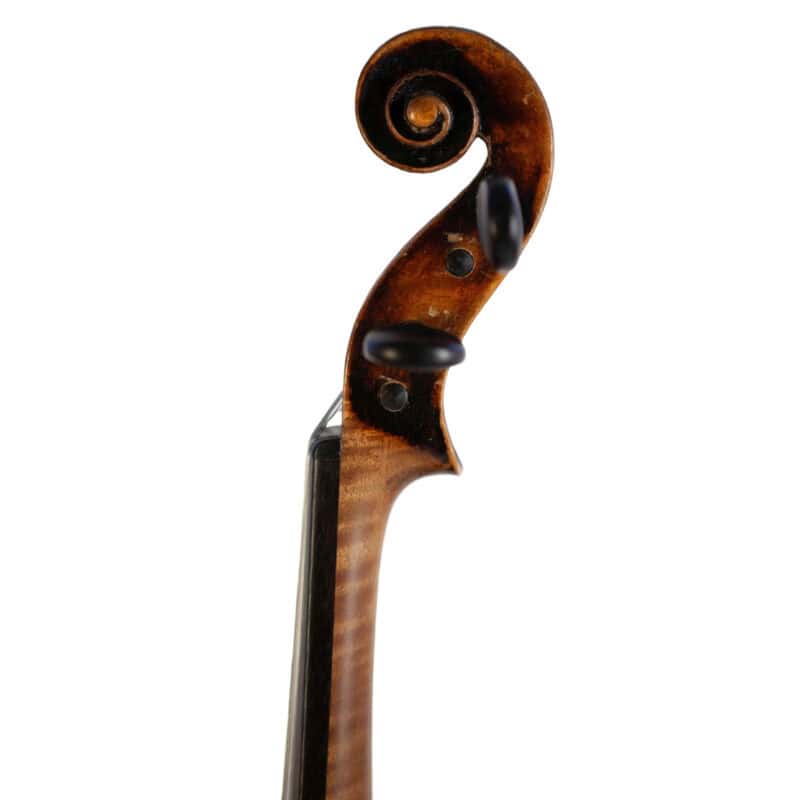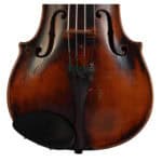 The whole length of the violin is 585 mm and the back 356 mm. The width of the upper bouts: 162 mm; middle bouts: 111 mm; lower bouts: 205 mm.