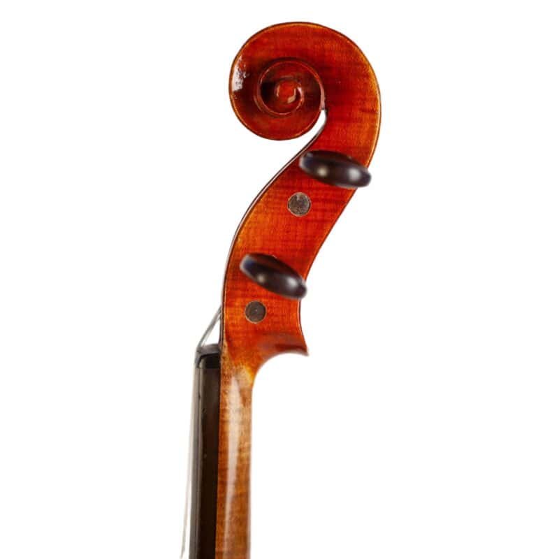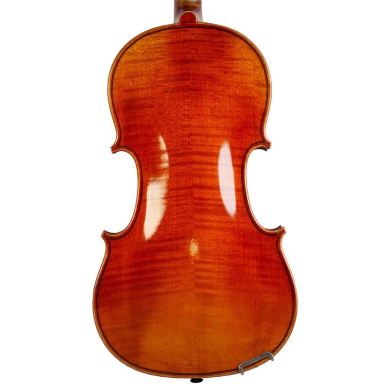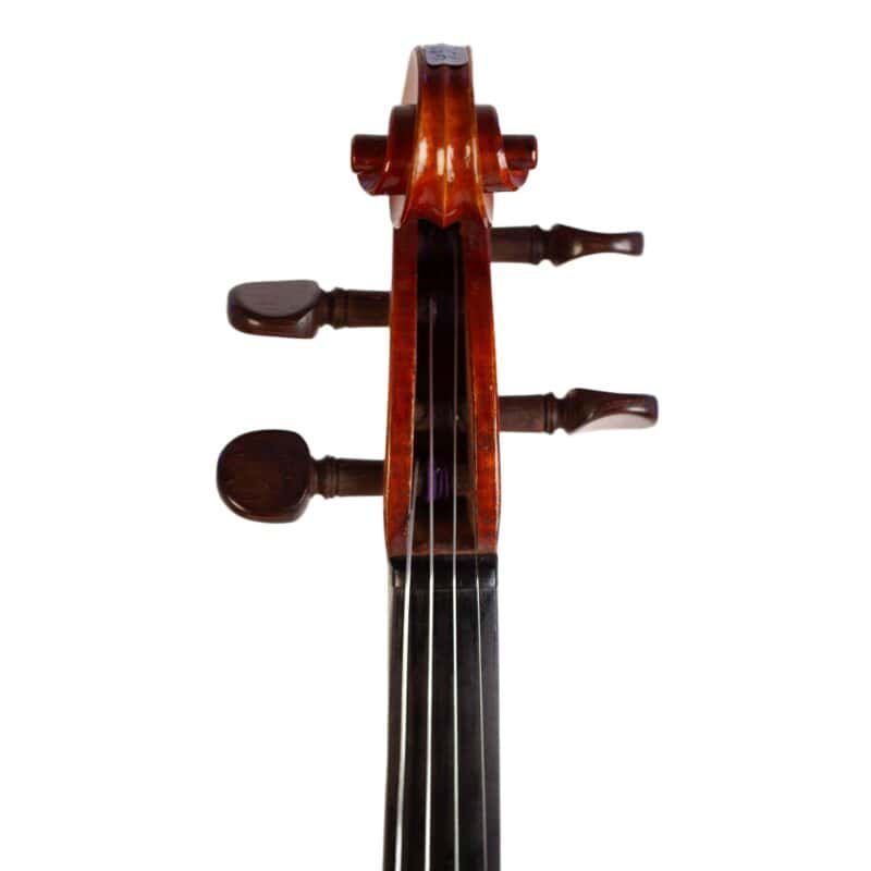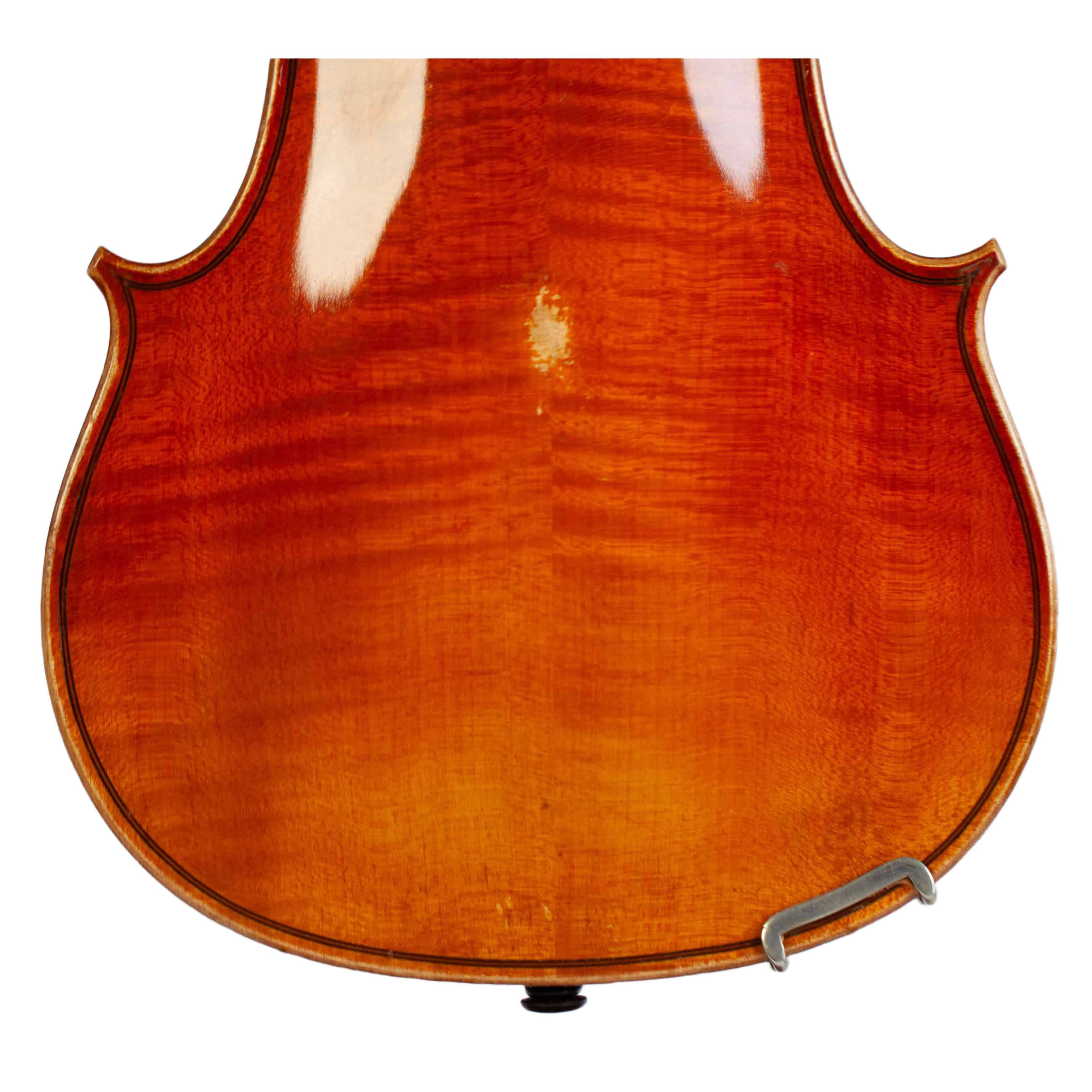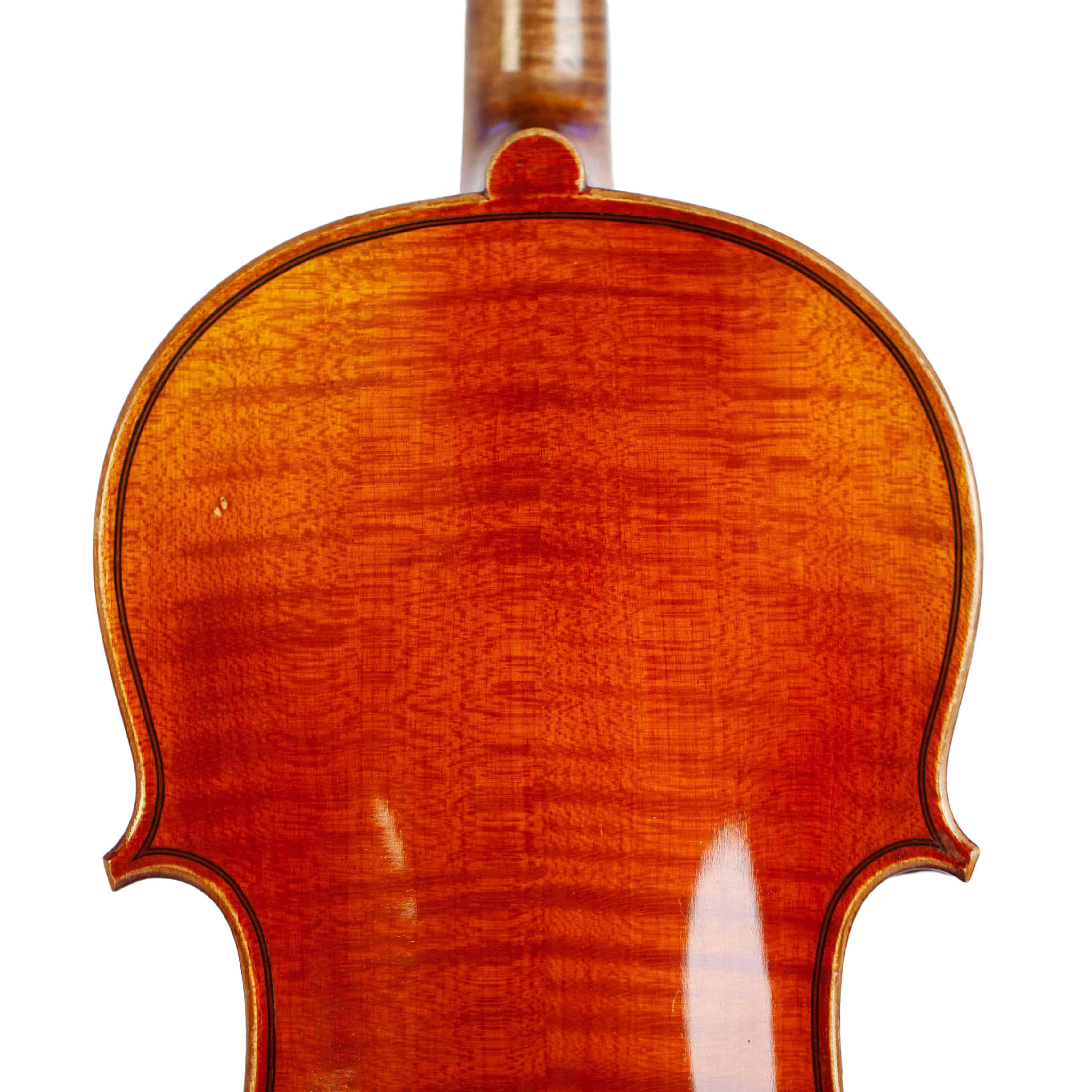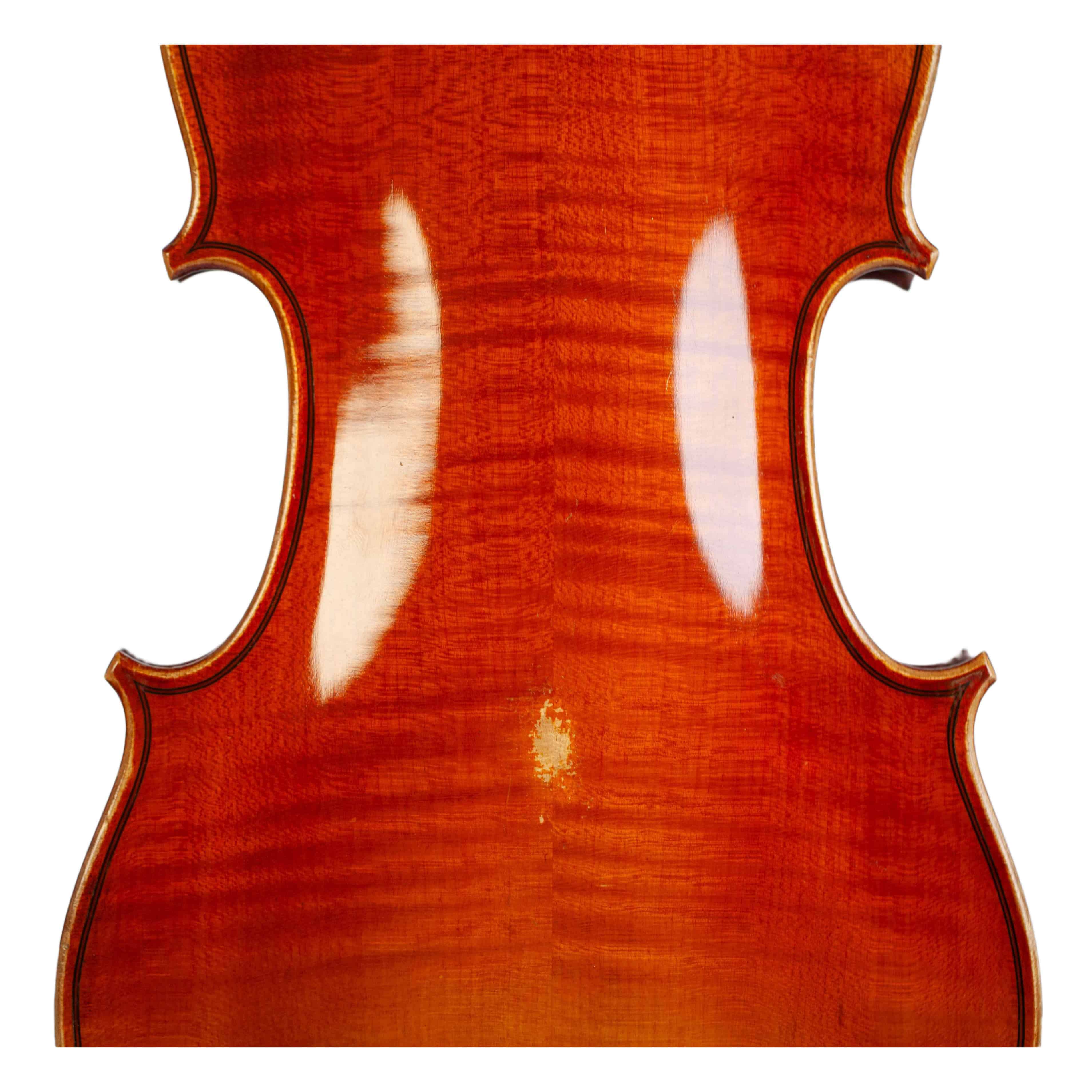 The whole length of the violin is 590 mm and the back 354 mm. The width of the upper bouts: 164 mm; middle bouts: 112 mm; lower bouts: 204 mm.