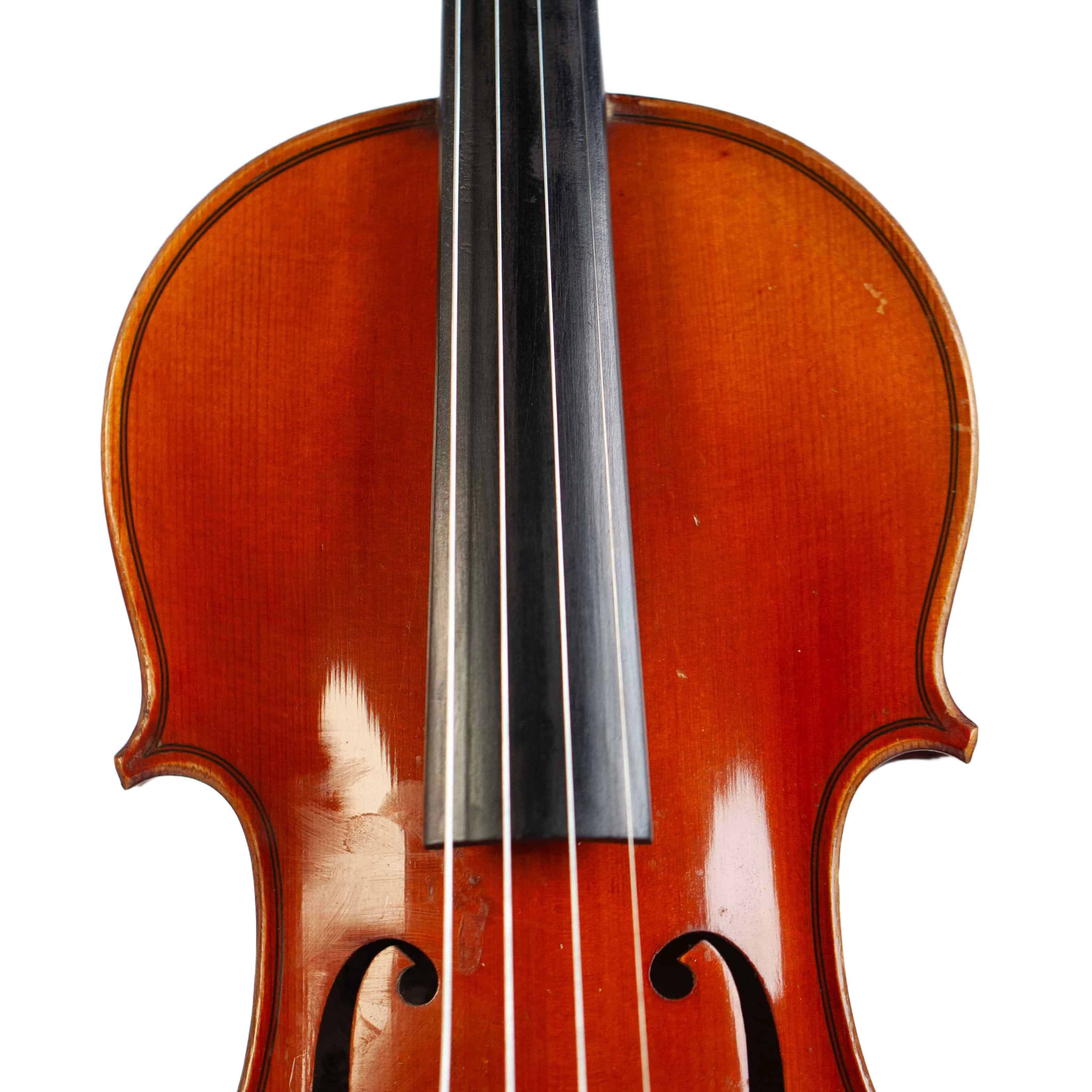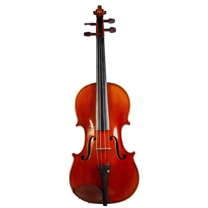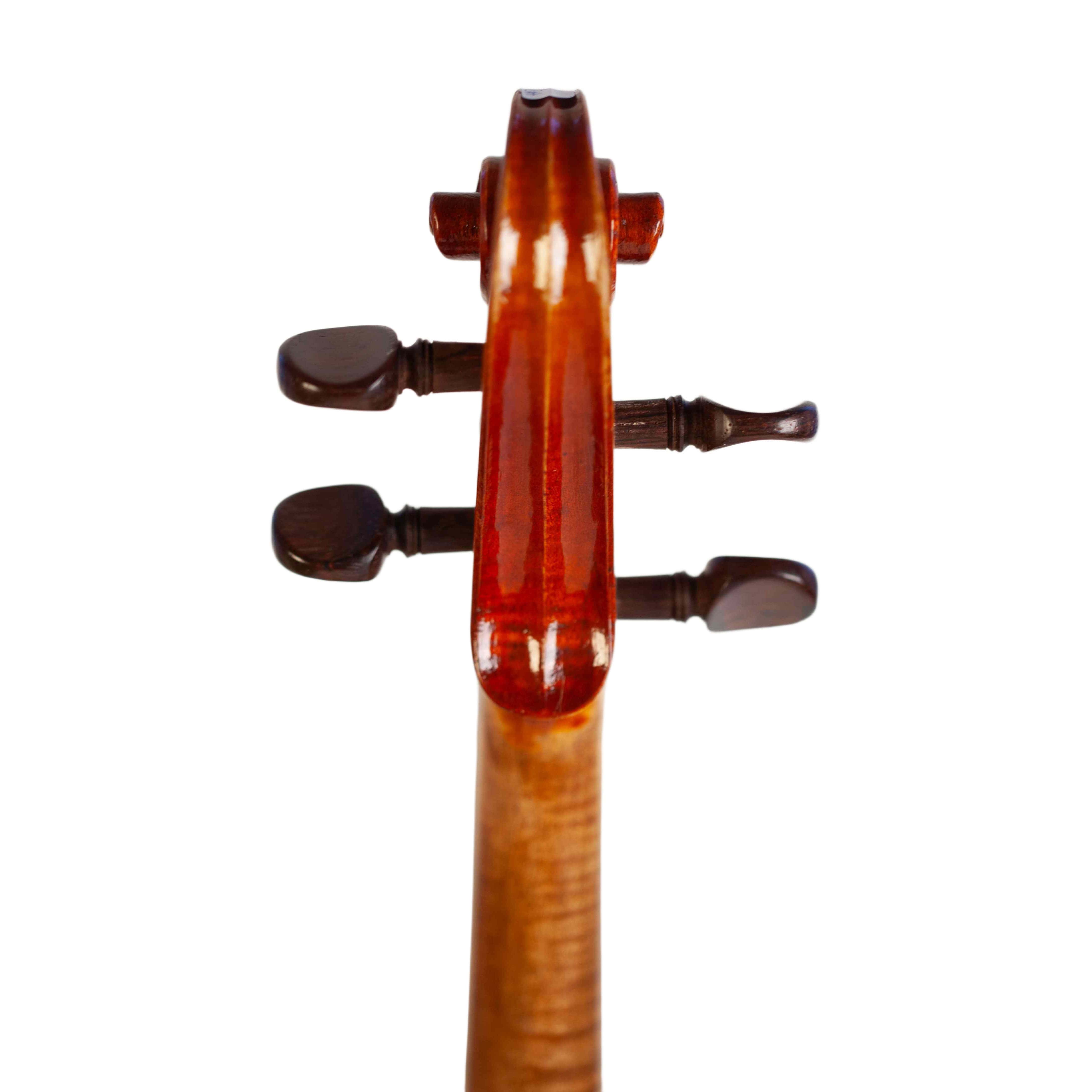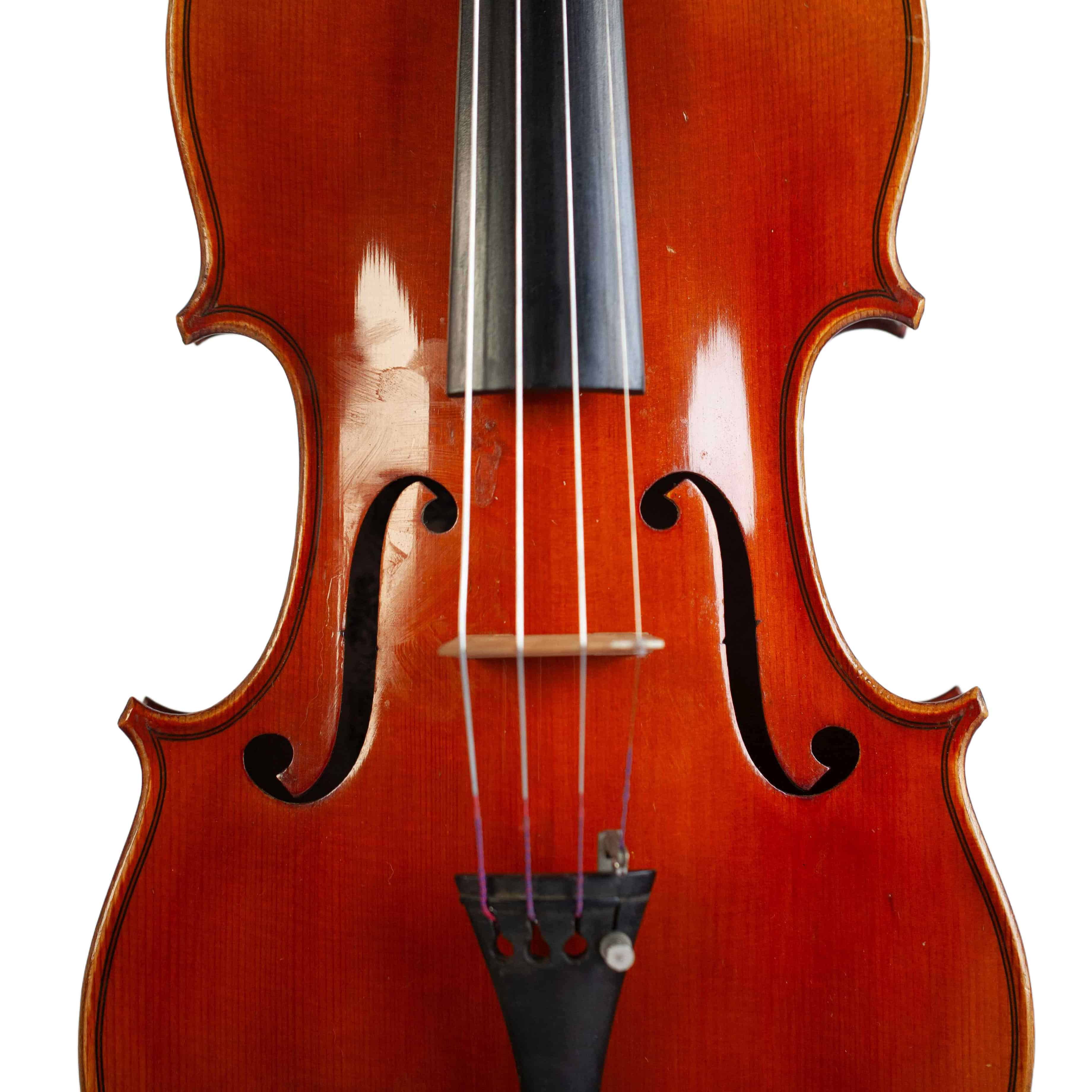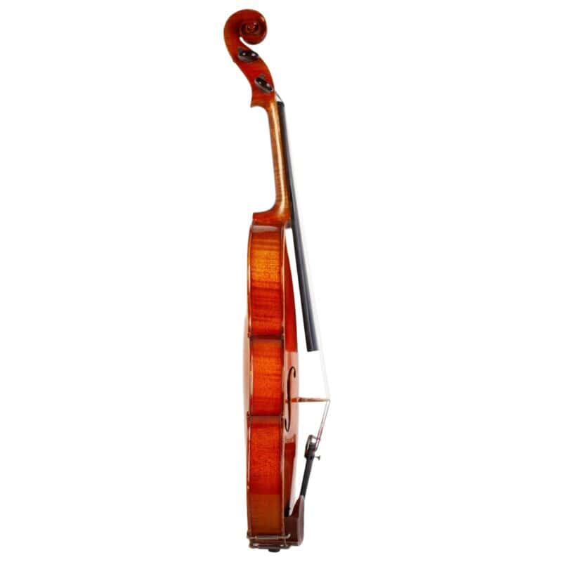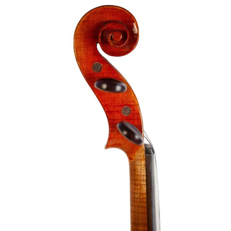 The whole length of the violin is 590 mm and the back 354 mm. The width of the upper bouts: 164 mm; middle bouts: 112 mm; lower bouts: 204 mm.