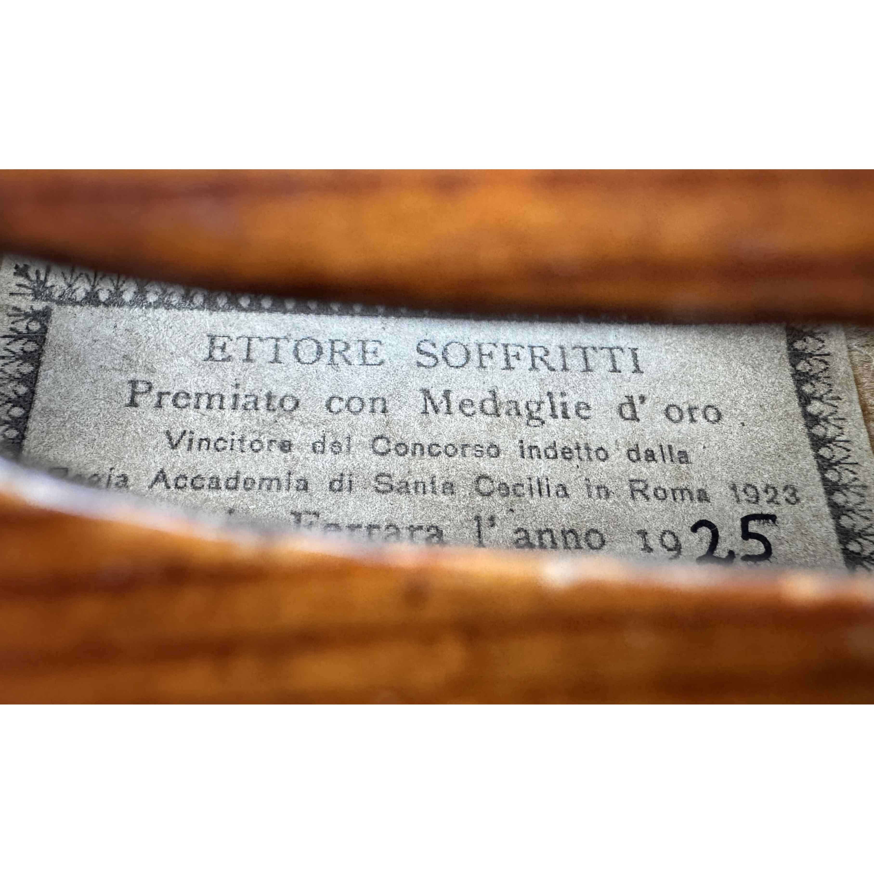 Label: SOFFRITTI ETTORE Premiato con Gran Medaglia d’oro all’Esposizione Interazionale di Bruxelles Fece in Ferrara l’anno 1925.