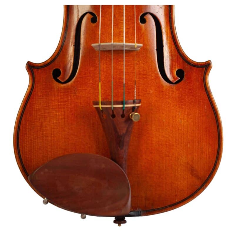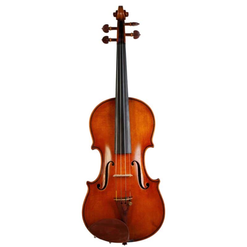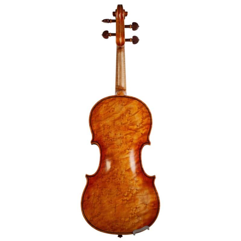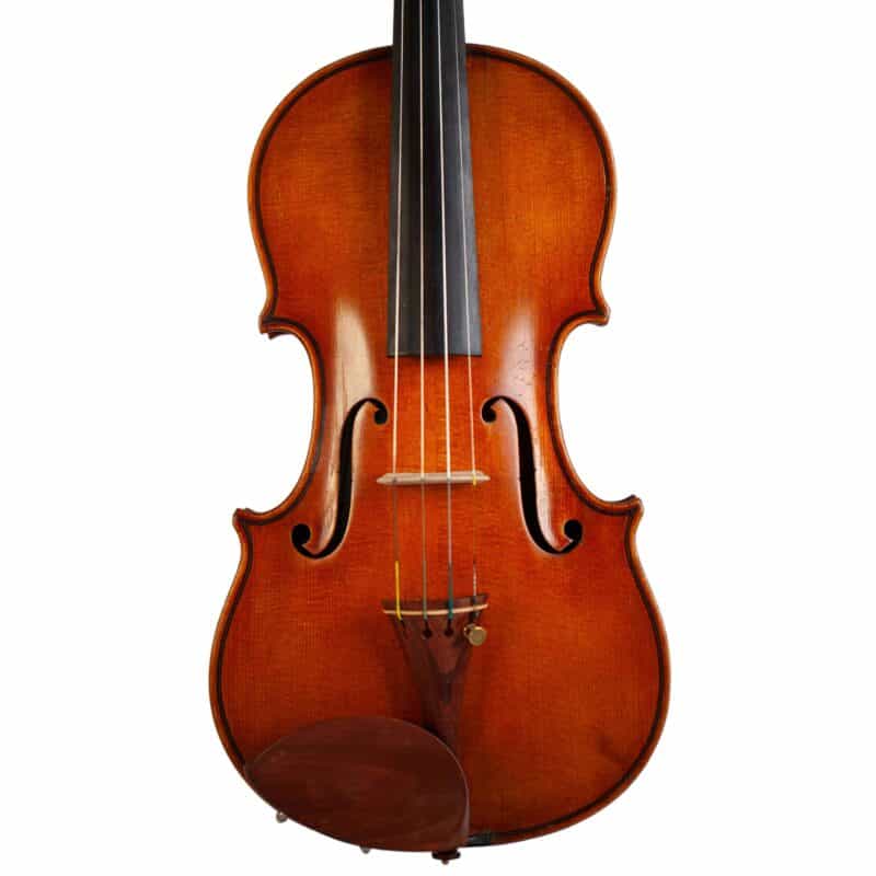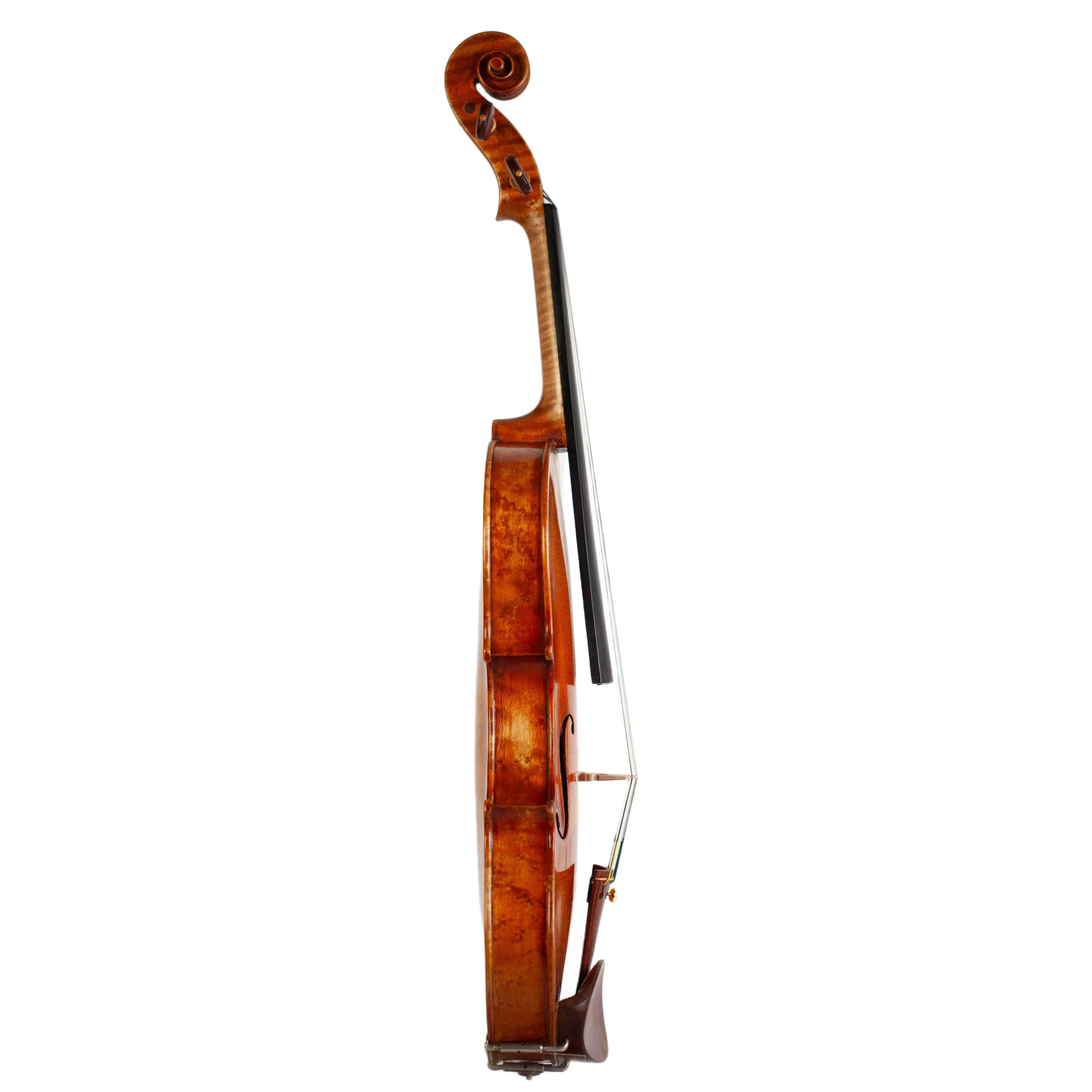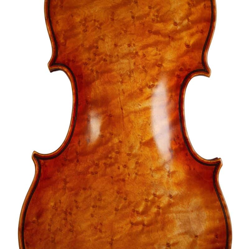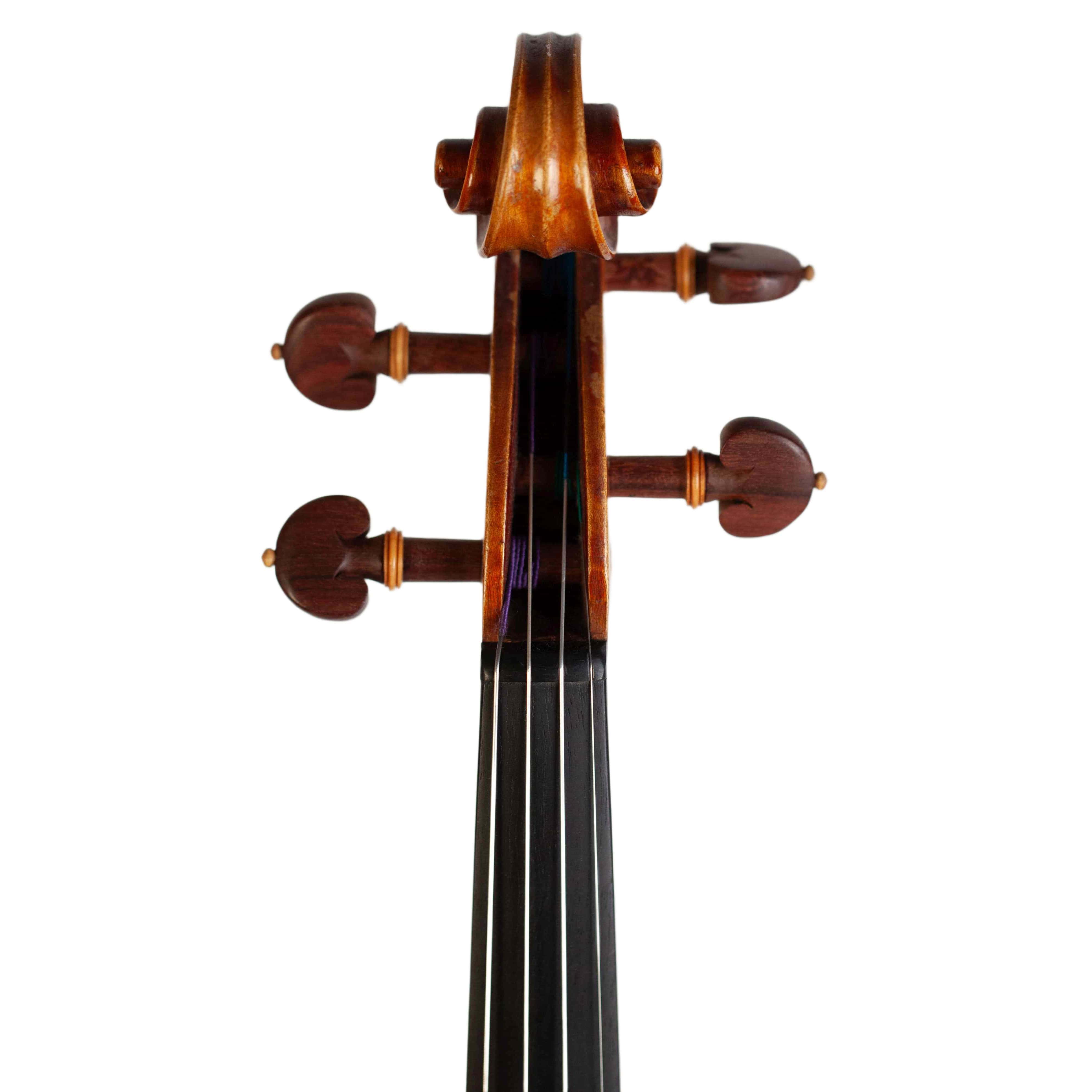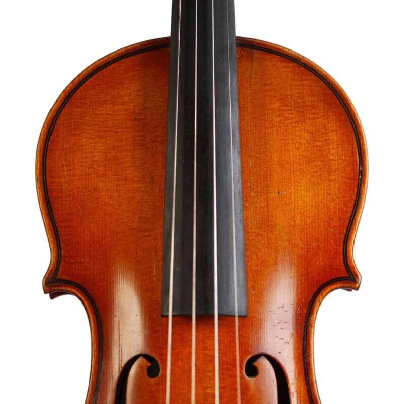 The whole length of the violin is 589 mm and the back 355 mm. The width of the upper bouts: 163 mm; middle bouts: 109 mm; lower bouts: 201 mm.