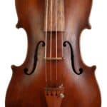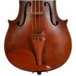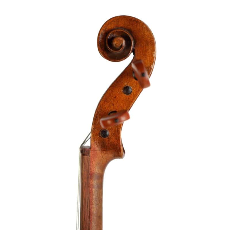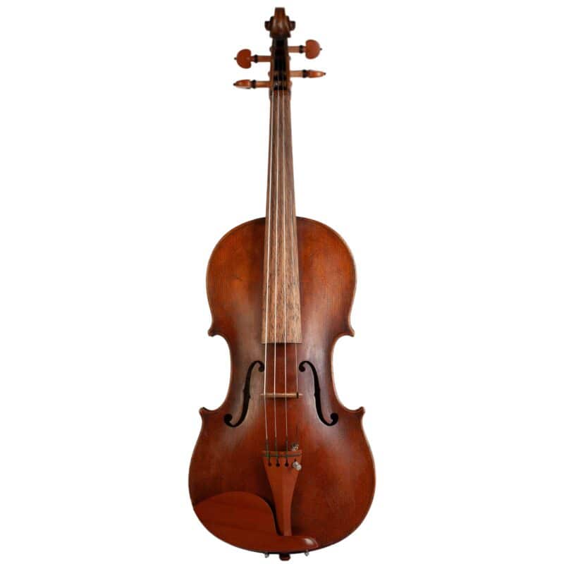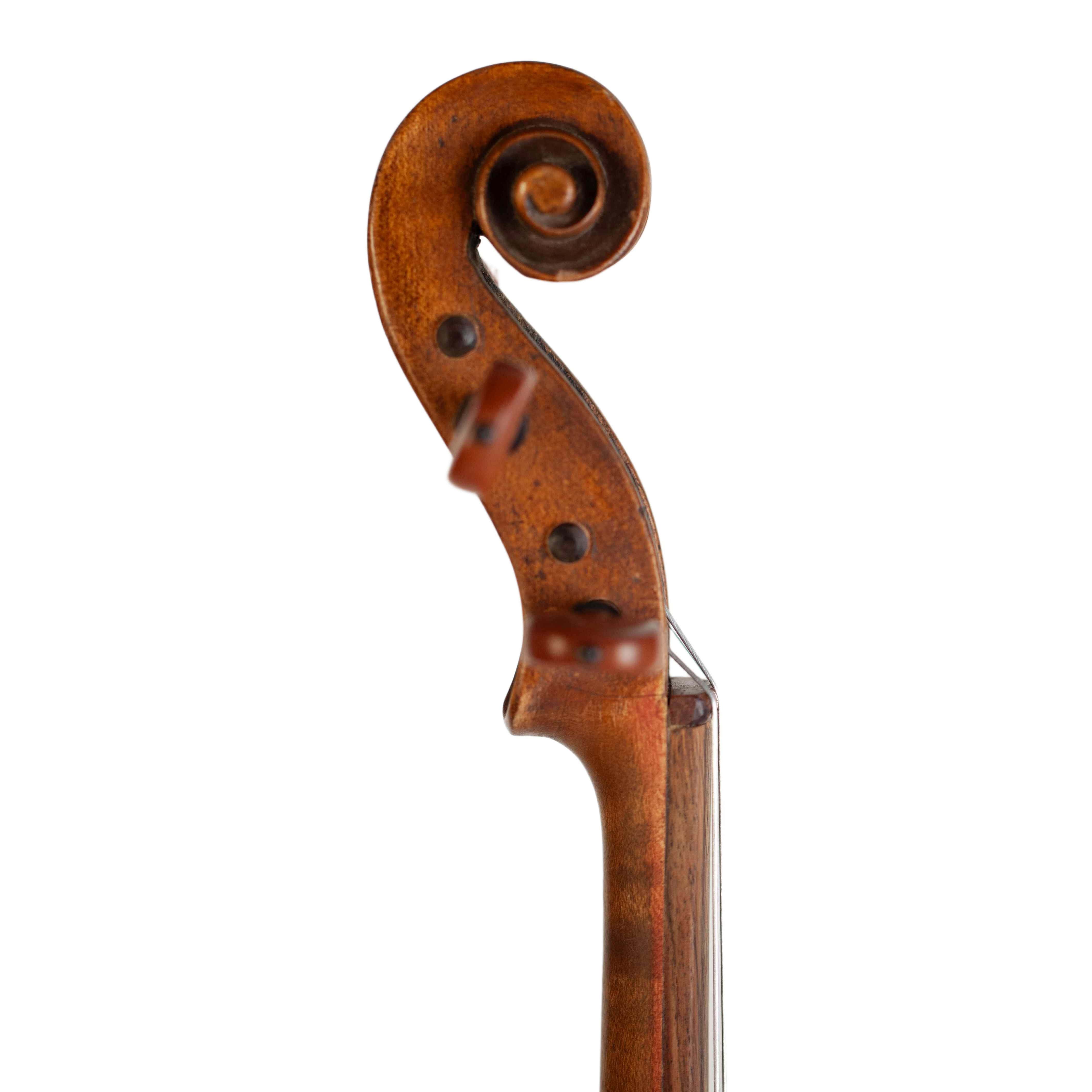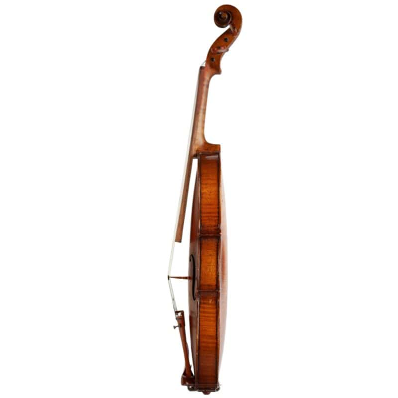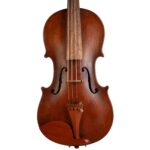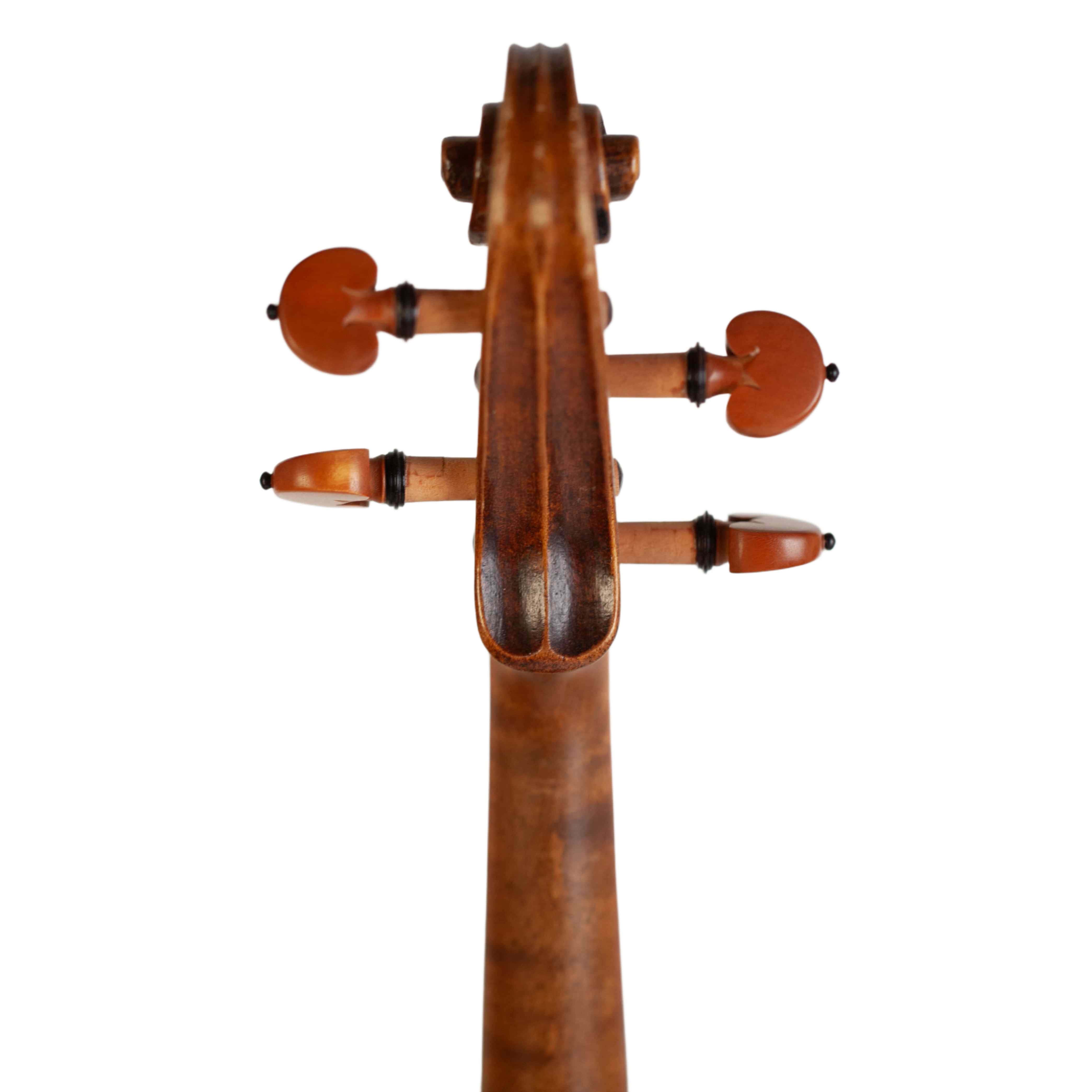 The whole length of the violin is 590 mm and the back 362 mm. The width of the upper bouts: 162 mm; middle bouts: 112 mm; lower bouts: 199 mm.