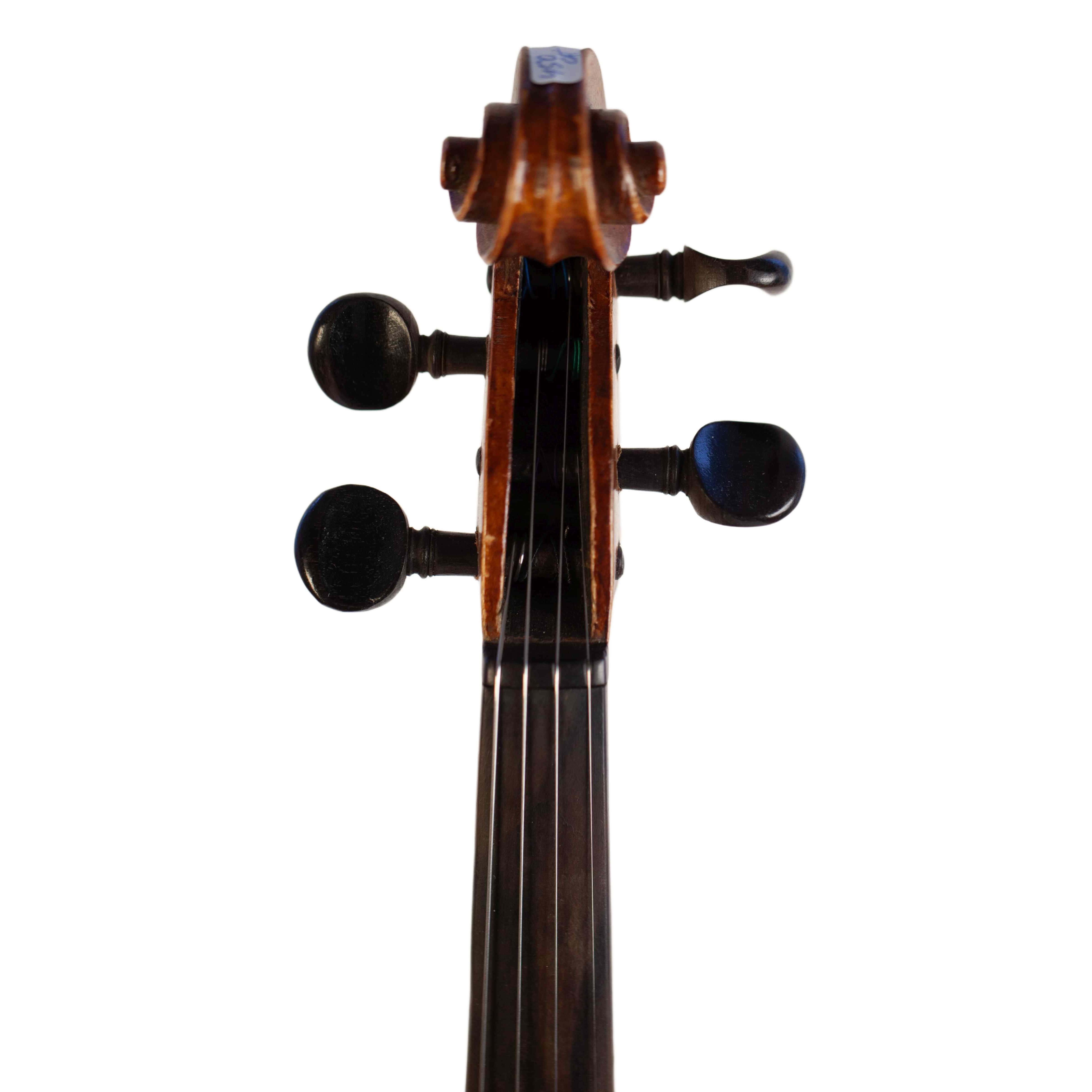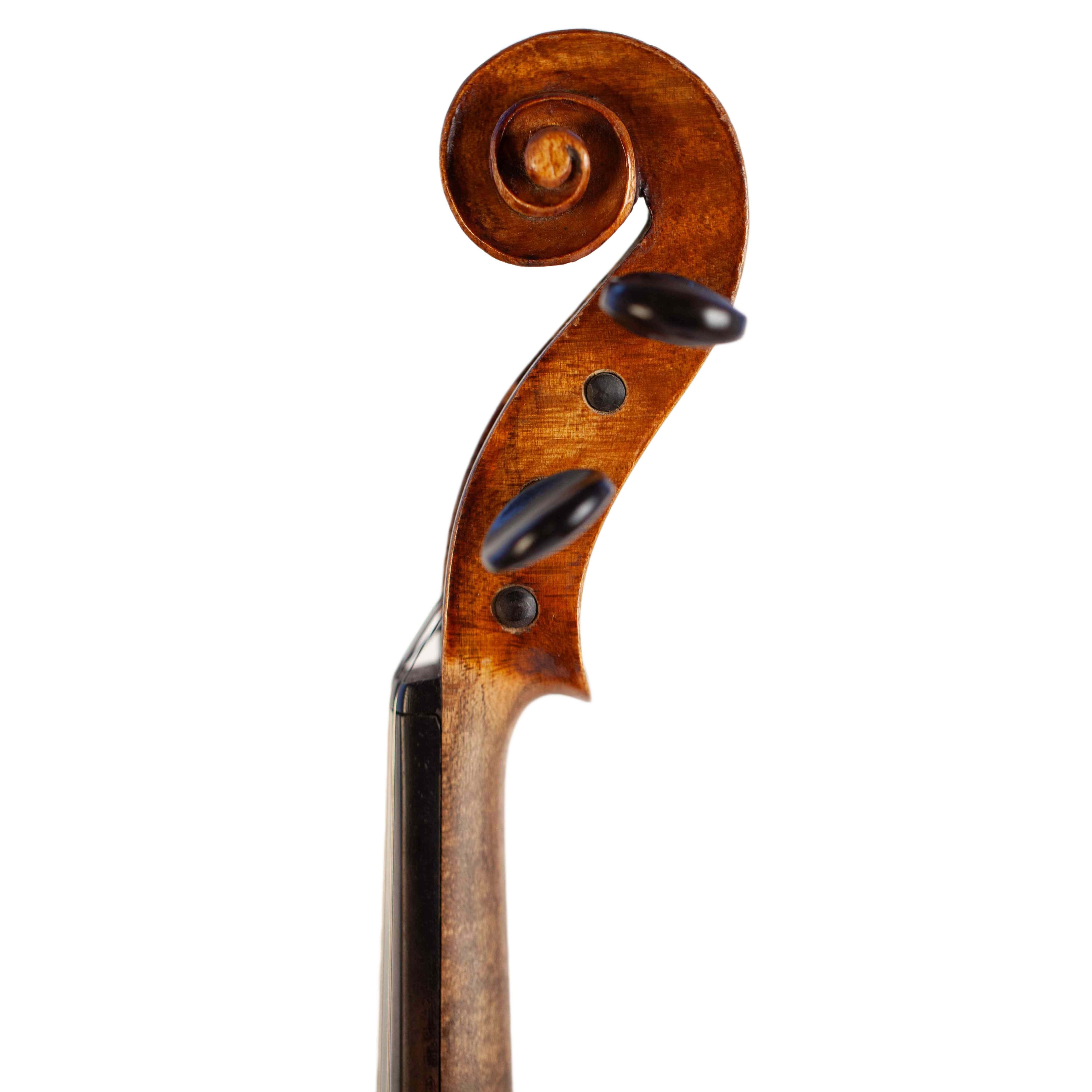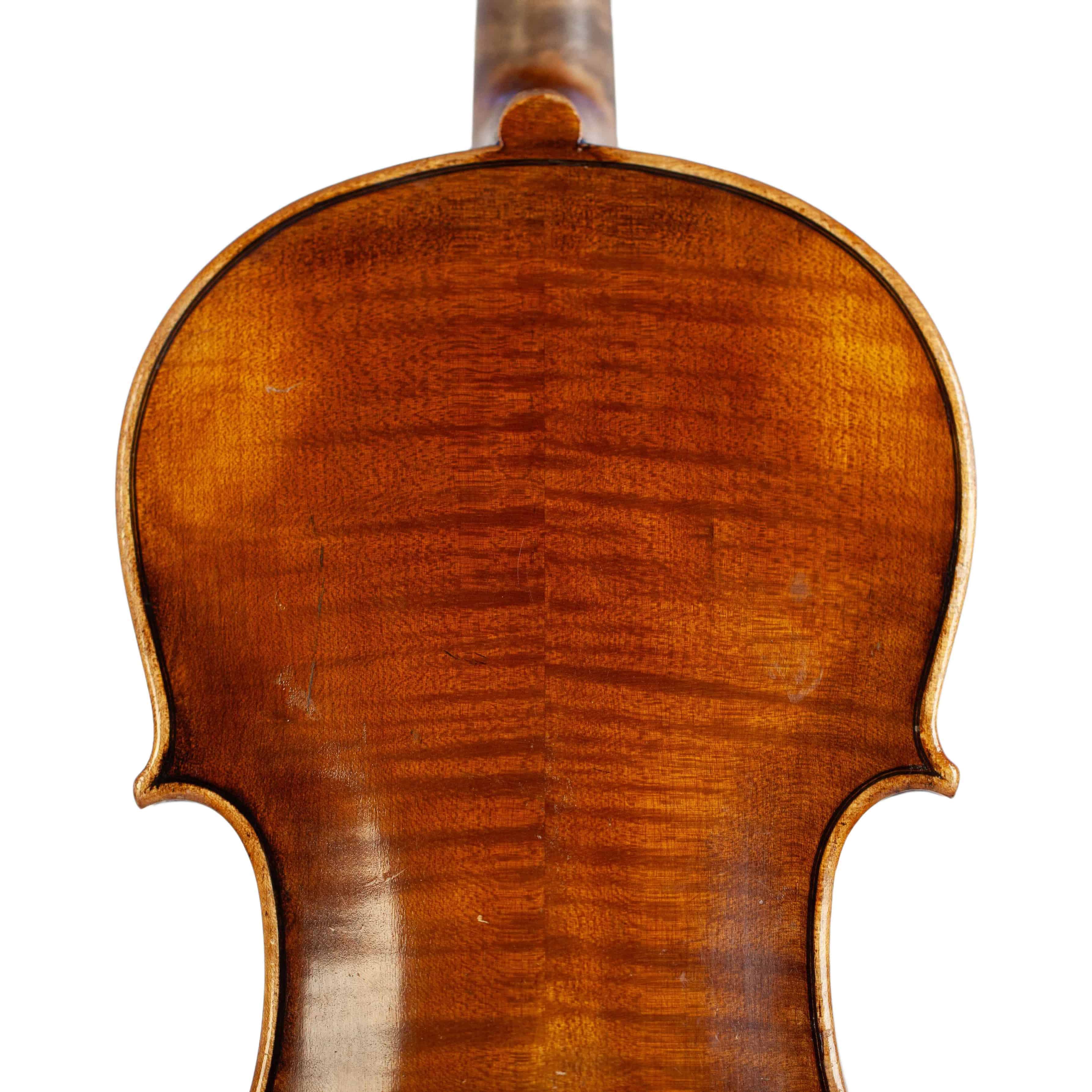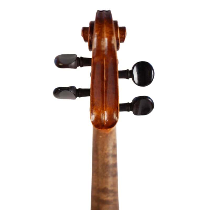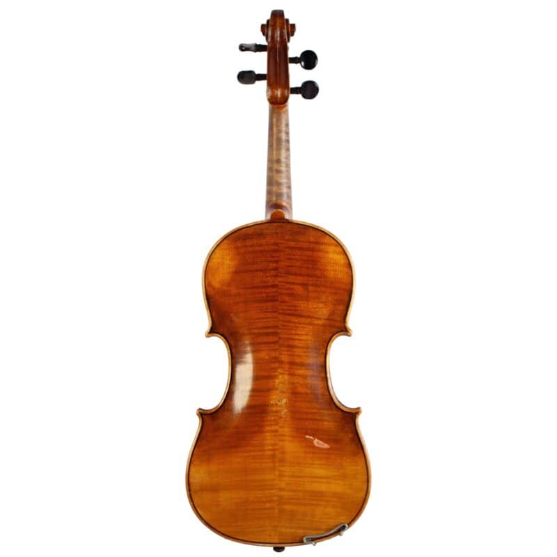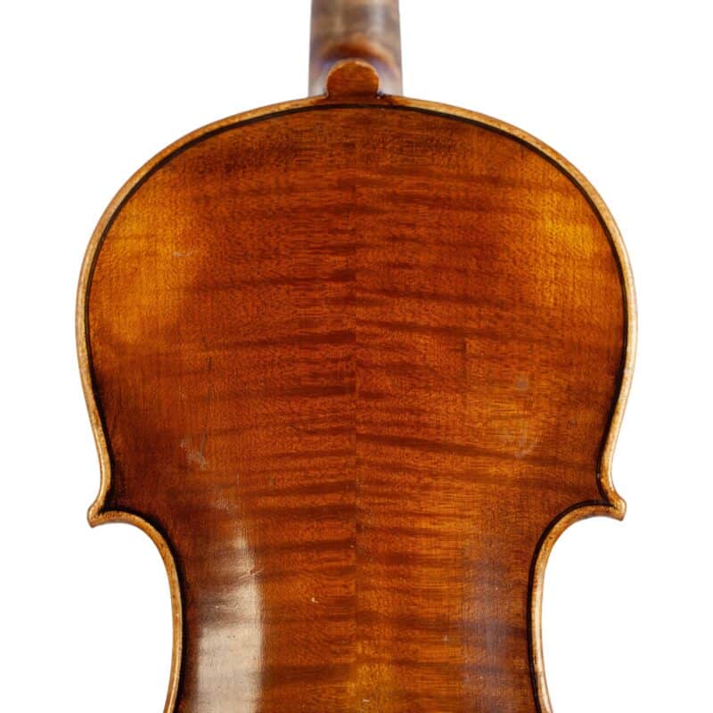 The whole length of the violin is 590 mm and the back 359 mm. The width of the upper bouts: 169 mm; middle bouts: 114 mm; lower bouts: 204 mm.