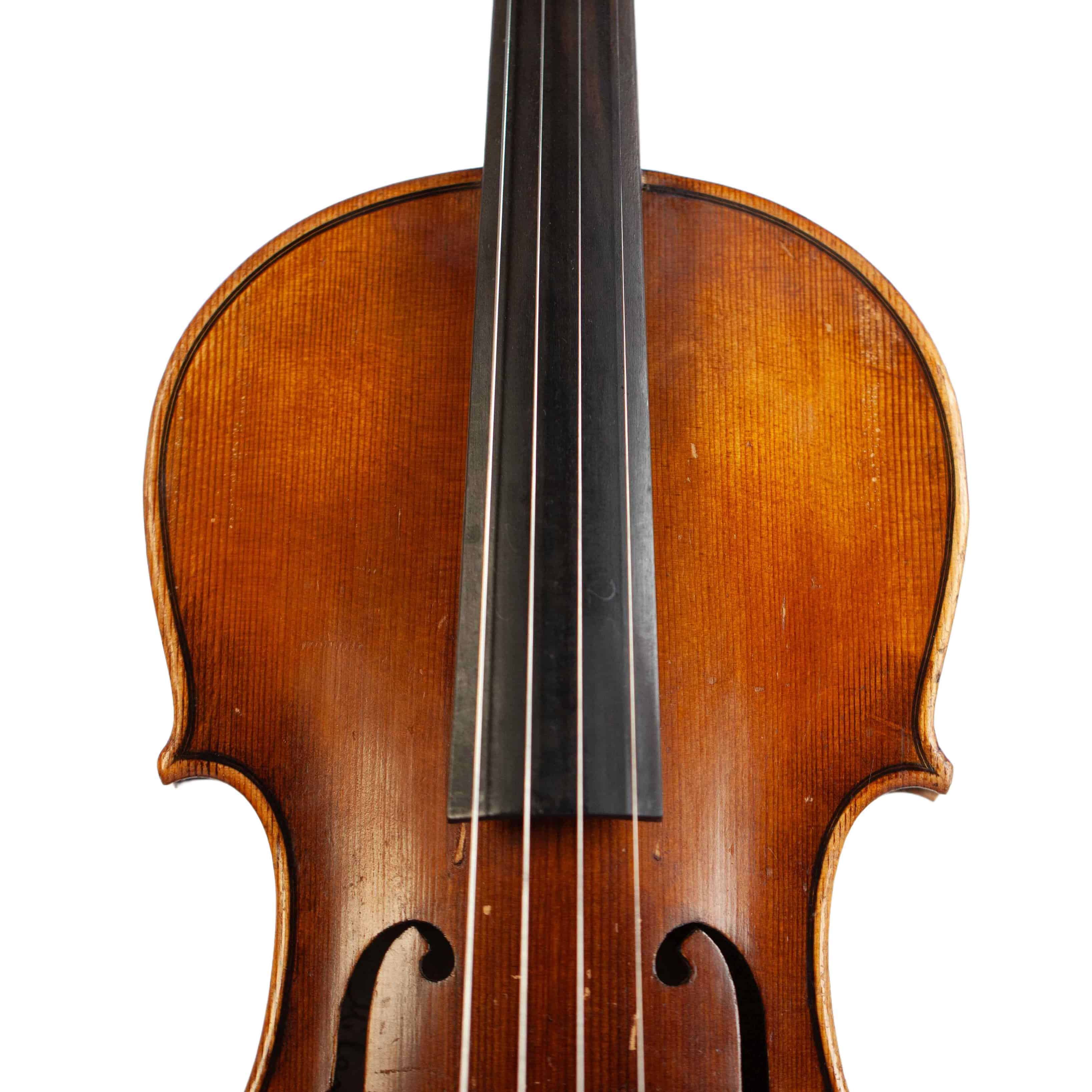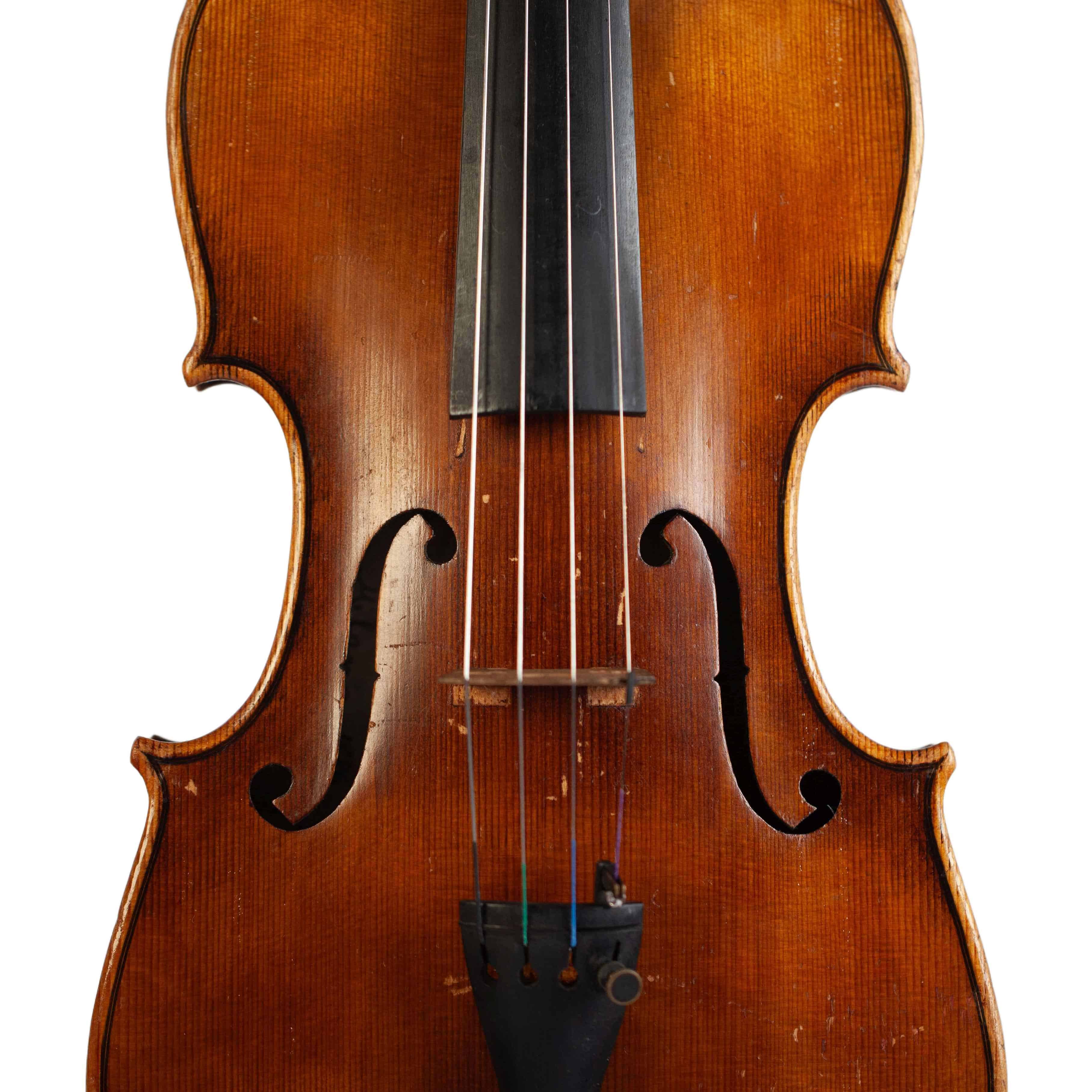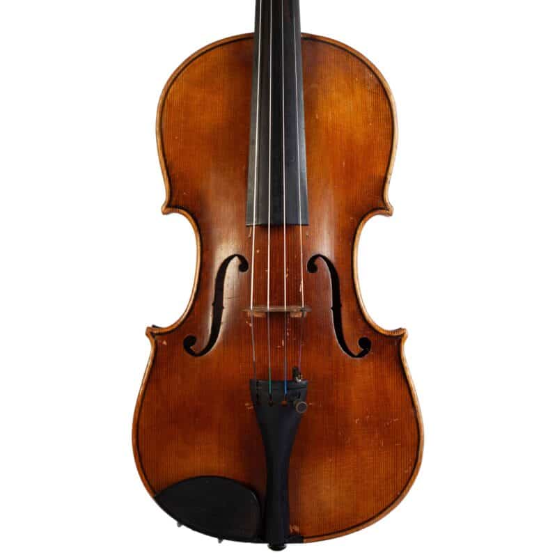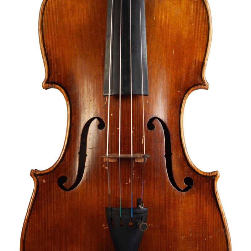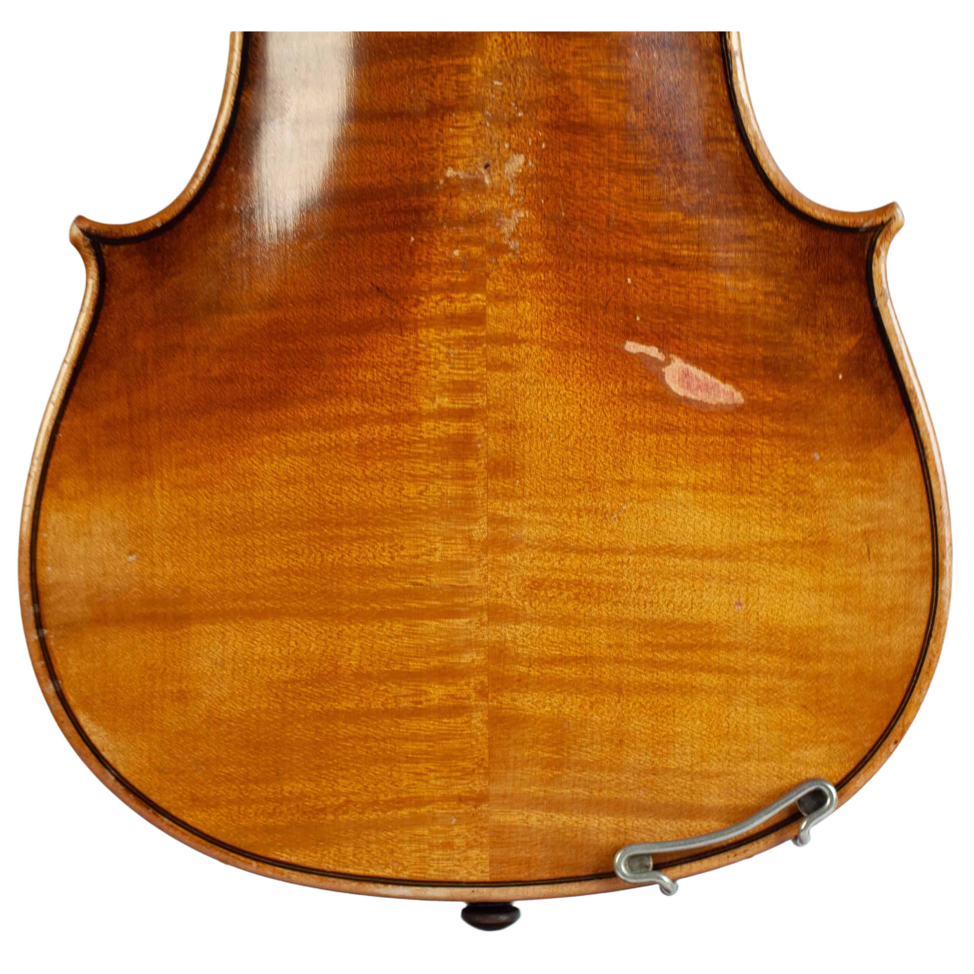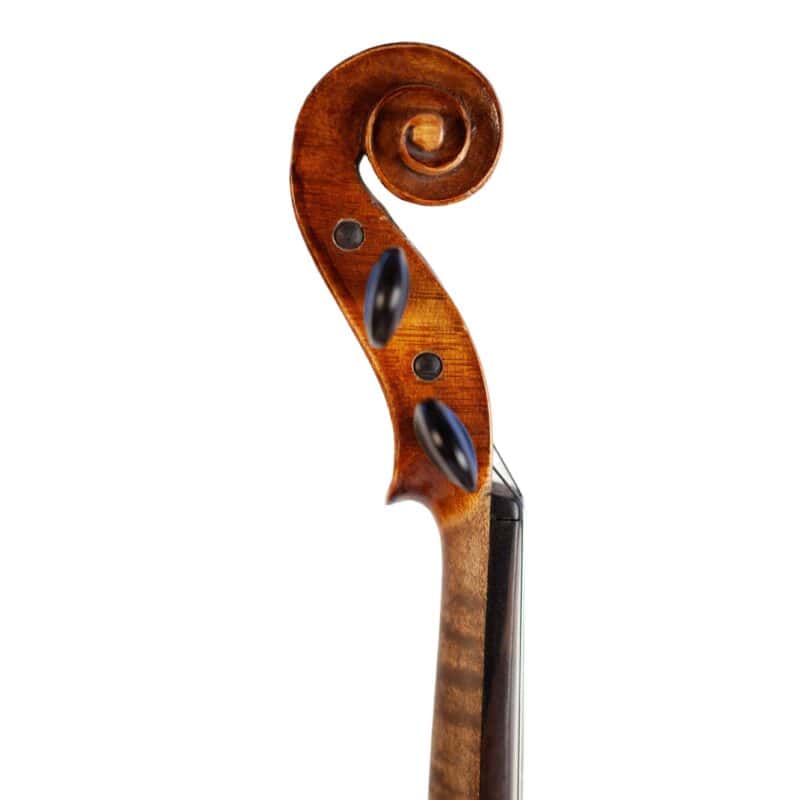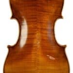 The whole length of the violin is 590 mm and the back 359 mm. The width of the upper bouts: 169 mm; middle bouts: 114 mm; lower bouts: 204 mm.