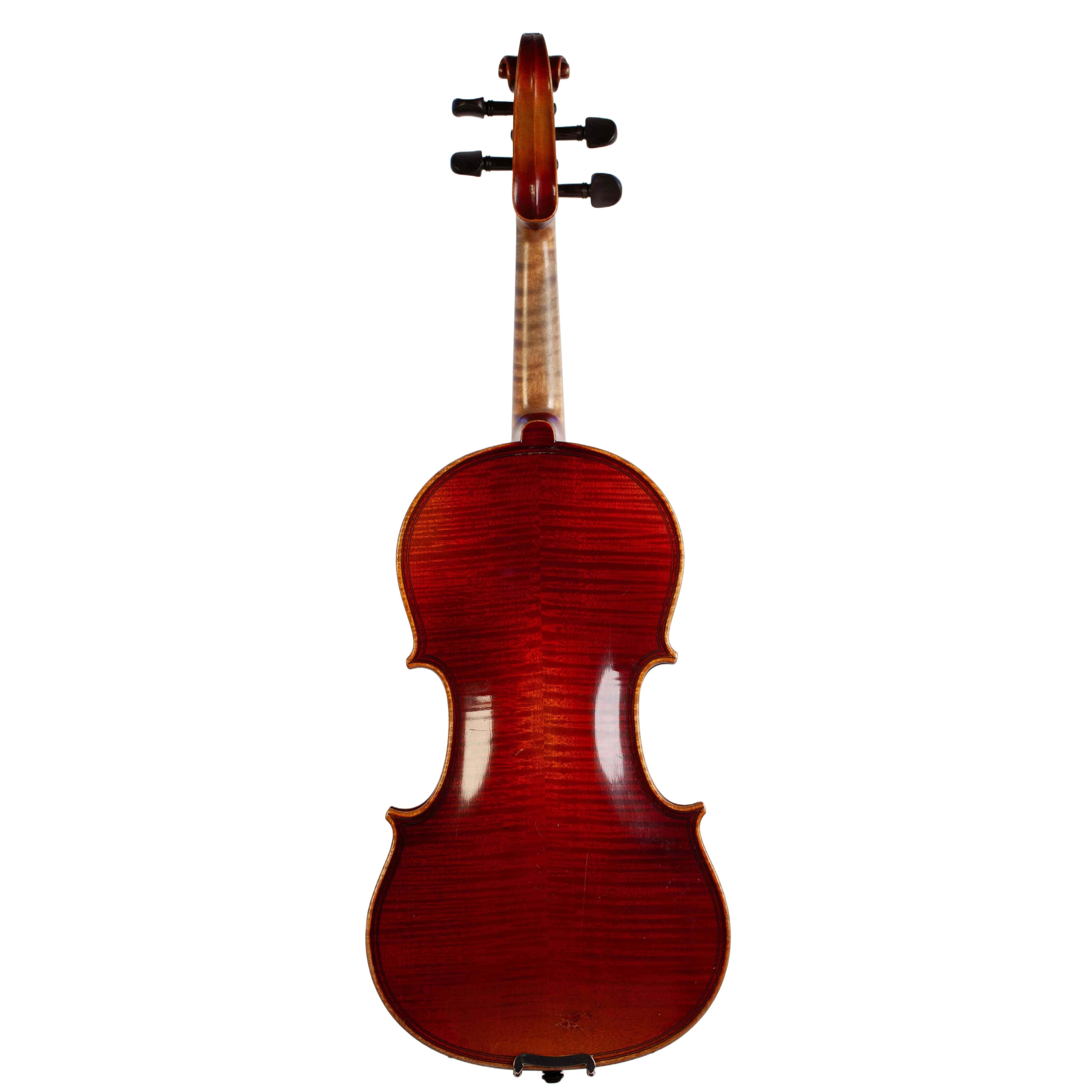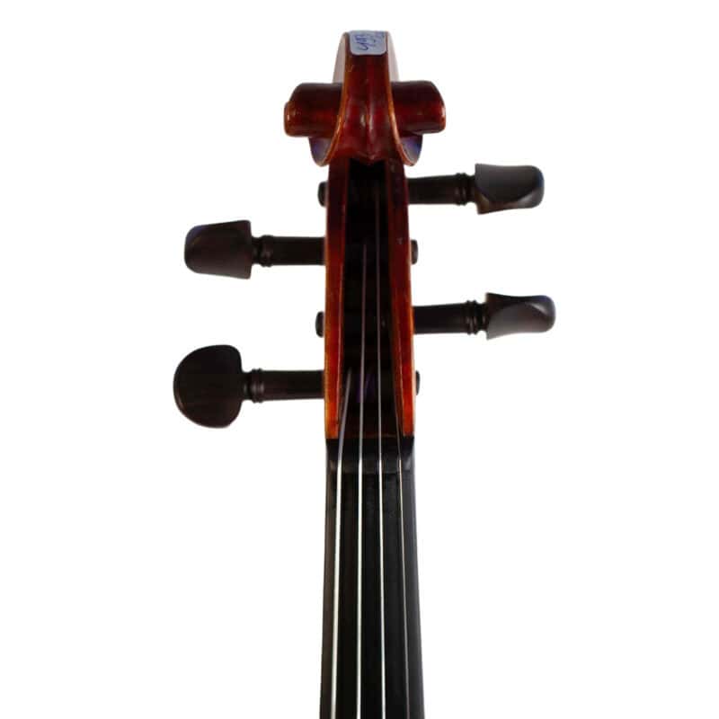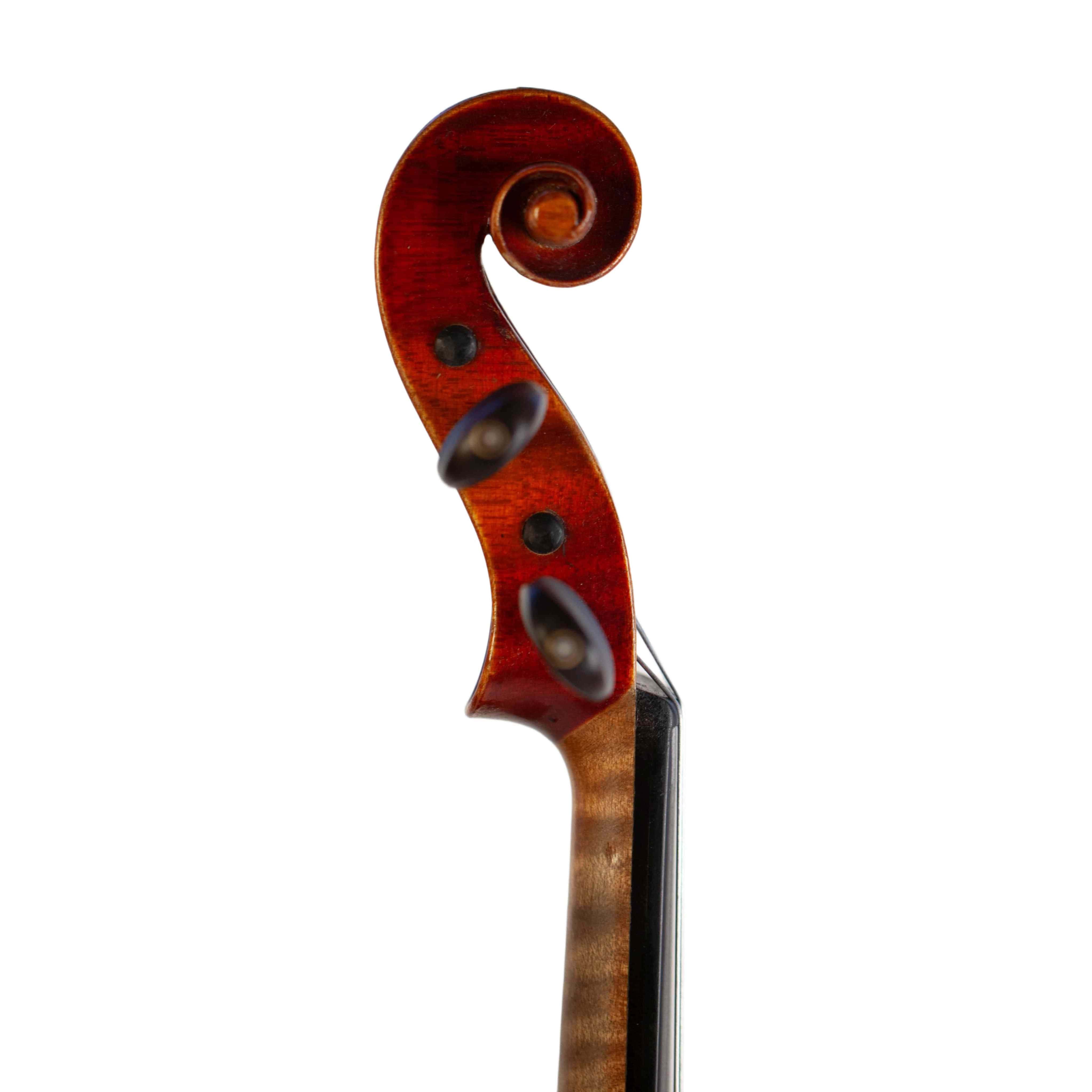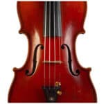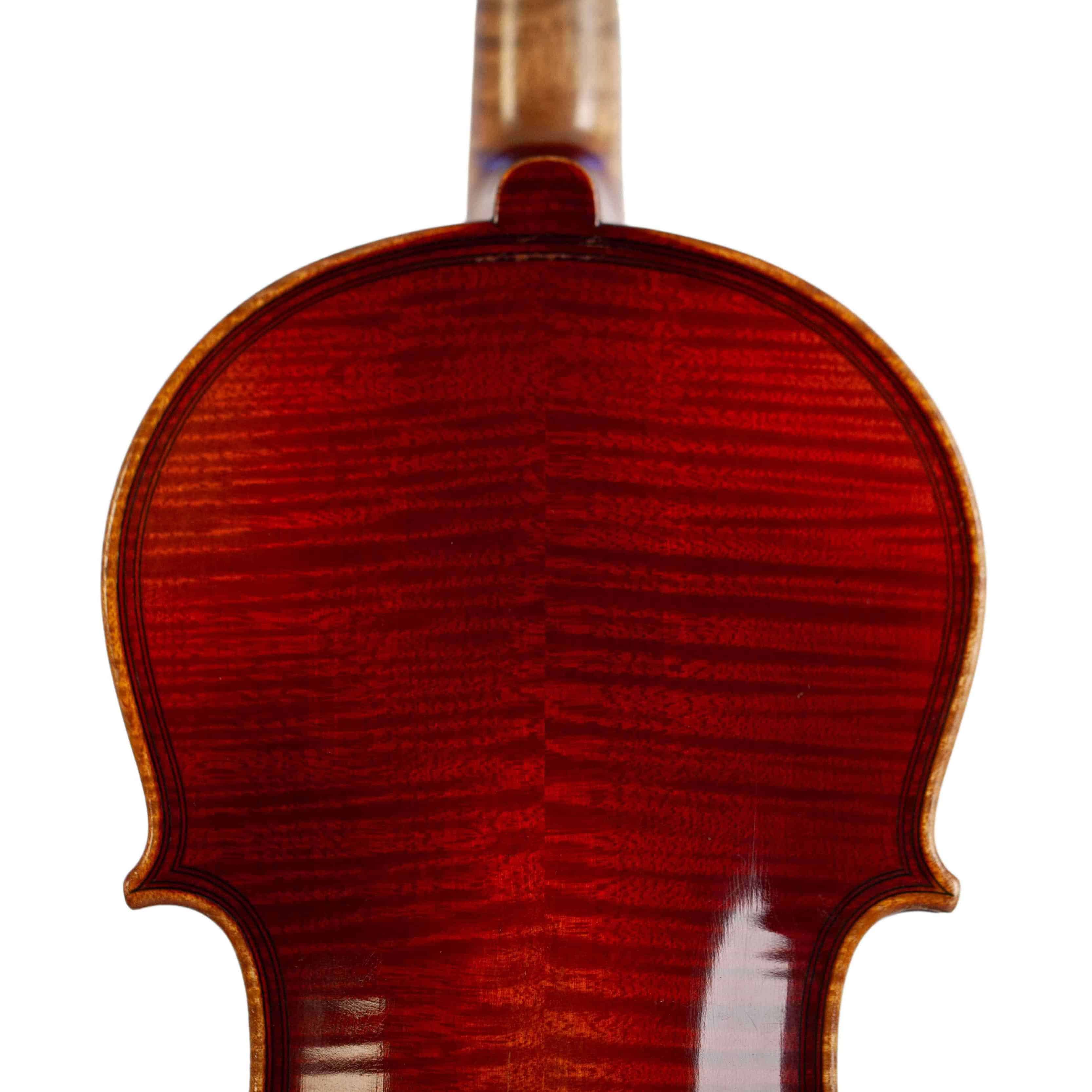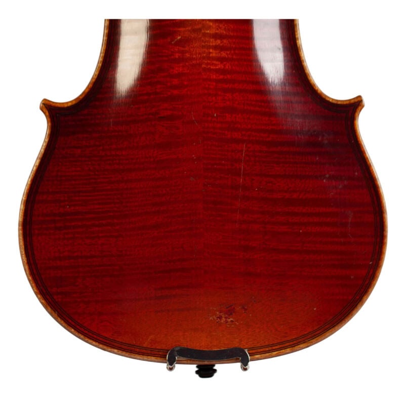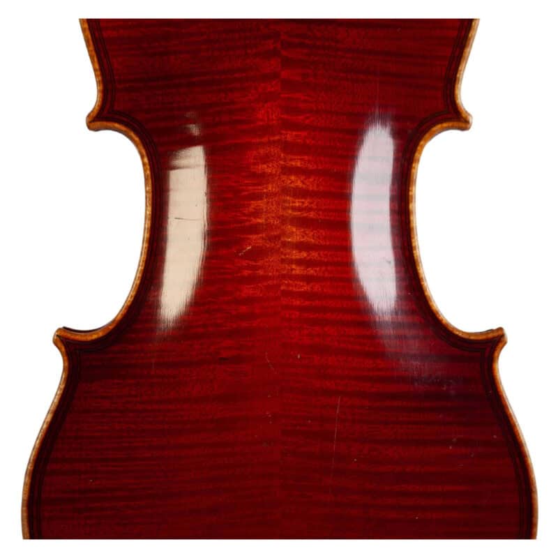 The whole length of the violin is 592 mm and the back 359 mm. The width of the upper bouts: 165 mm; middle bouts: 113 mm; lower bouts: 209 mm.