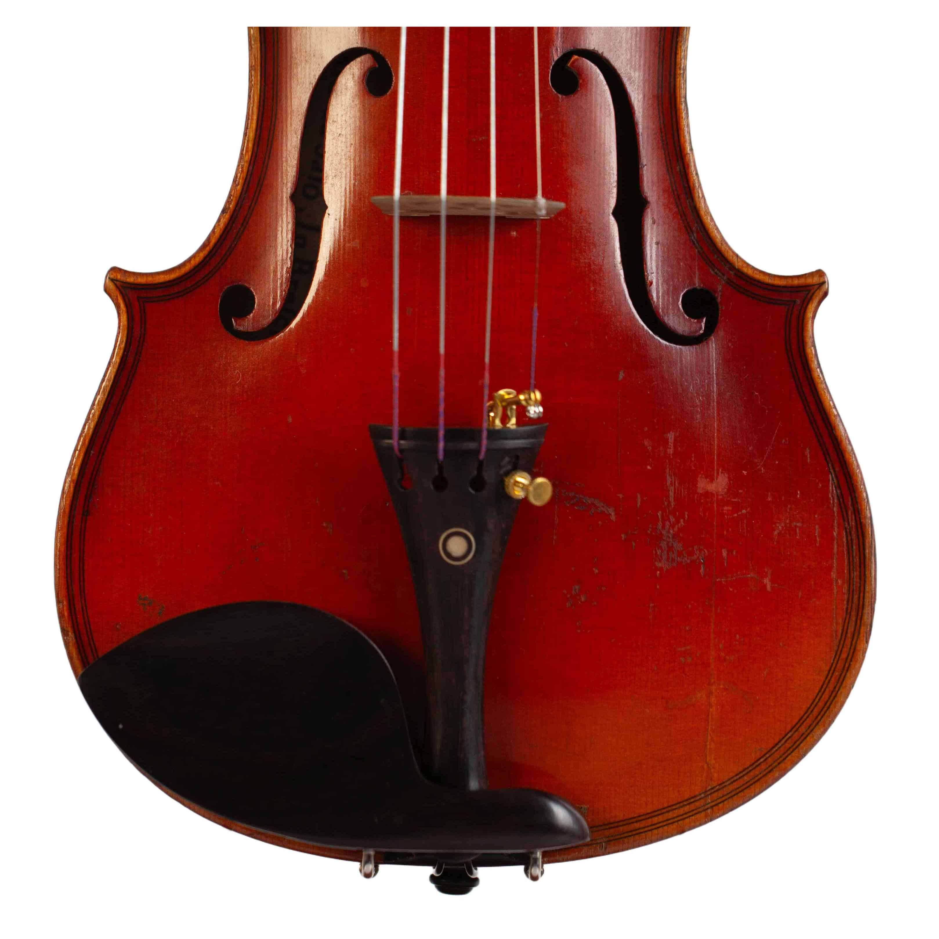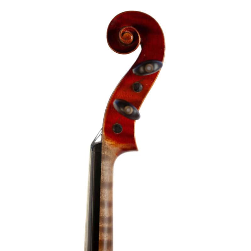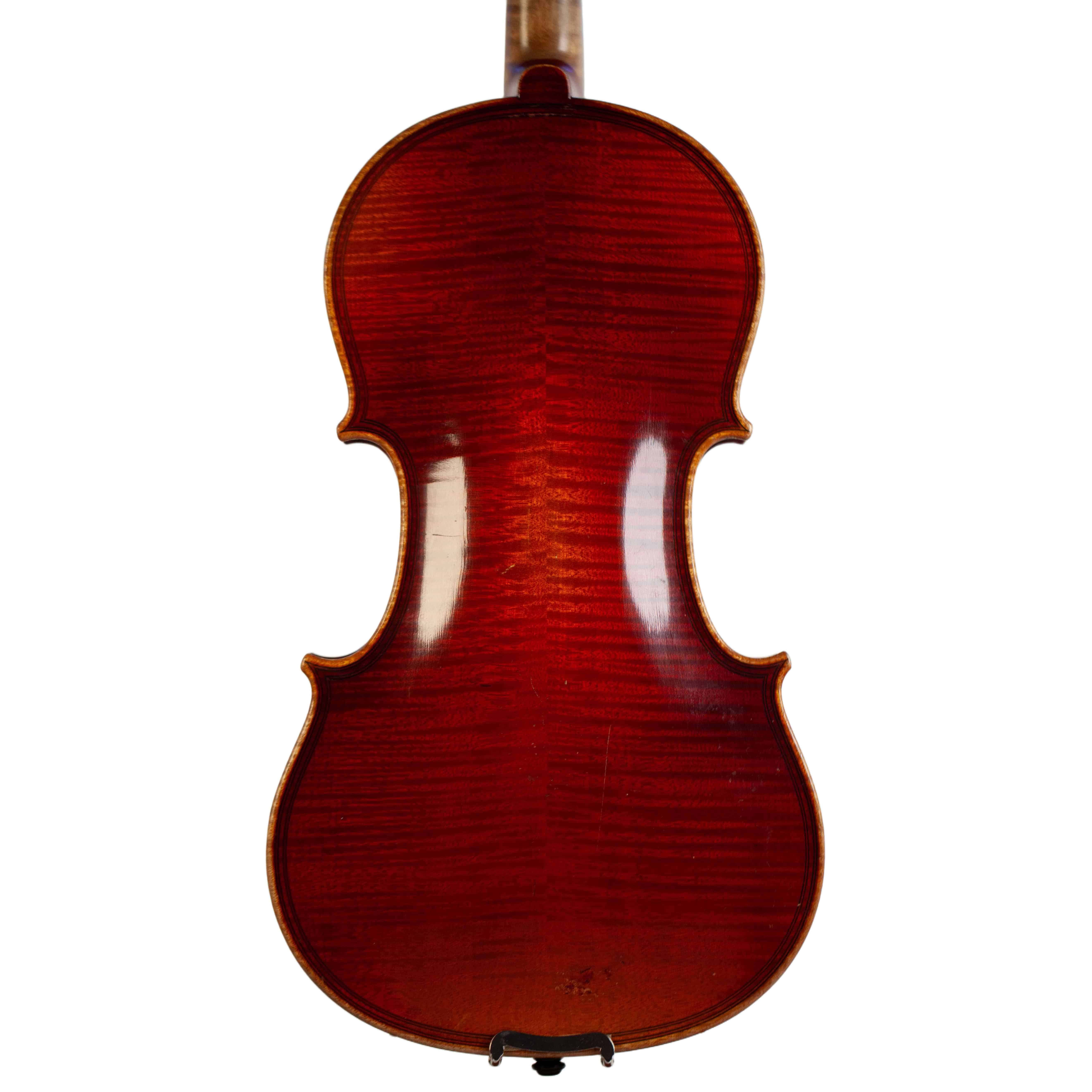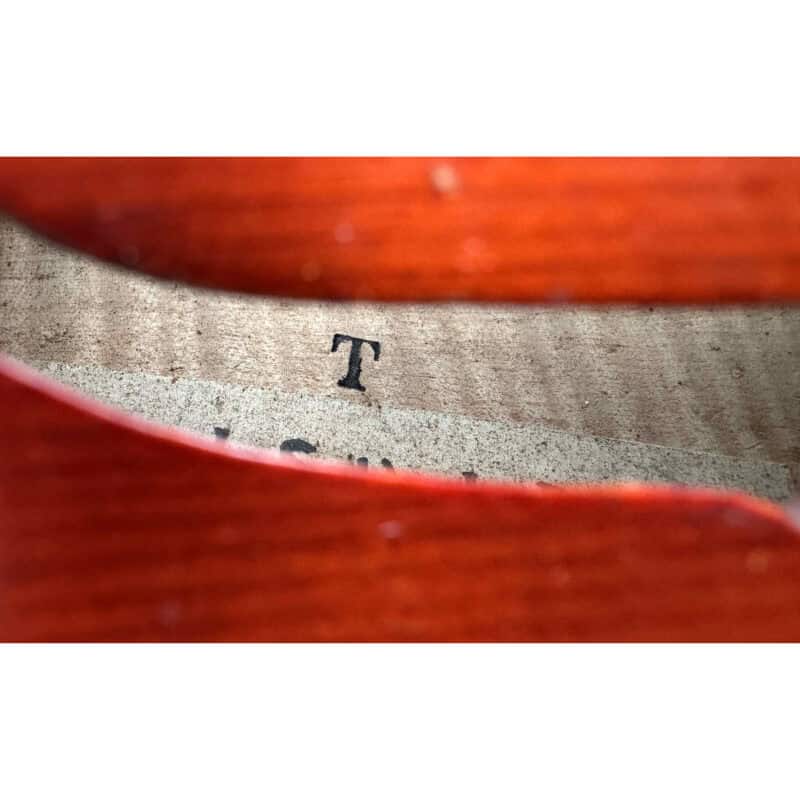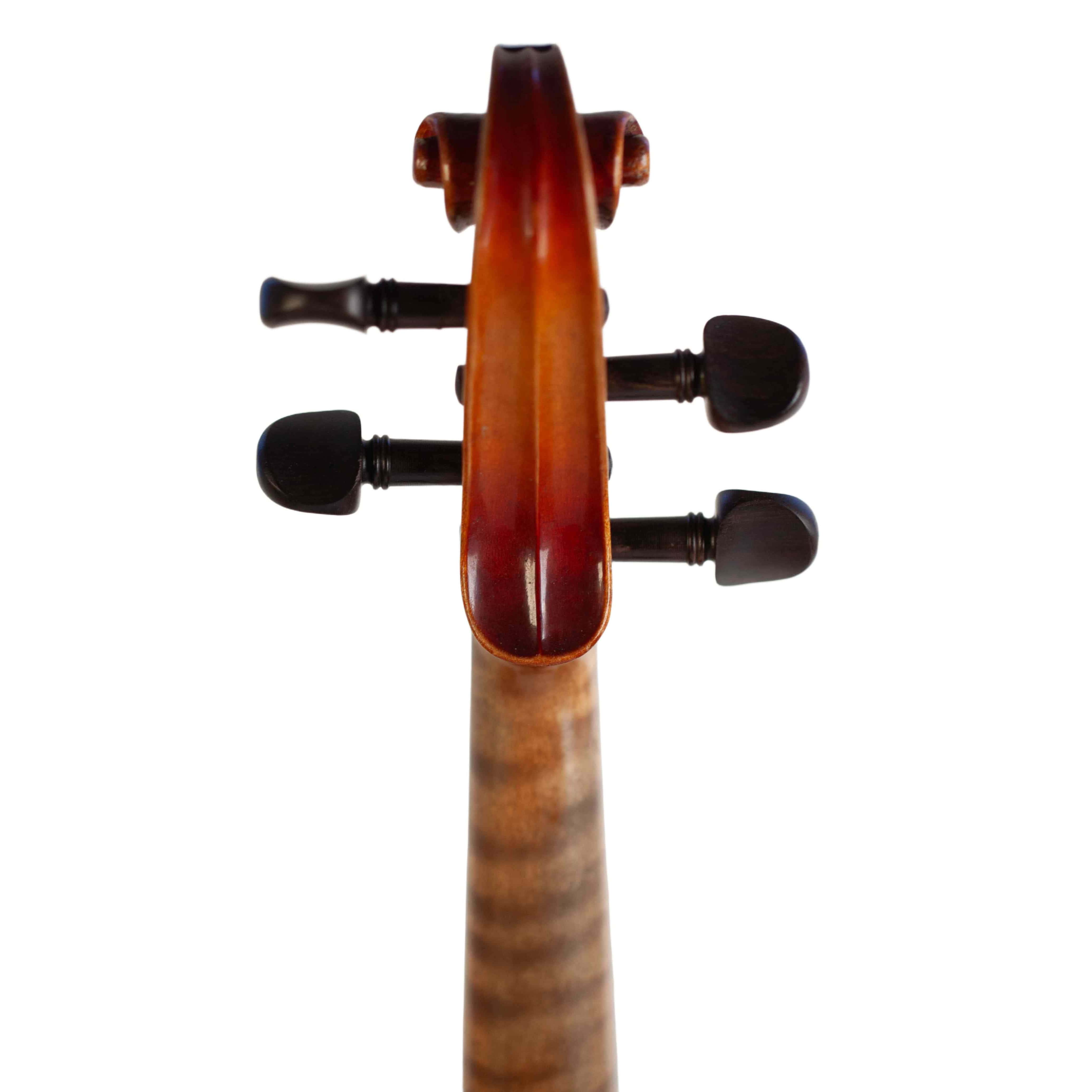 The whole length of the violin is 592 mm and the back 359 mm. The width of the upper bouts: 165 mm; middle bouts: 113 mm; lower bouts: 209 mm.