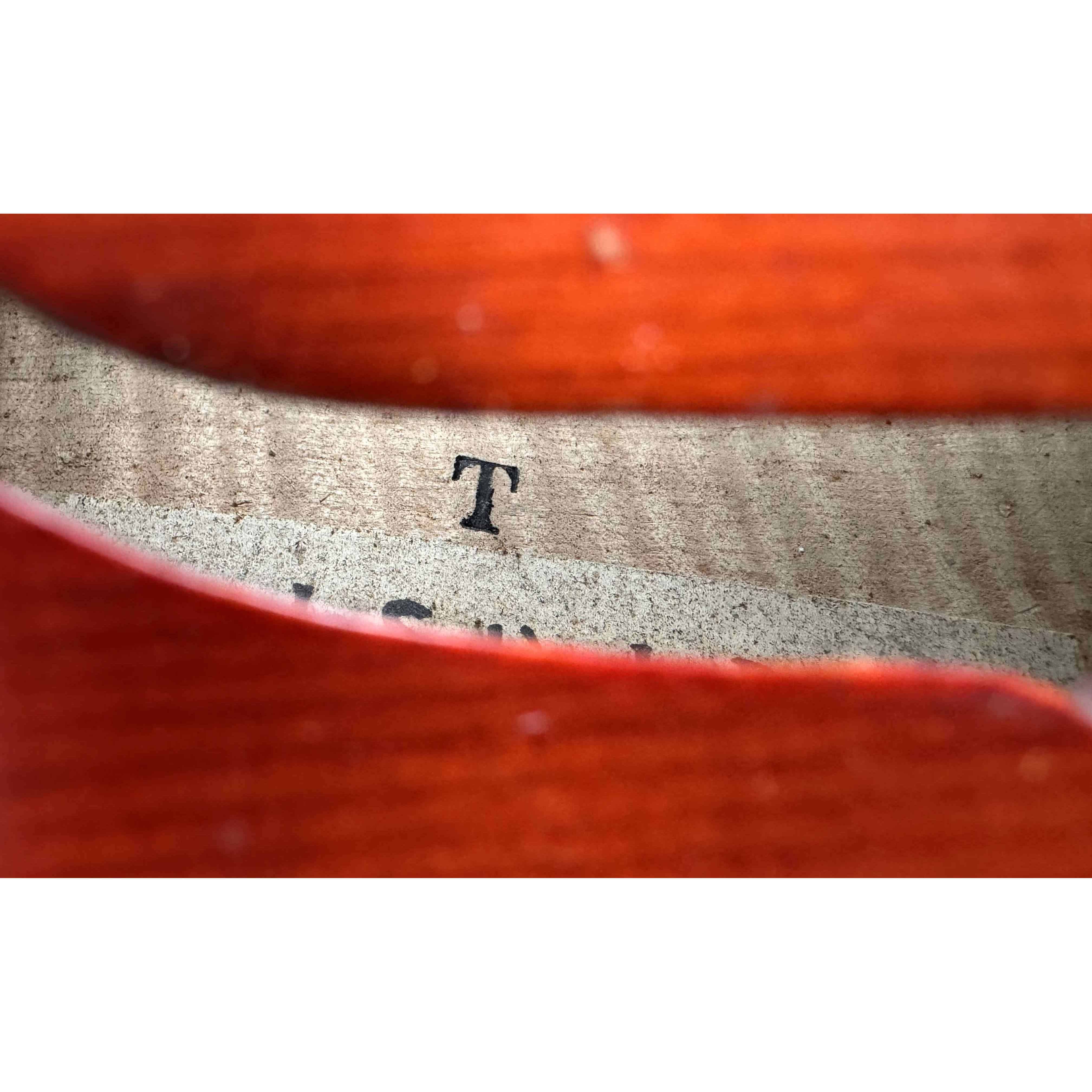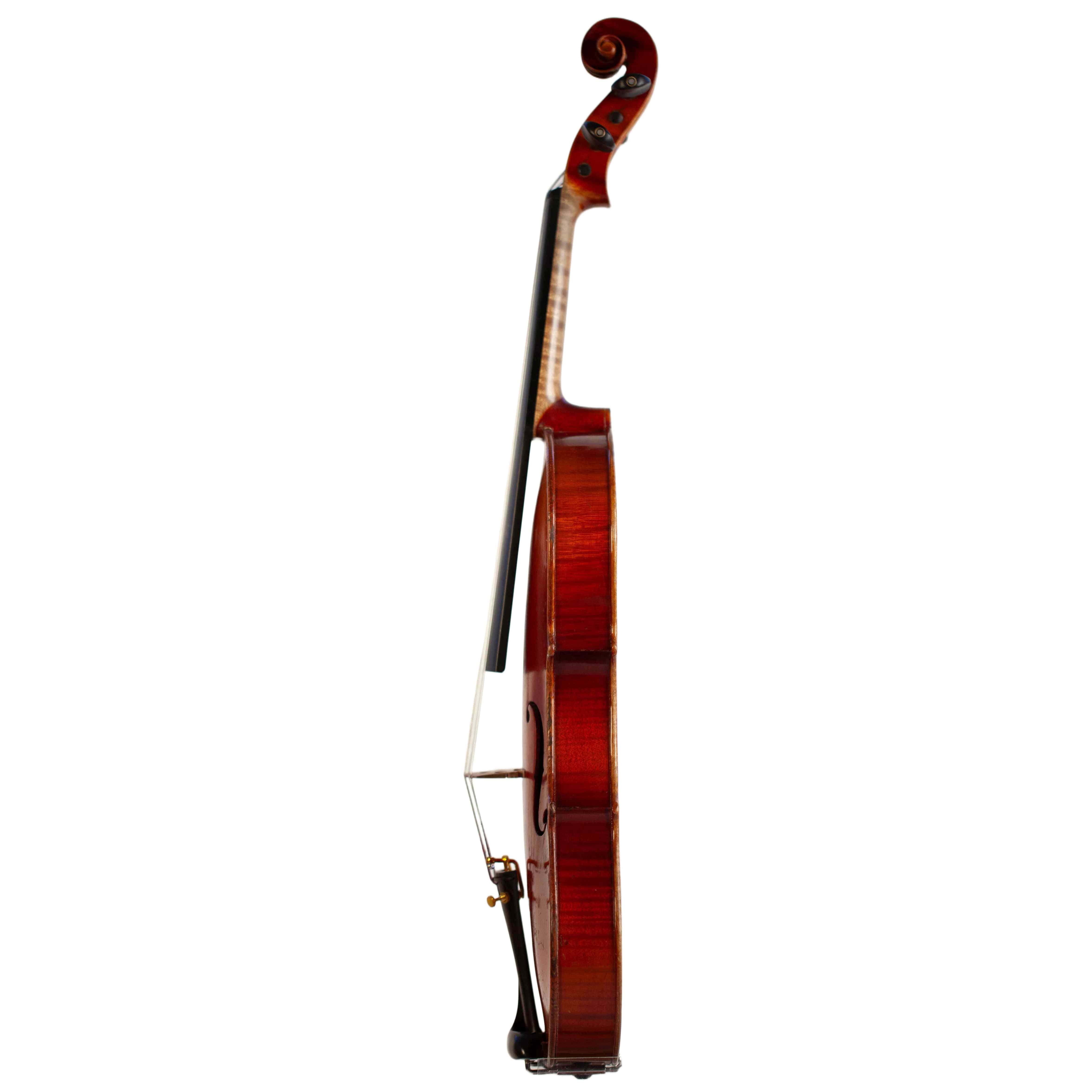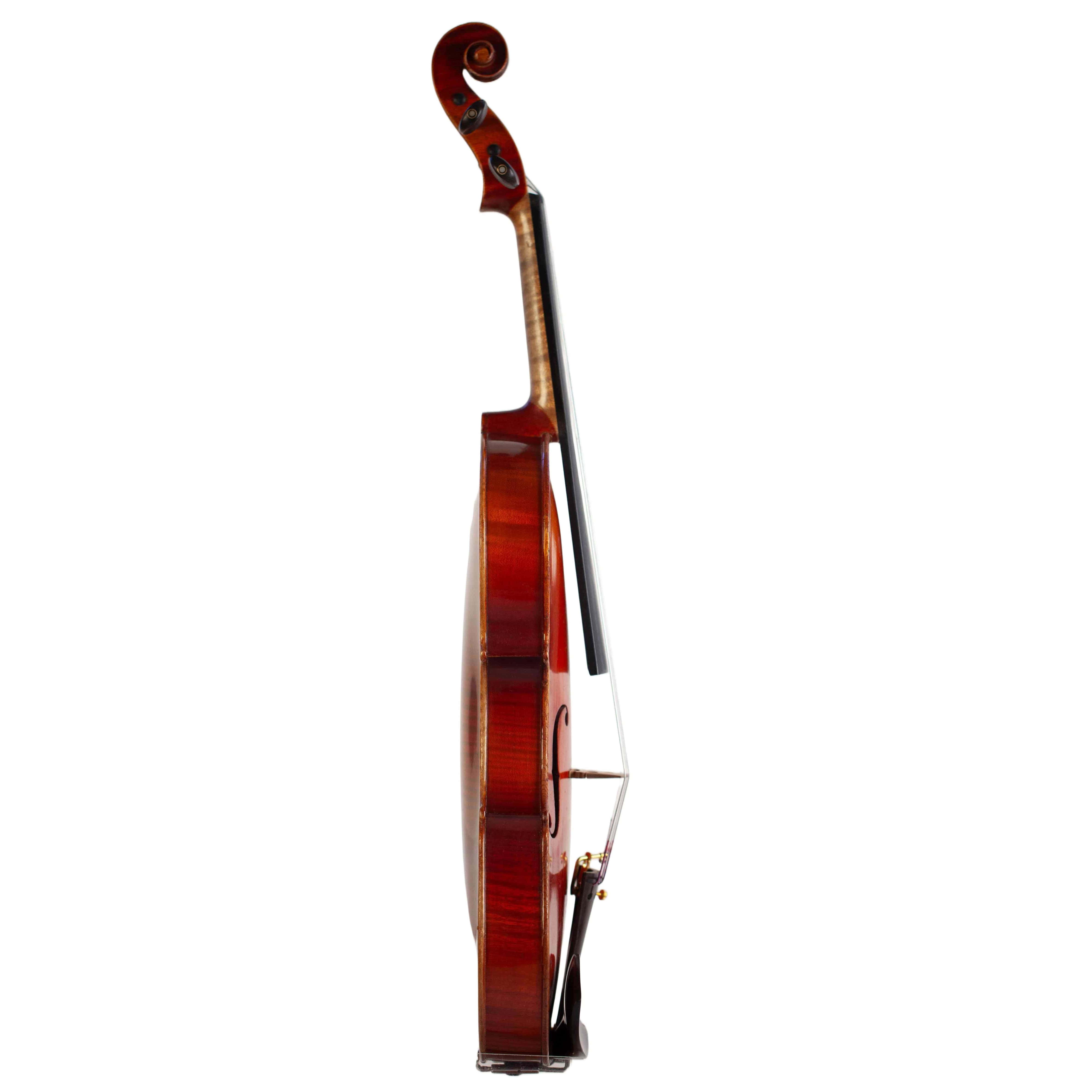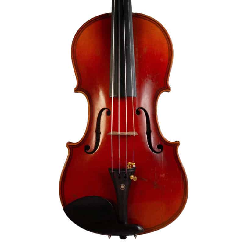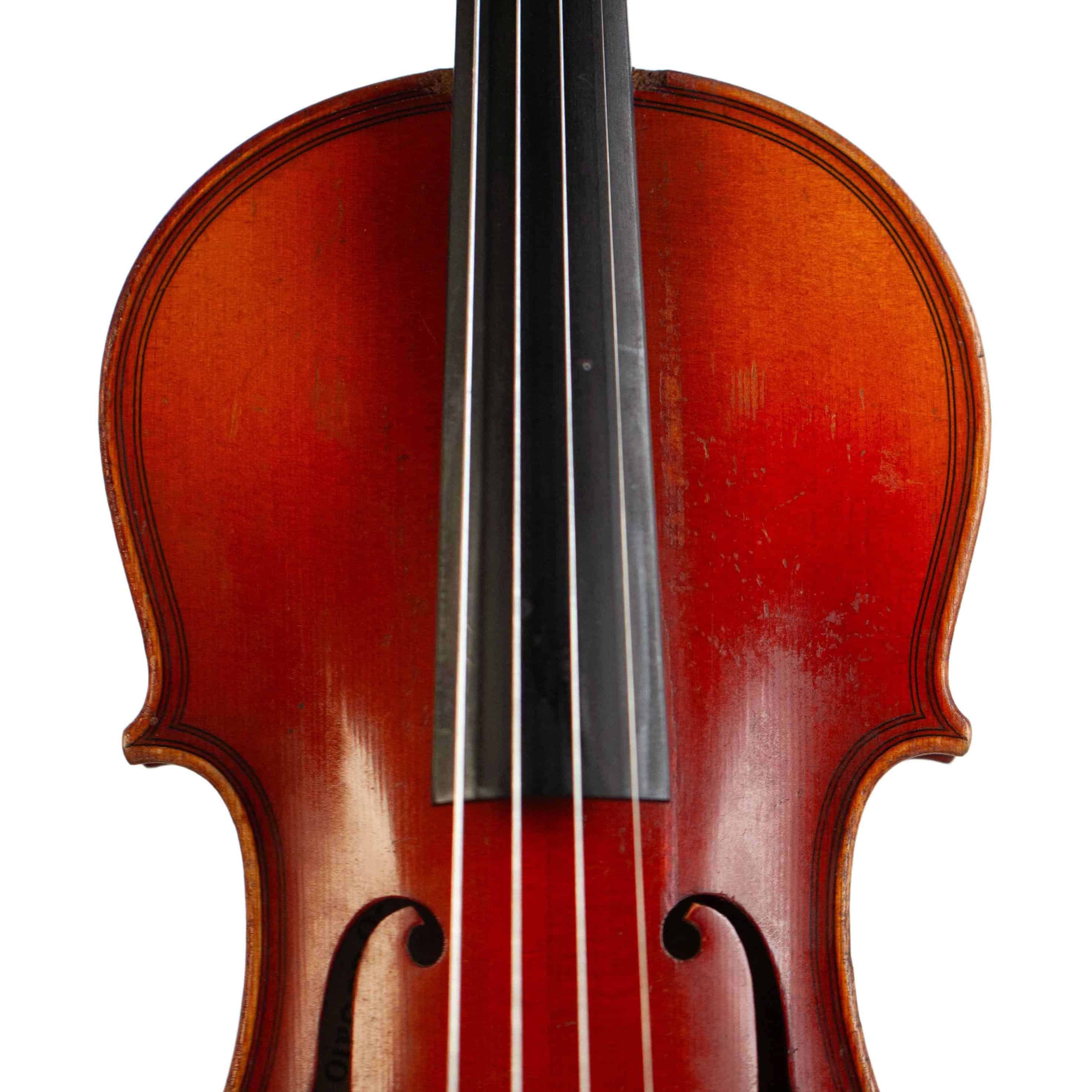 The whole length of the violin is 592 mm and the back 359 mm. The width of the upper bouts: 165 mm; middle bouts: 113 mm; lower bouts: 209 mm.