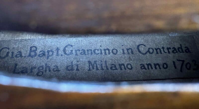Label: Gio Bapt Grancino in Contrada Largha di Milano anno 1703.