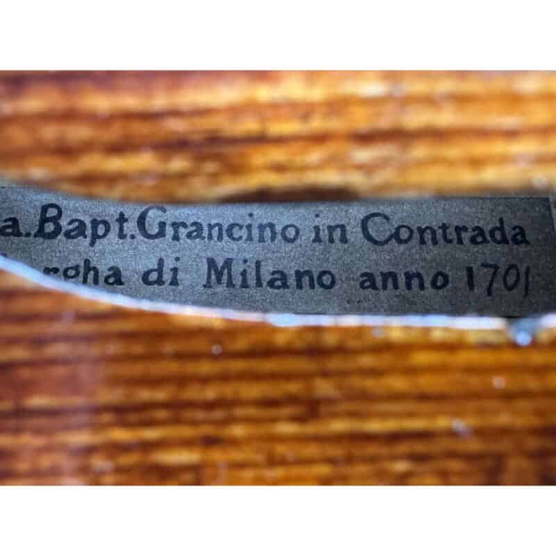 Label: Gio Bapt Grancino in Contrada Largha di Milano anno 1701.