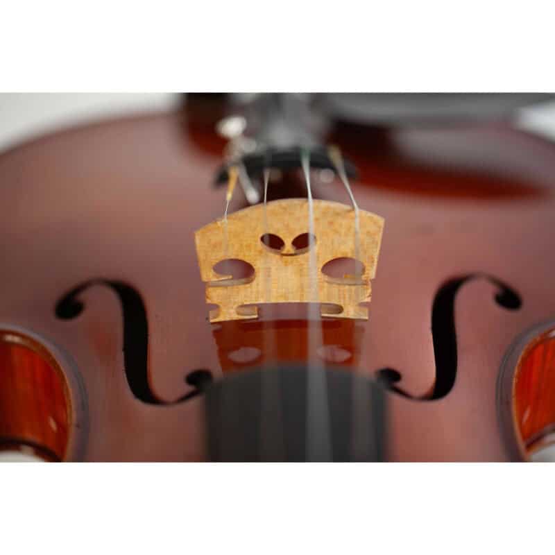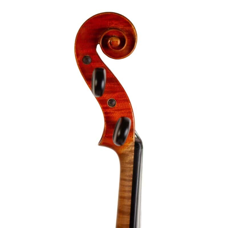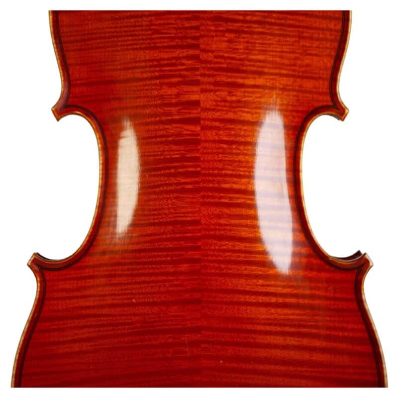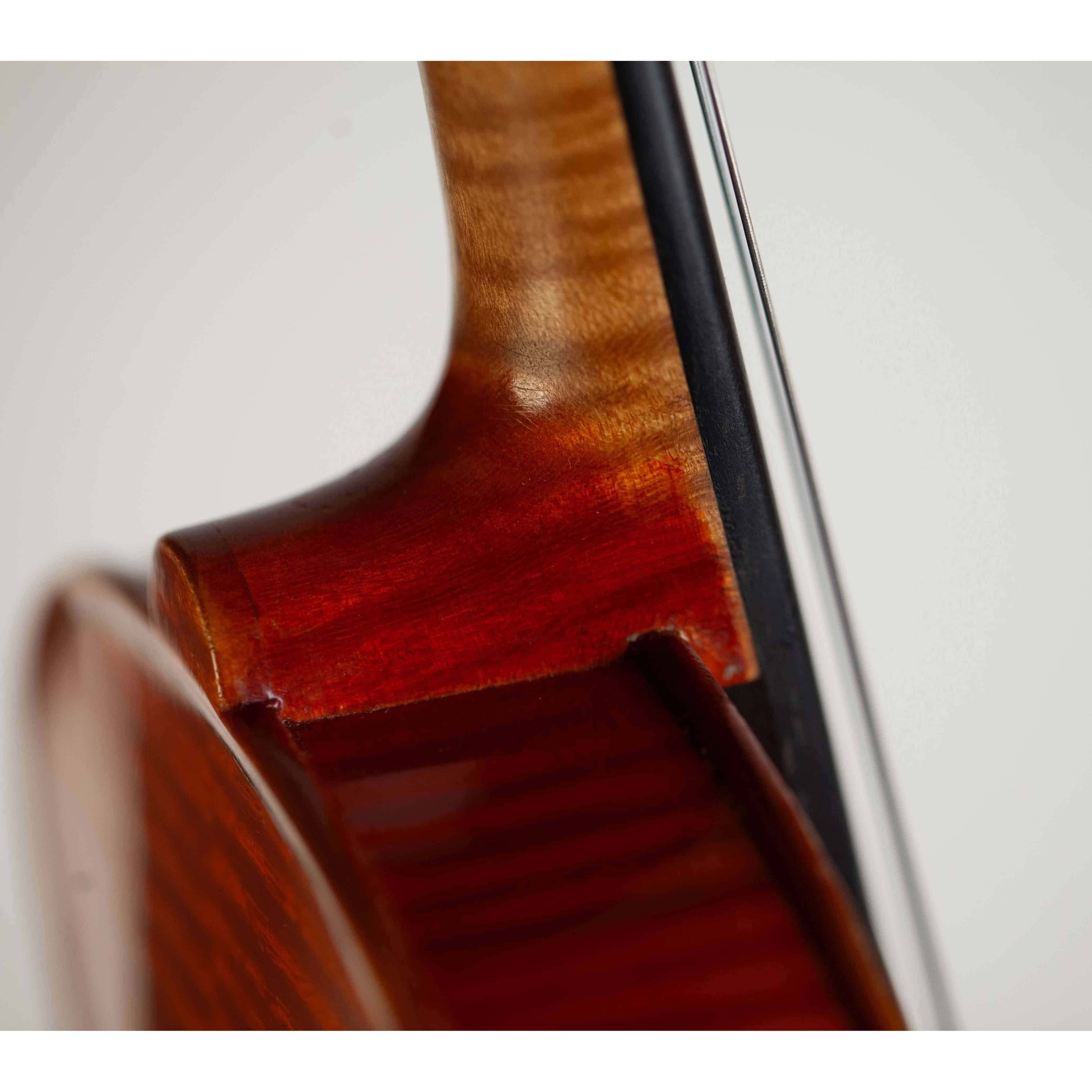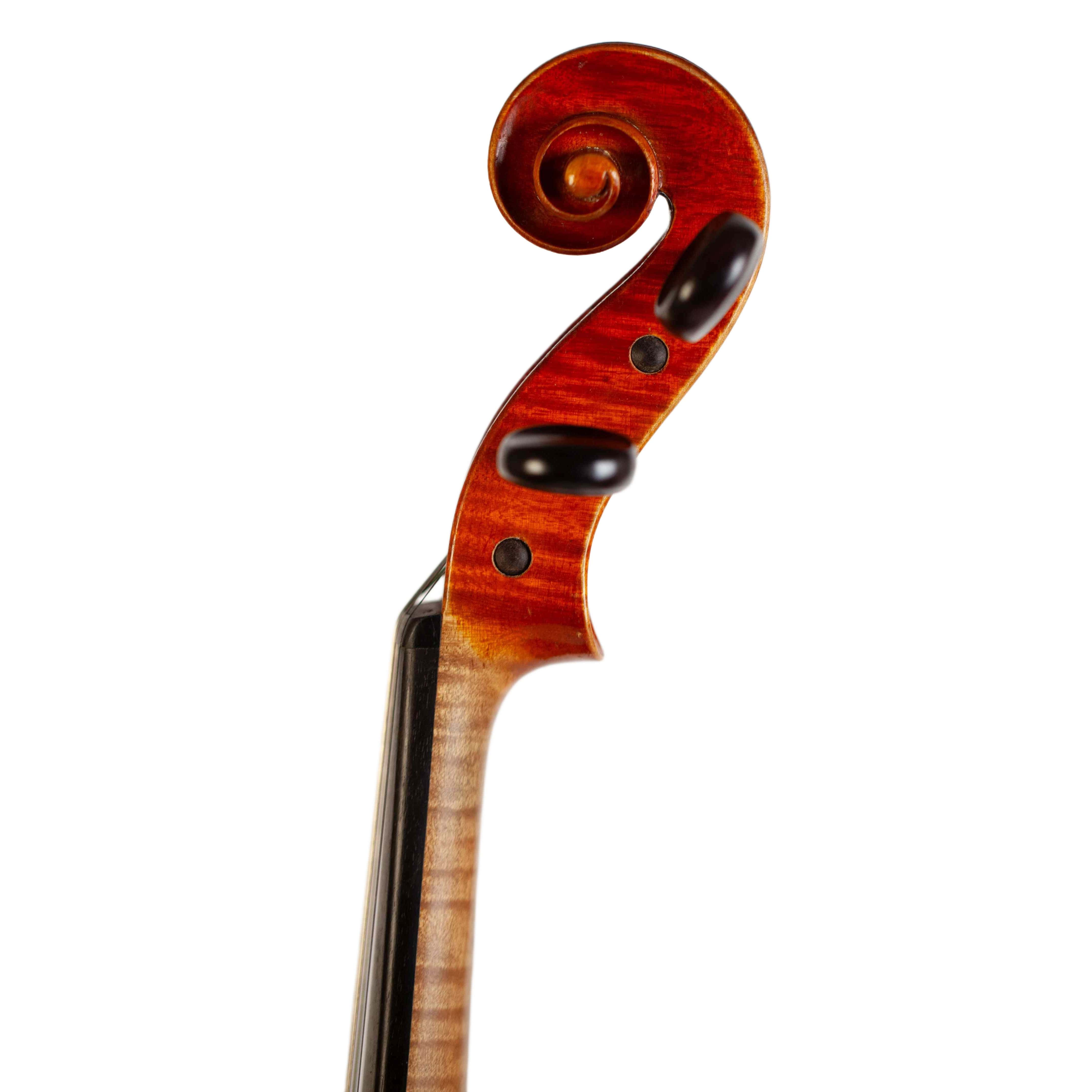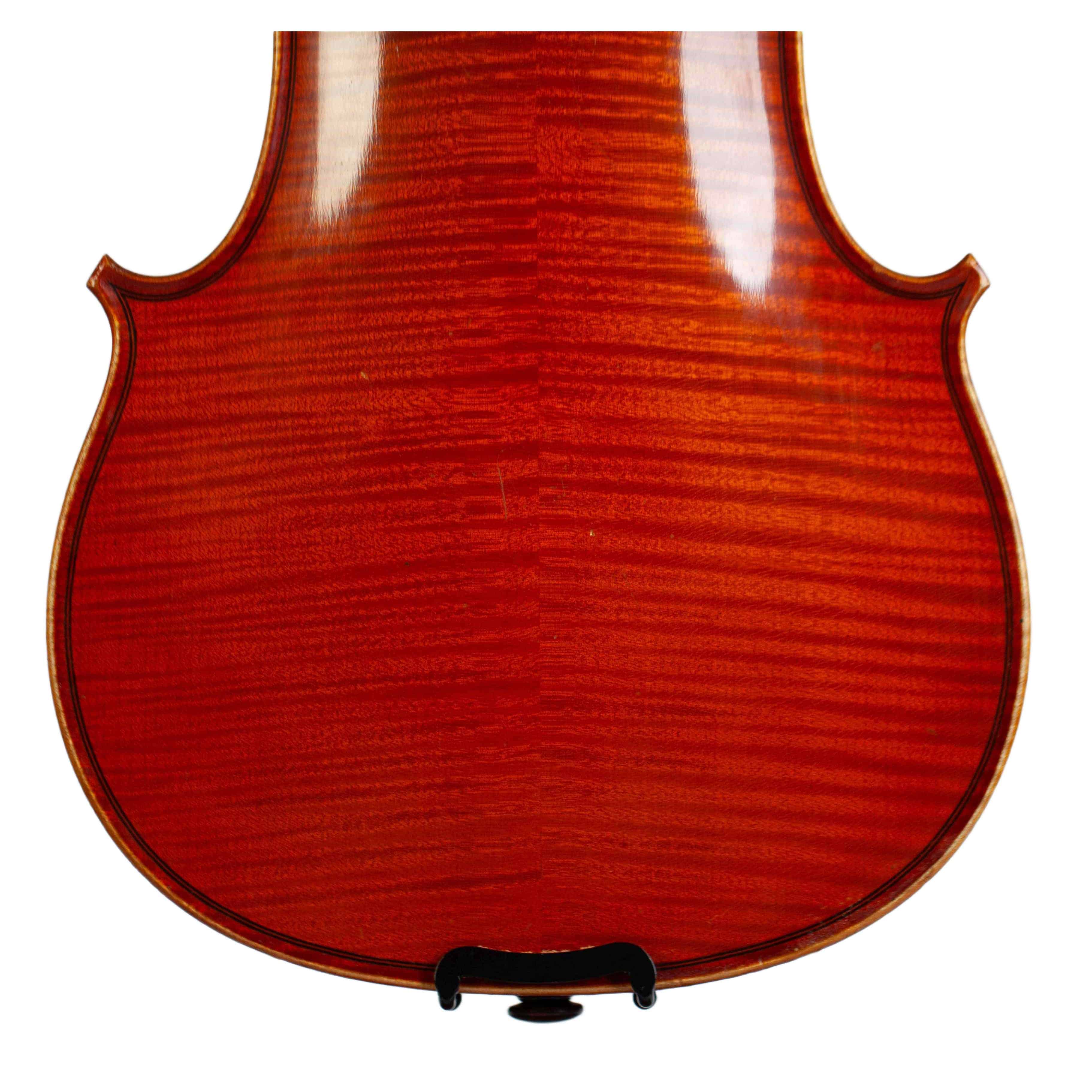 The whole length of the violin is 59 cm and the back 35,9 cm. Width of the upper bout: 16,6 cm; middle: 11,5 cm; lower: 20,8 cm.