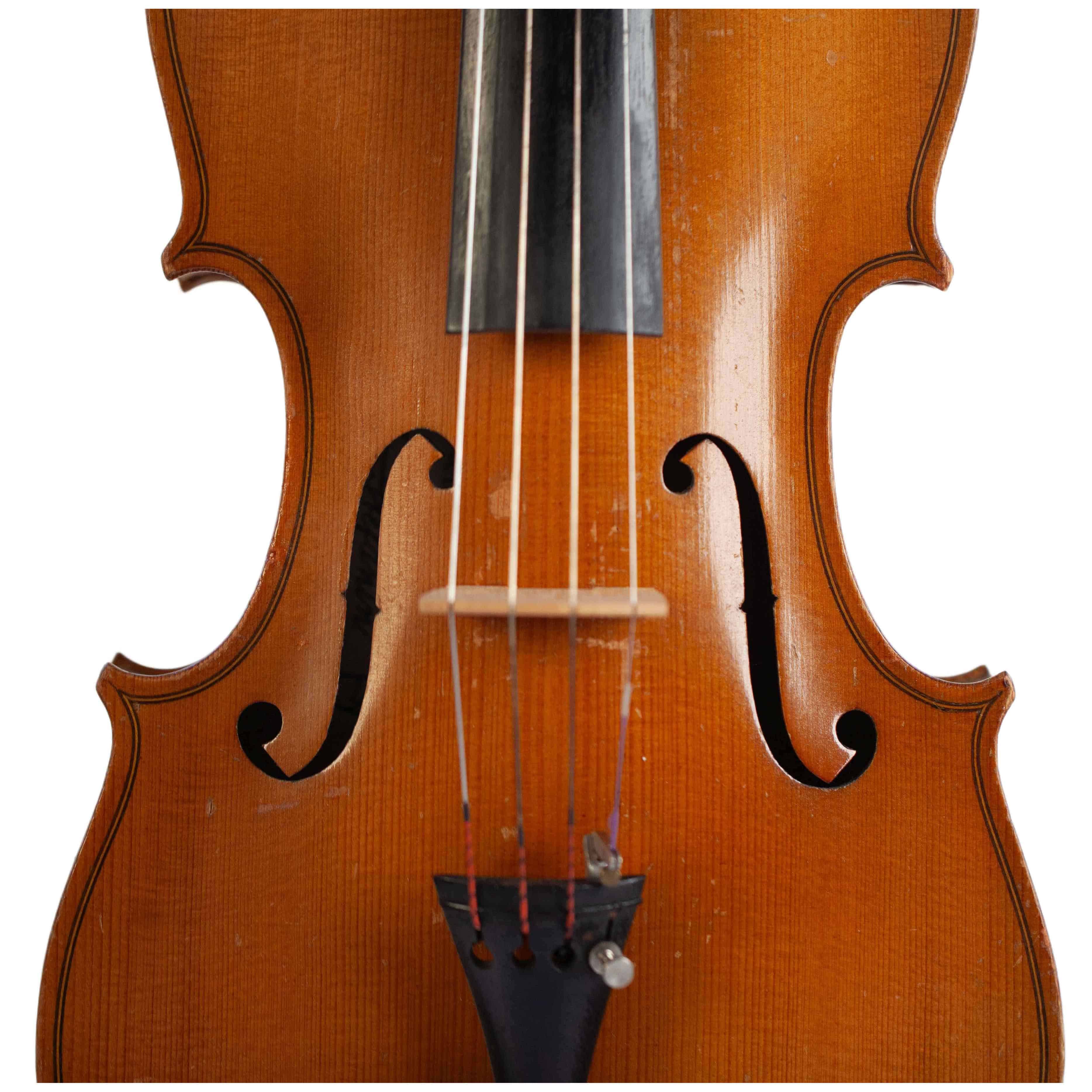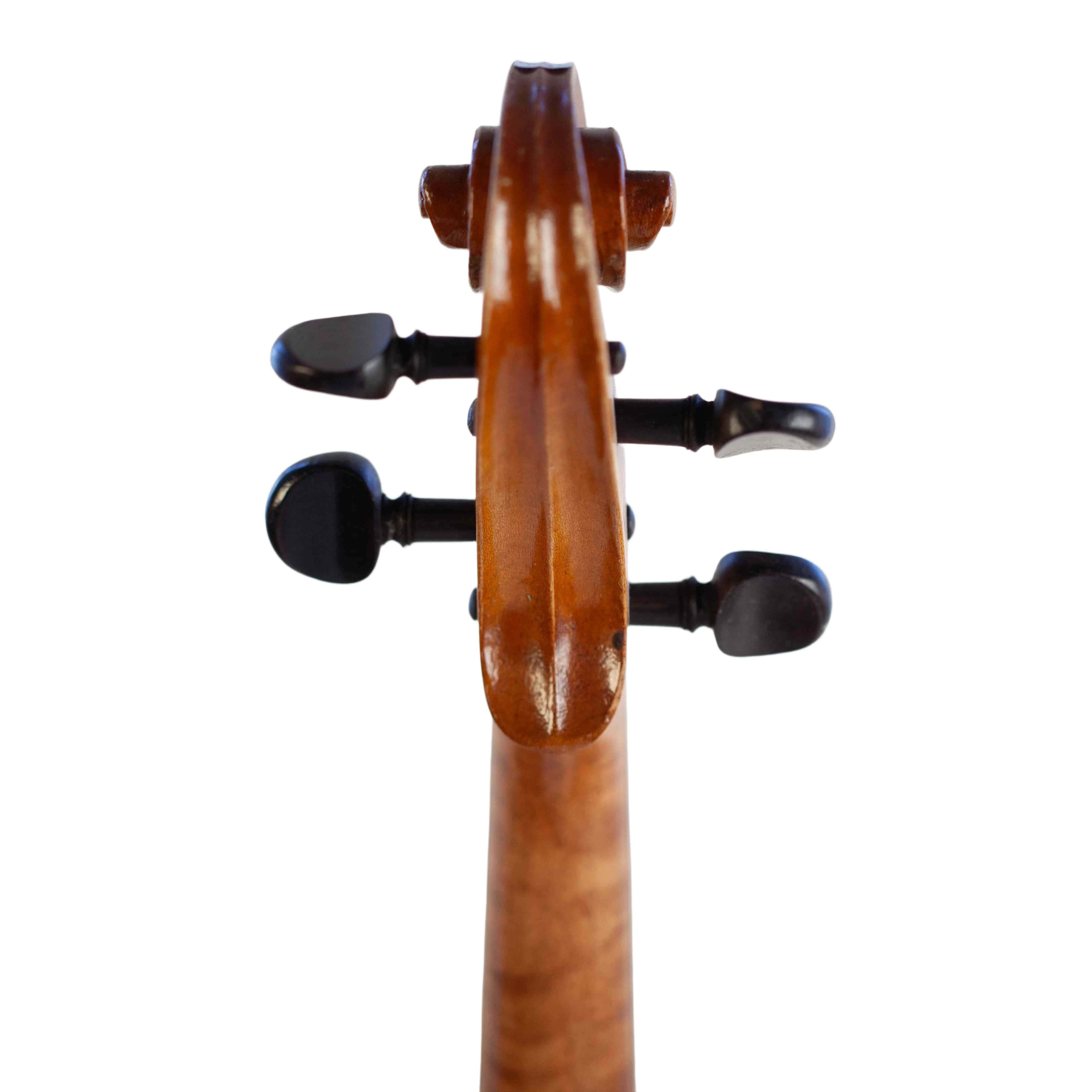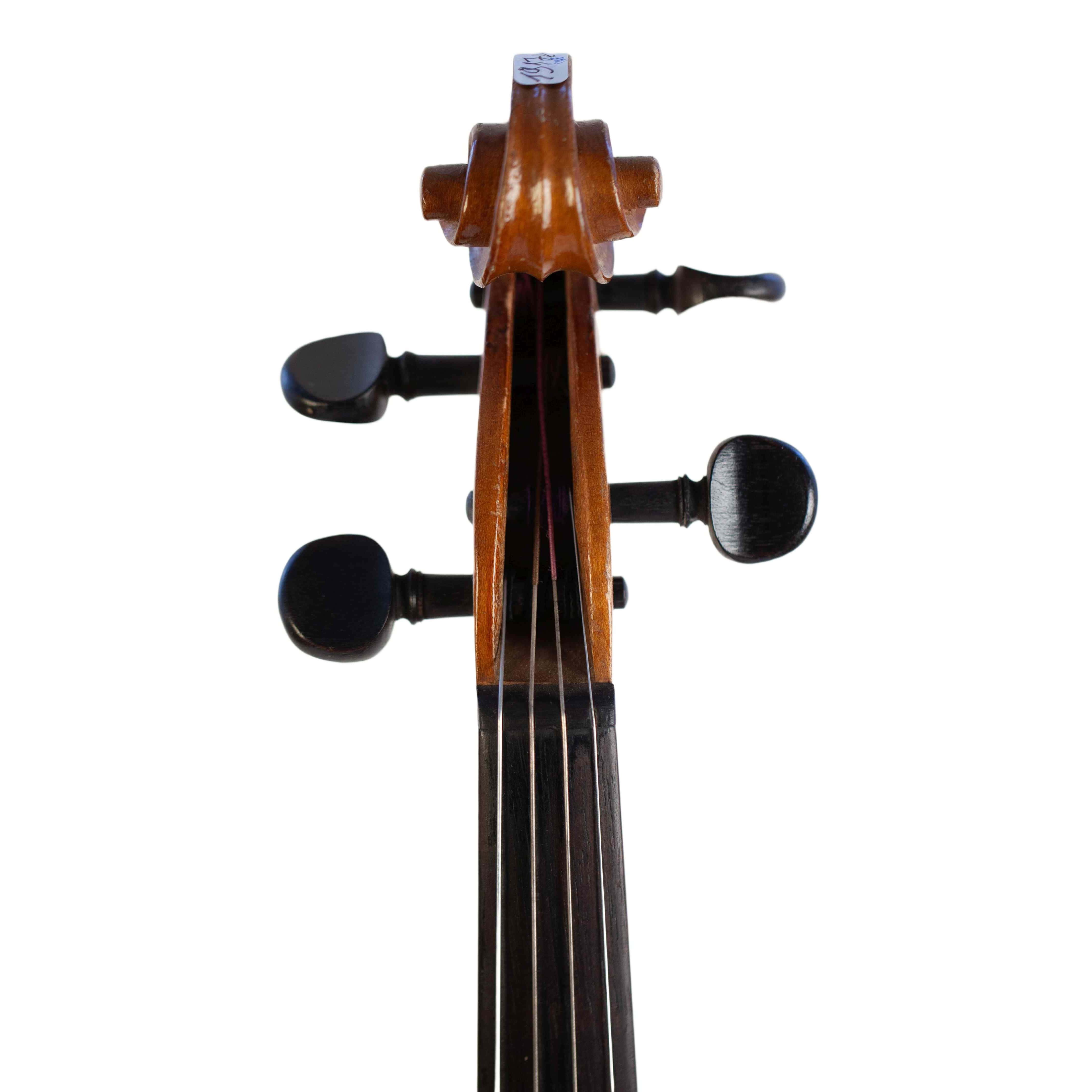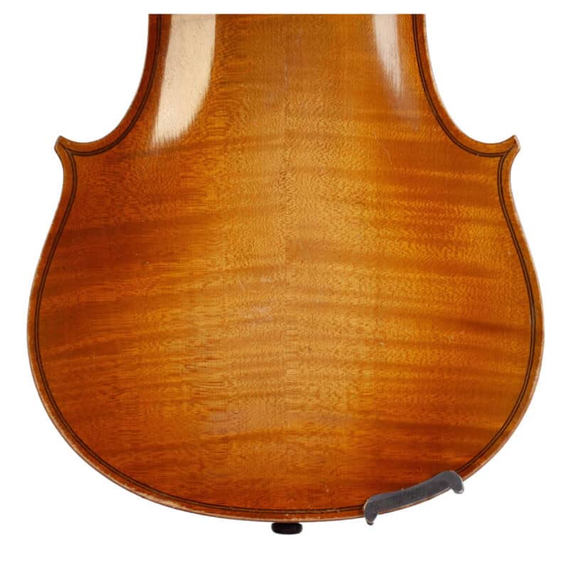 The whole length of the violin is 589 mm and the back 360 mm. The width of the upper bouts: 167 mm; middle bouts: 113 mm; lower bouts: 206 mm.