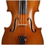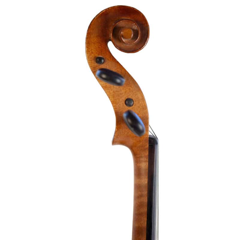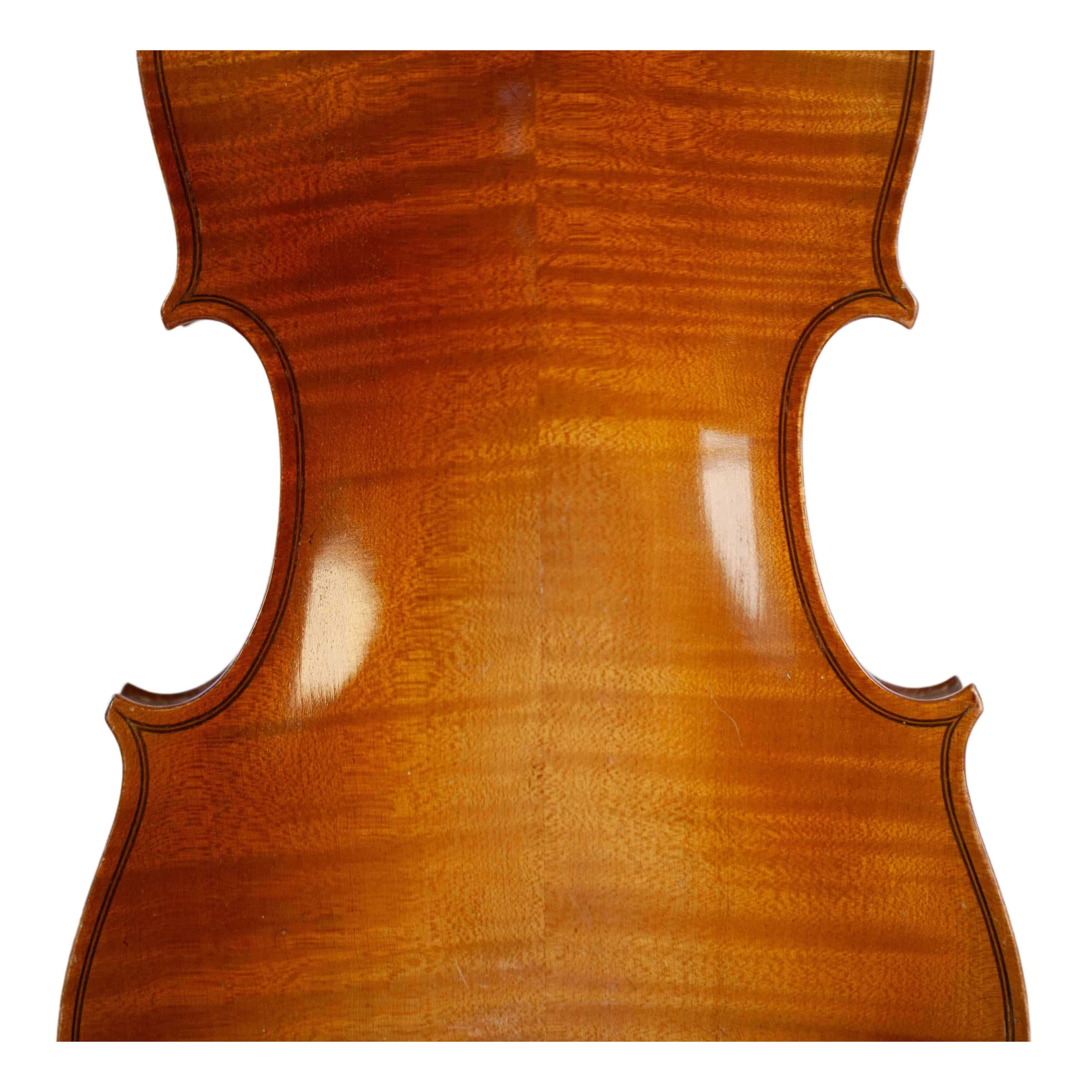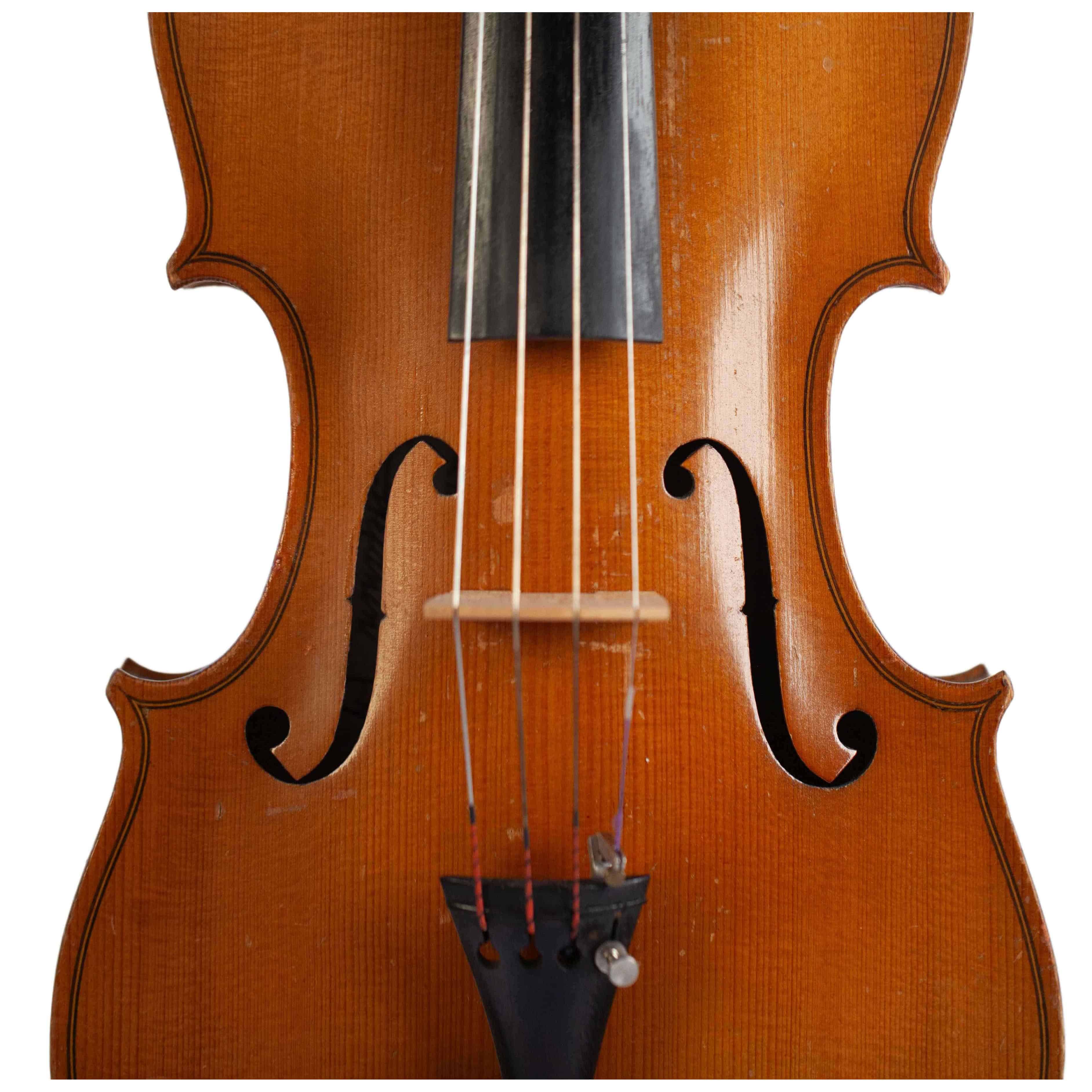 The whole length of the violin is 589 mm and the back 360 mm. The width of the upper bouts: 167 mm; middle bouts: 113 mm; lower bouts: 206 mm.