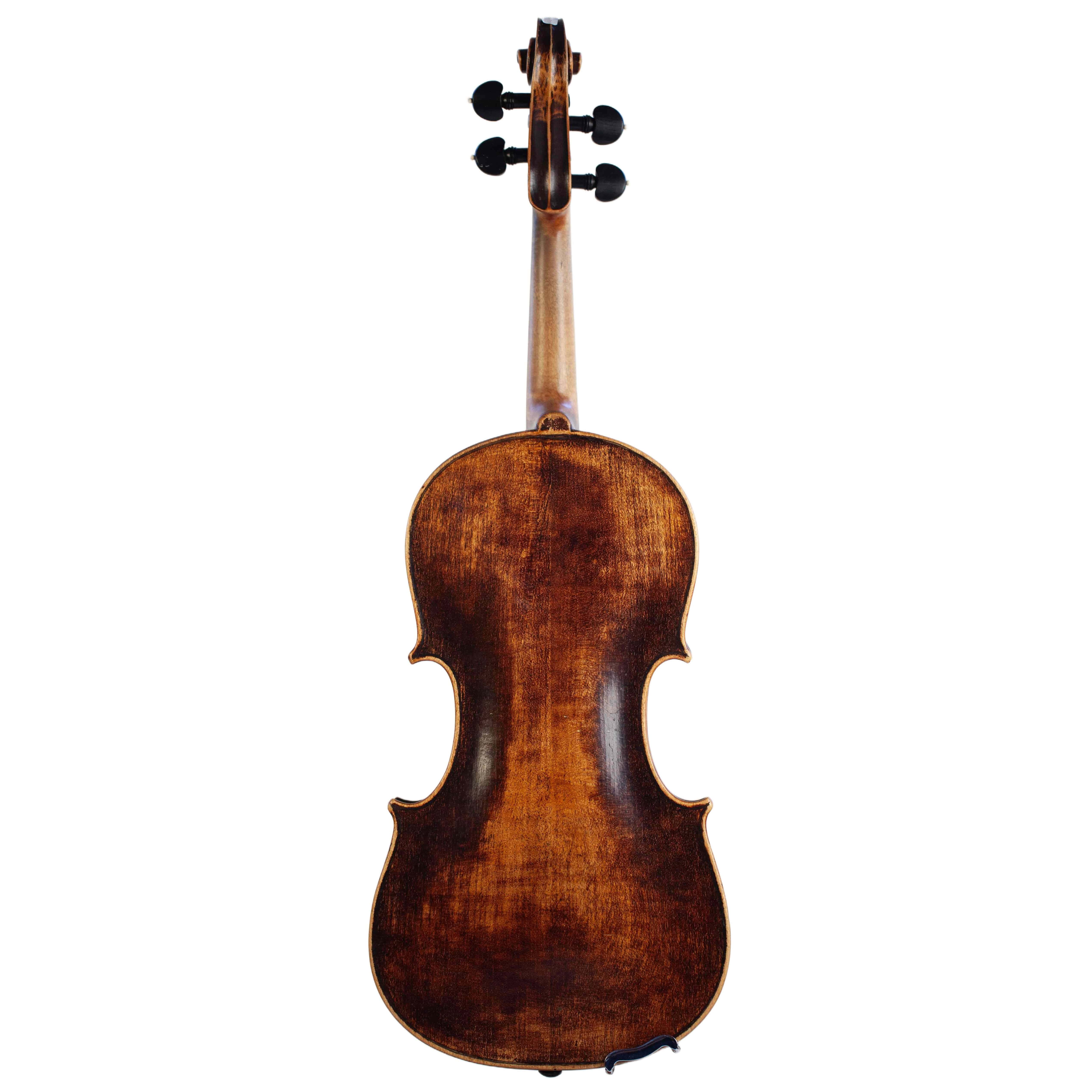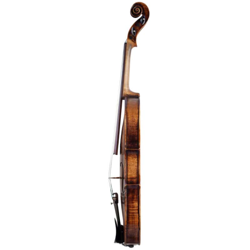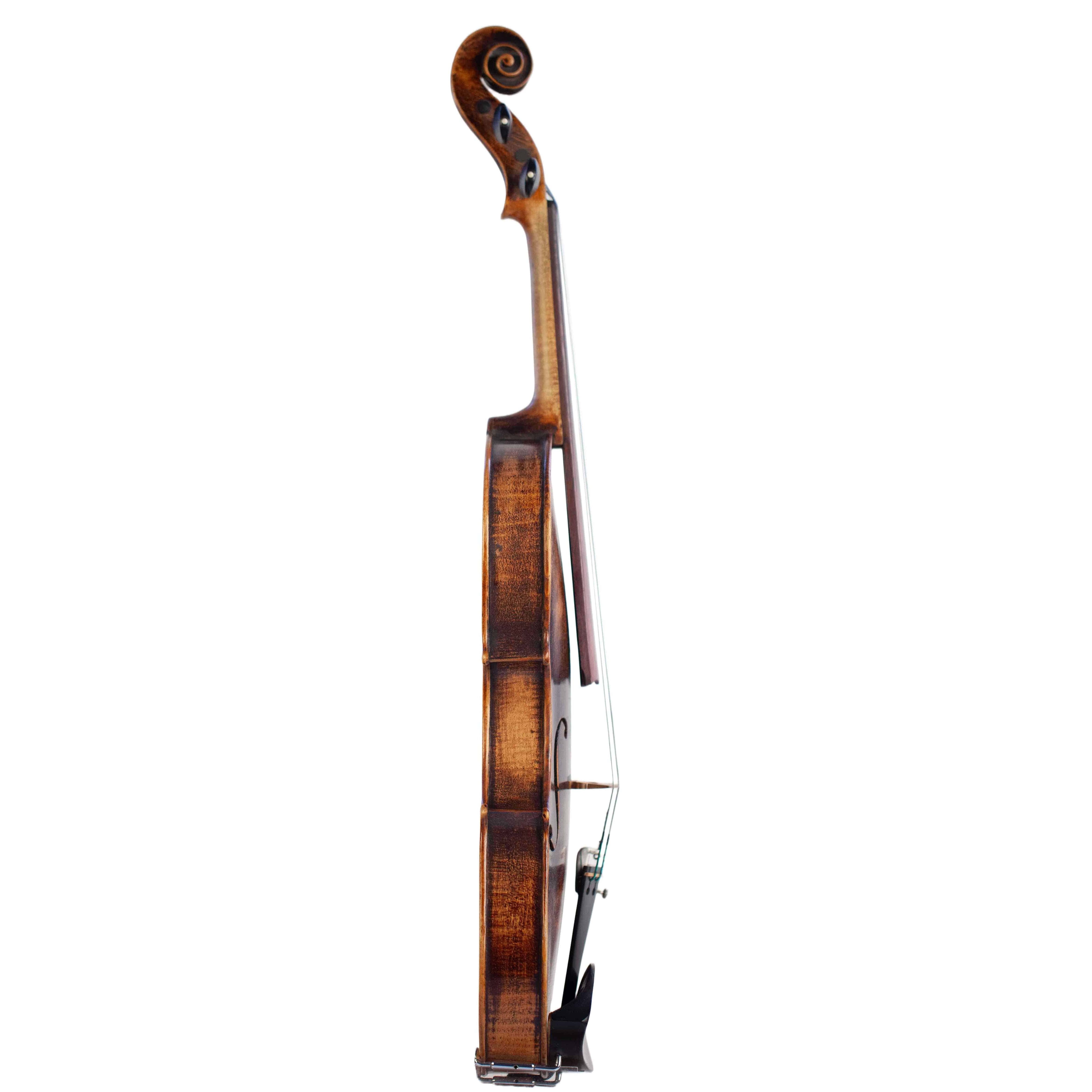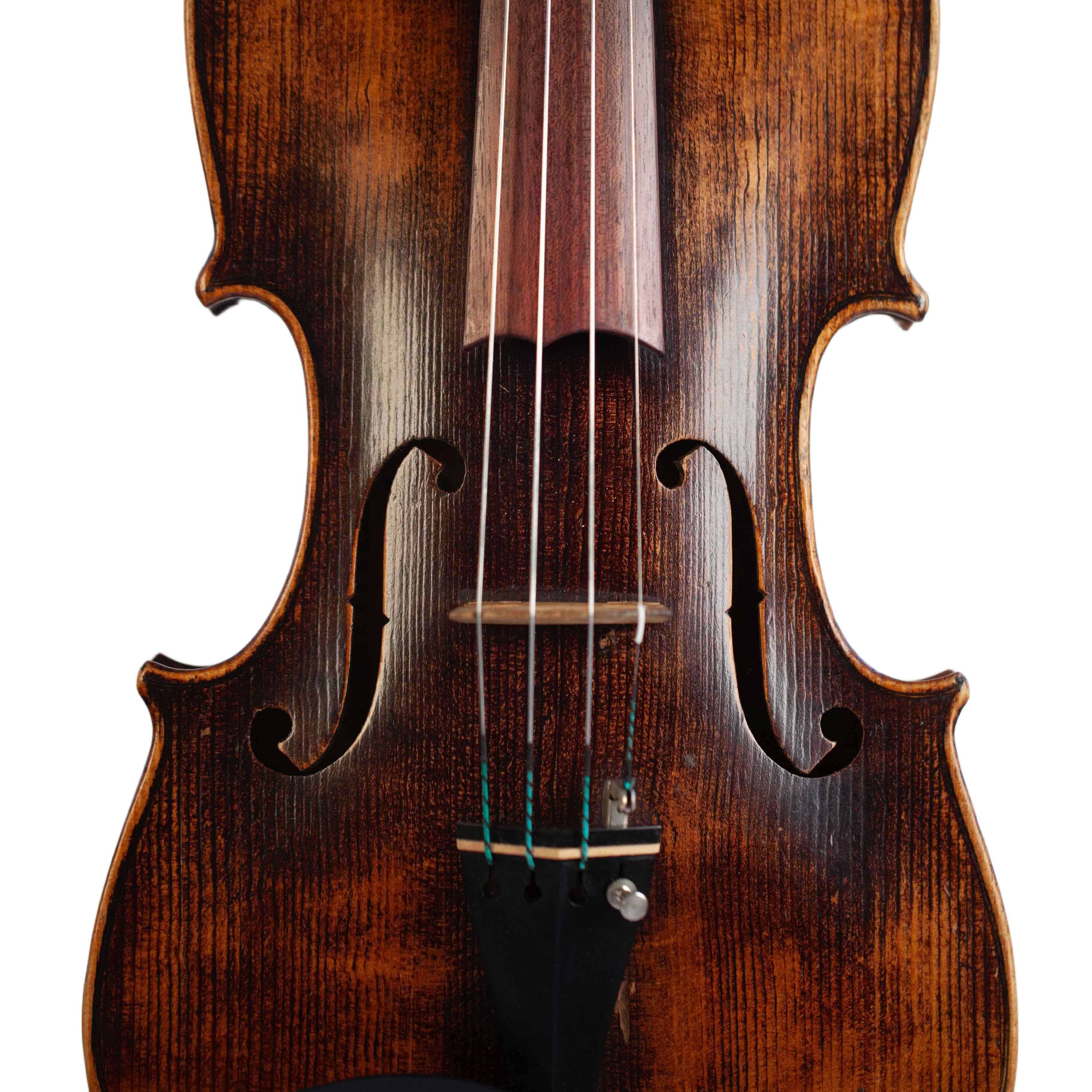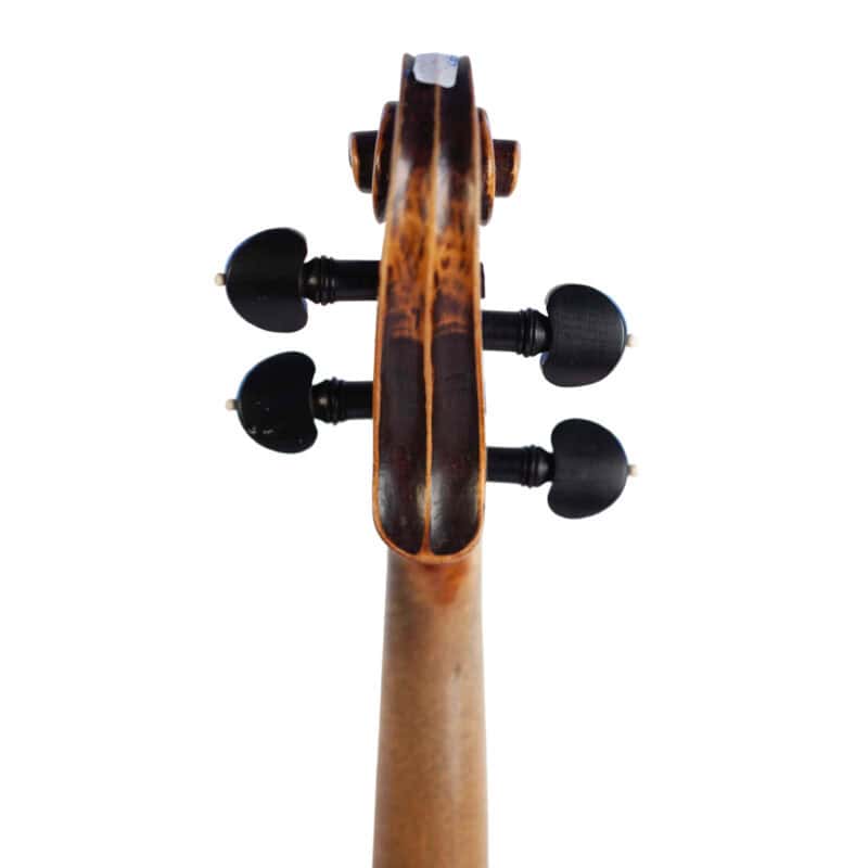The whole length of the violin is 589 mm and the back 359 mm. The width of the upper bouts: 165 mm; middle bouts: 109 mm; lower bouts: 203 mm.