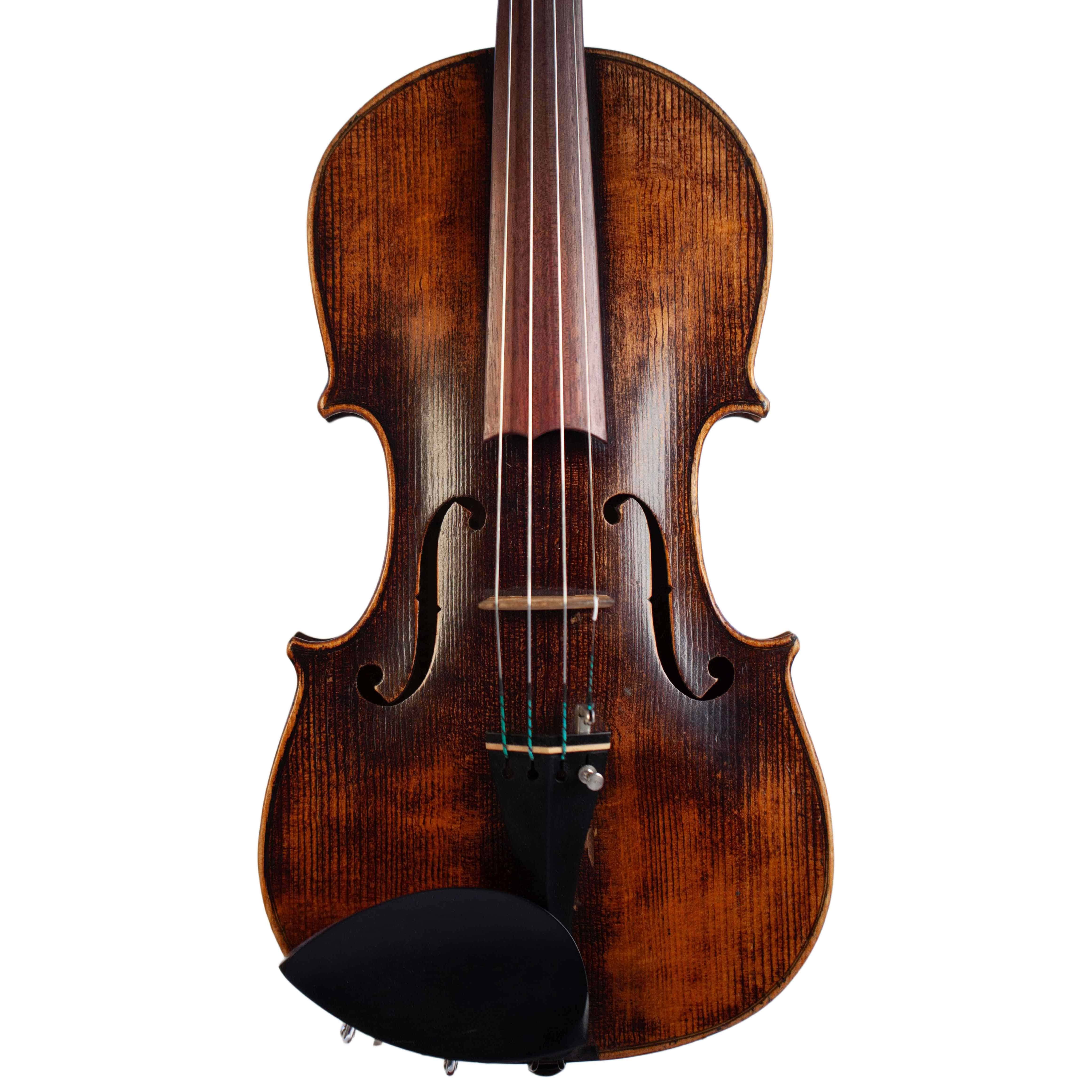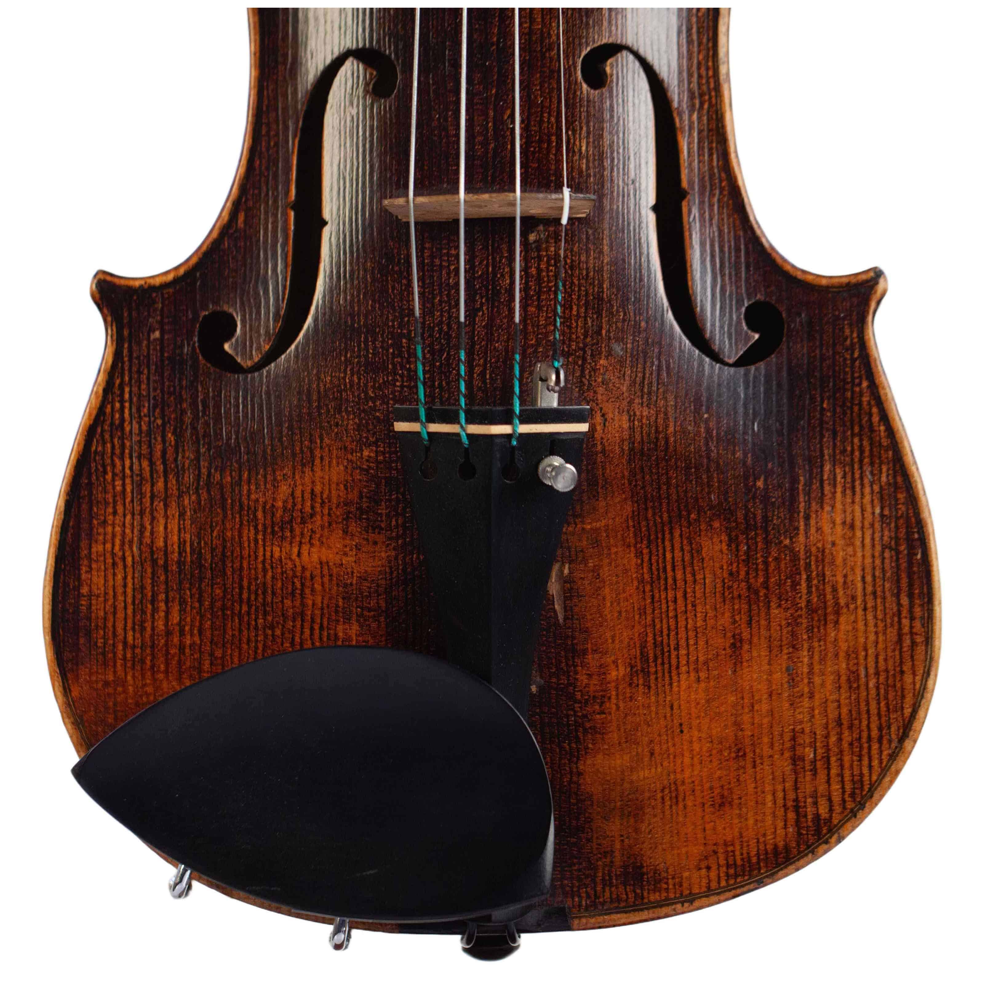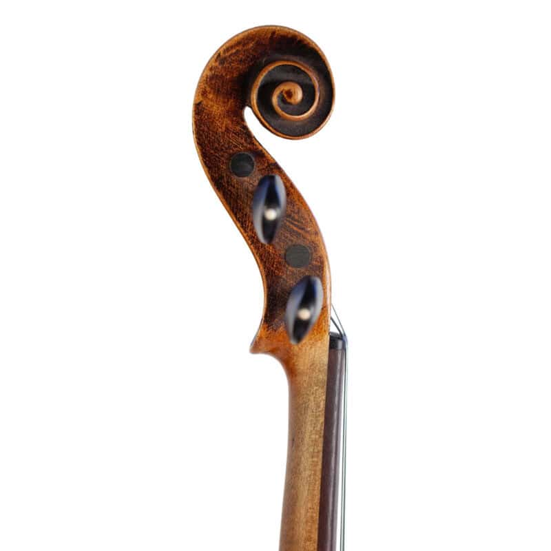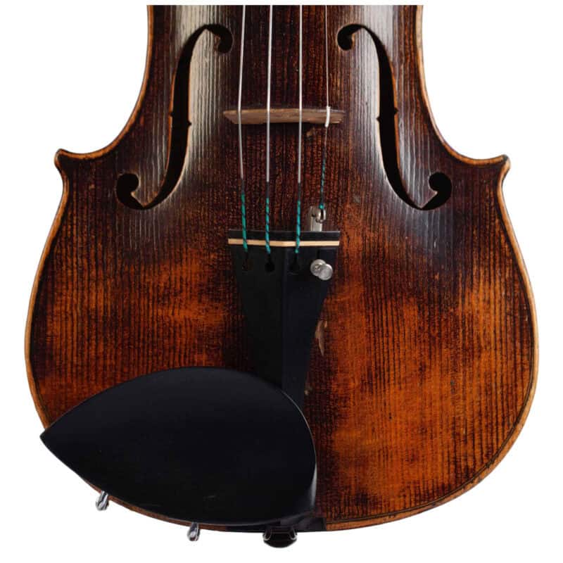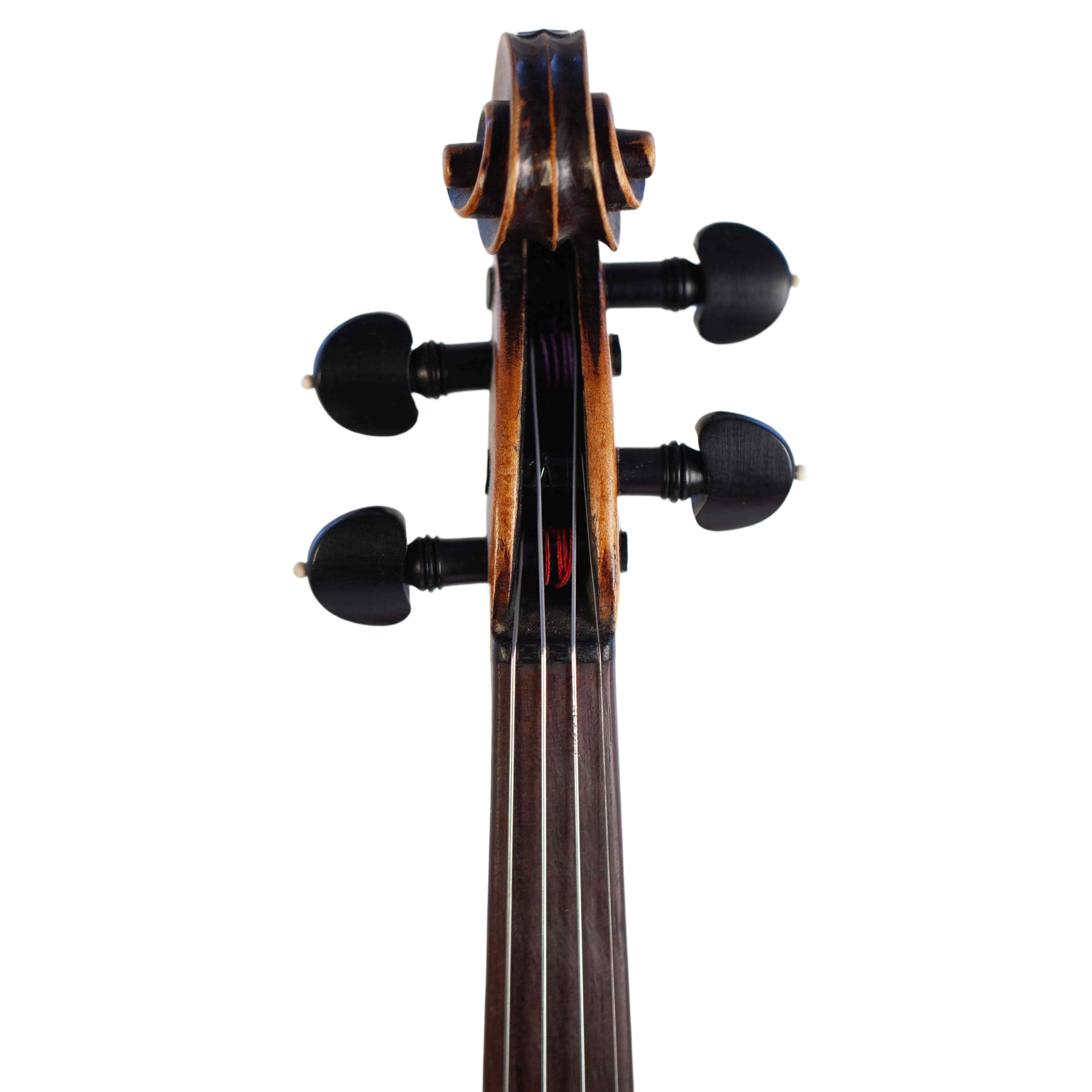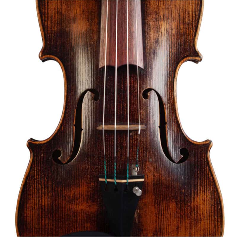 The whole length of the violin is 589 mm and the back 359 mm. The width of the upper bouts: 165 mm; middle bouts: 109 mm; lower bouts: 203 mm.