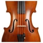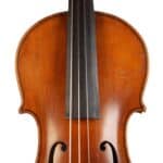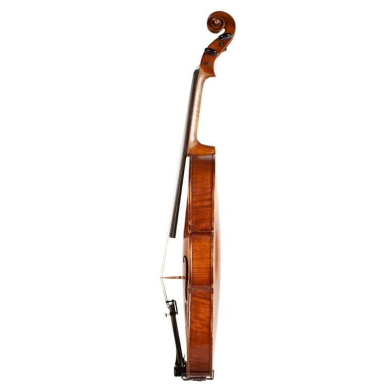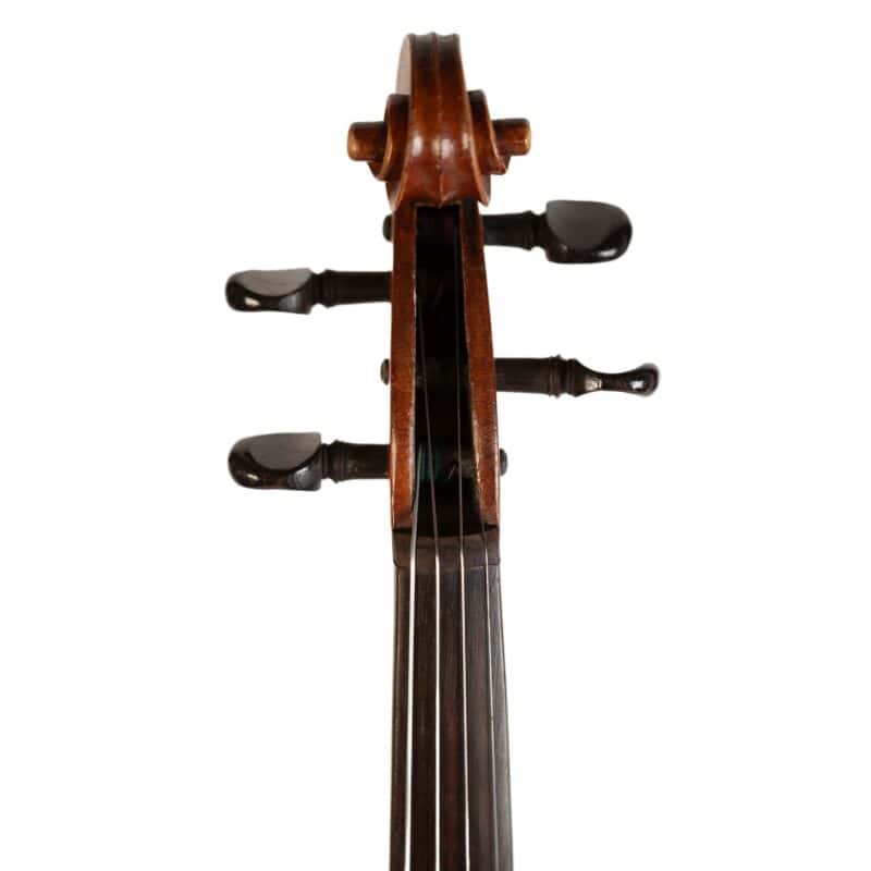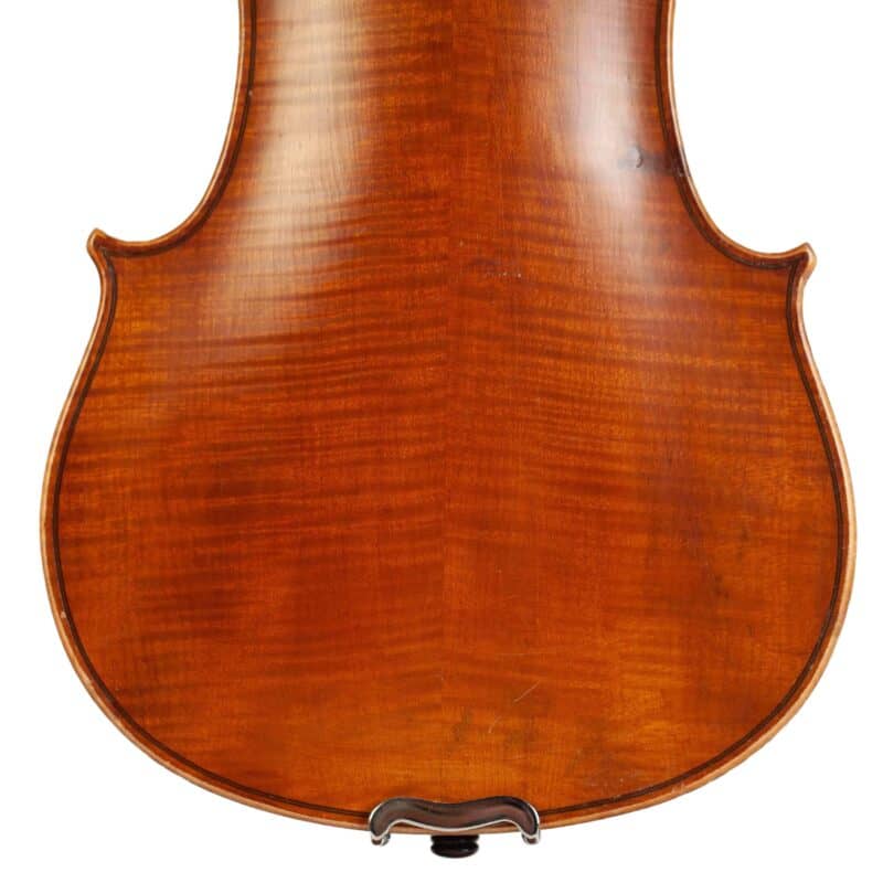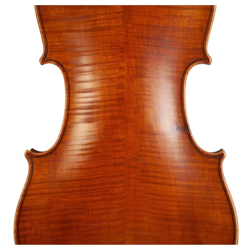 The whole length of the violin is 589 mm and the back 357 mm. The width of the upper bouts: 167 mm; middle bouts: 114 mm; lower bouts: 206 mm.