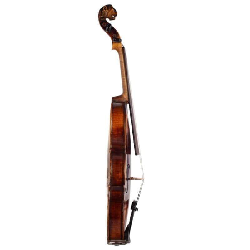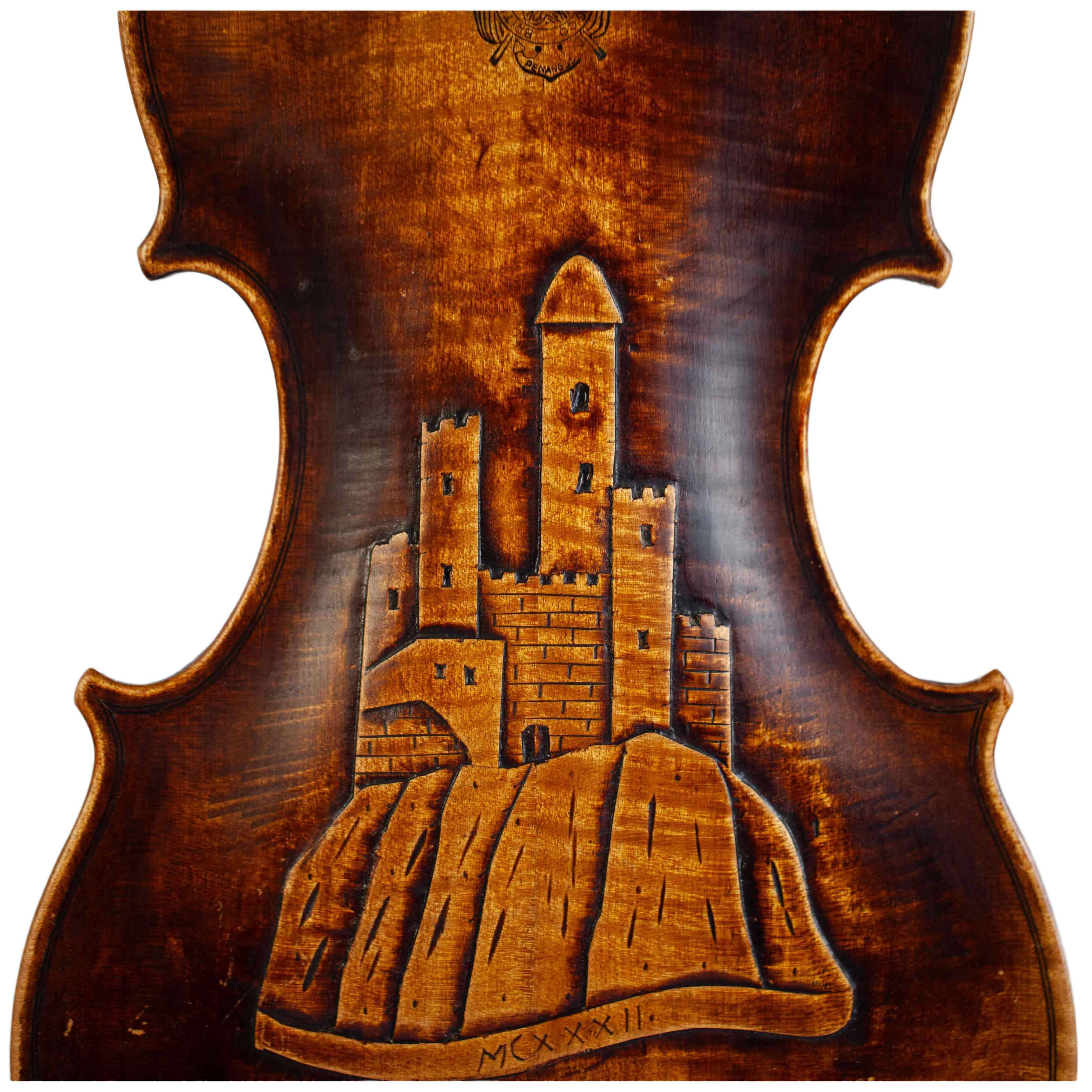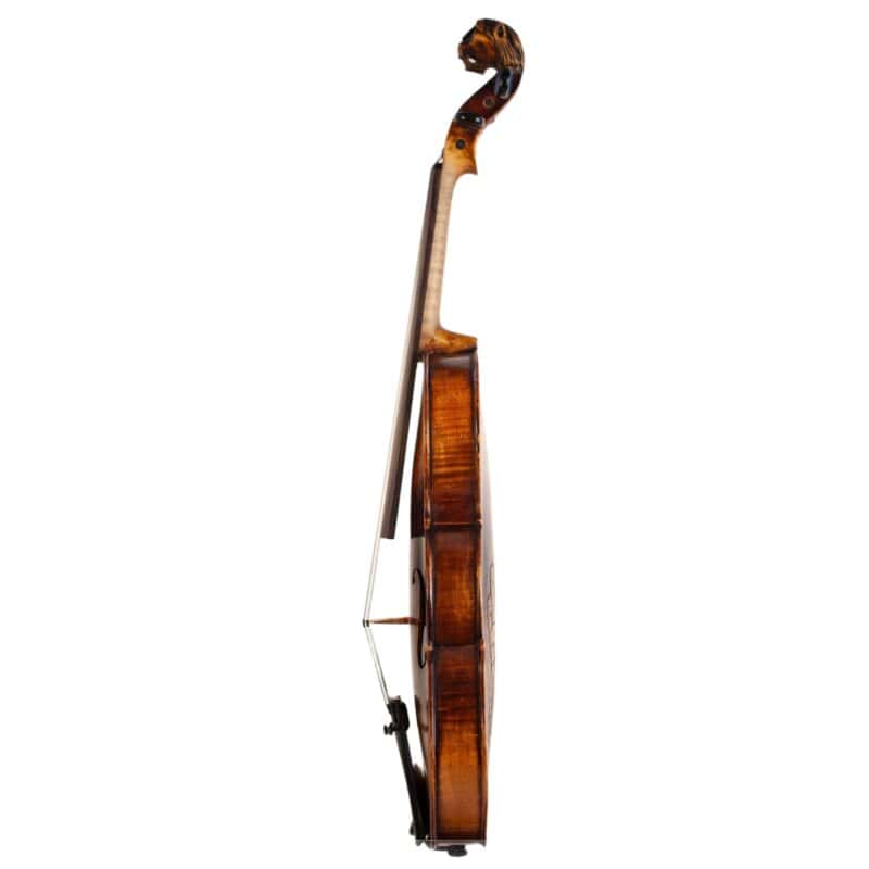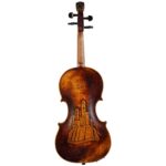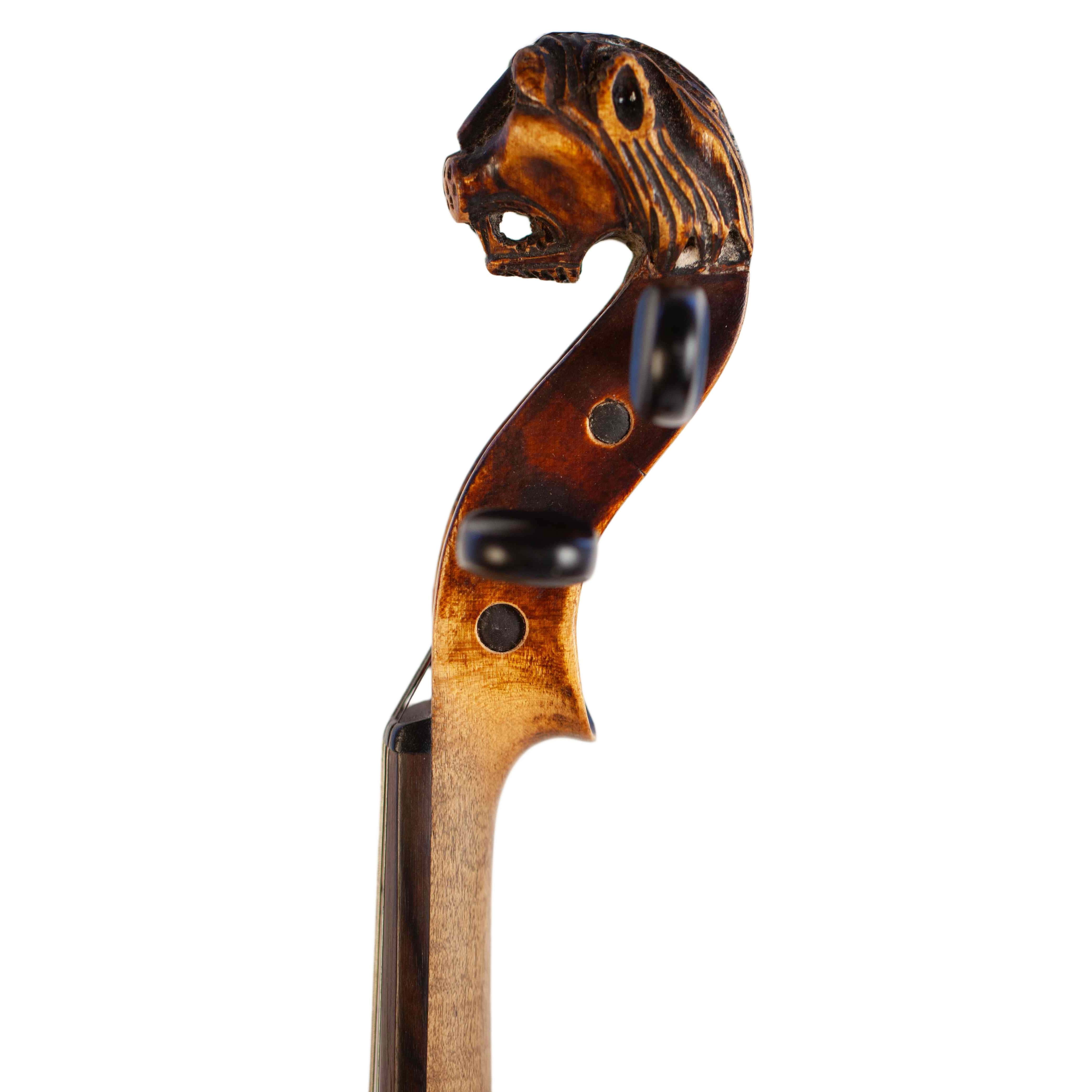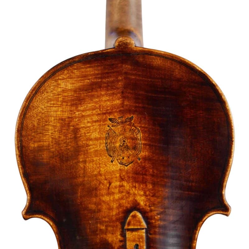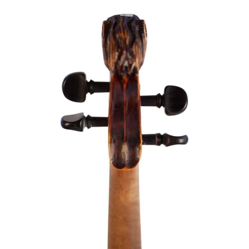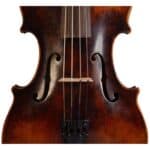 The whole length of the violin is 600 mm and the back 359 mm. The width of the upper bouts: 168 mm; middle bouts: 107 mm; lower bouts: 210 mm.