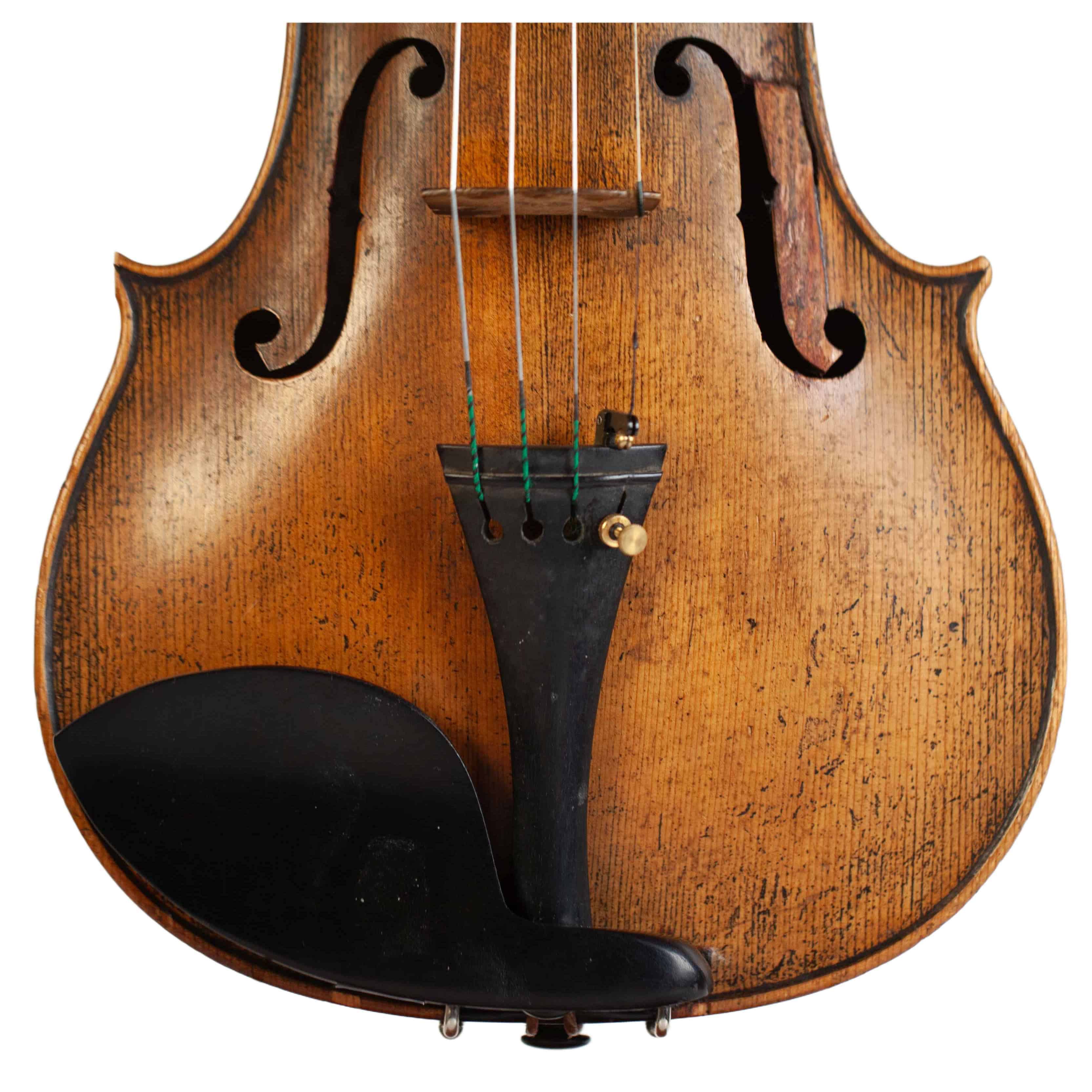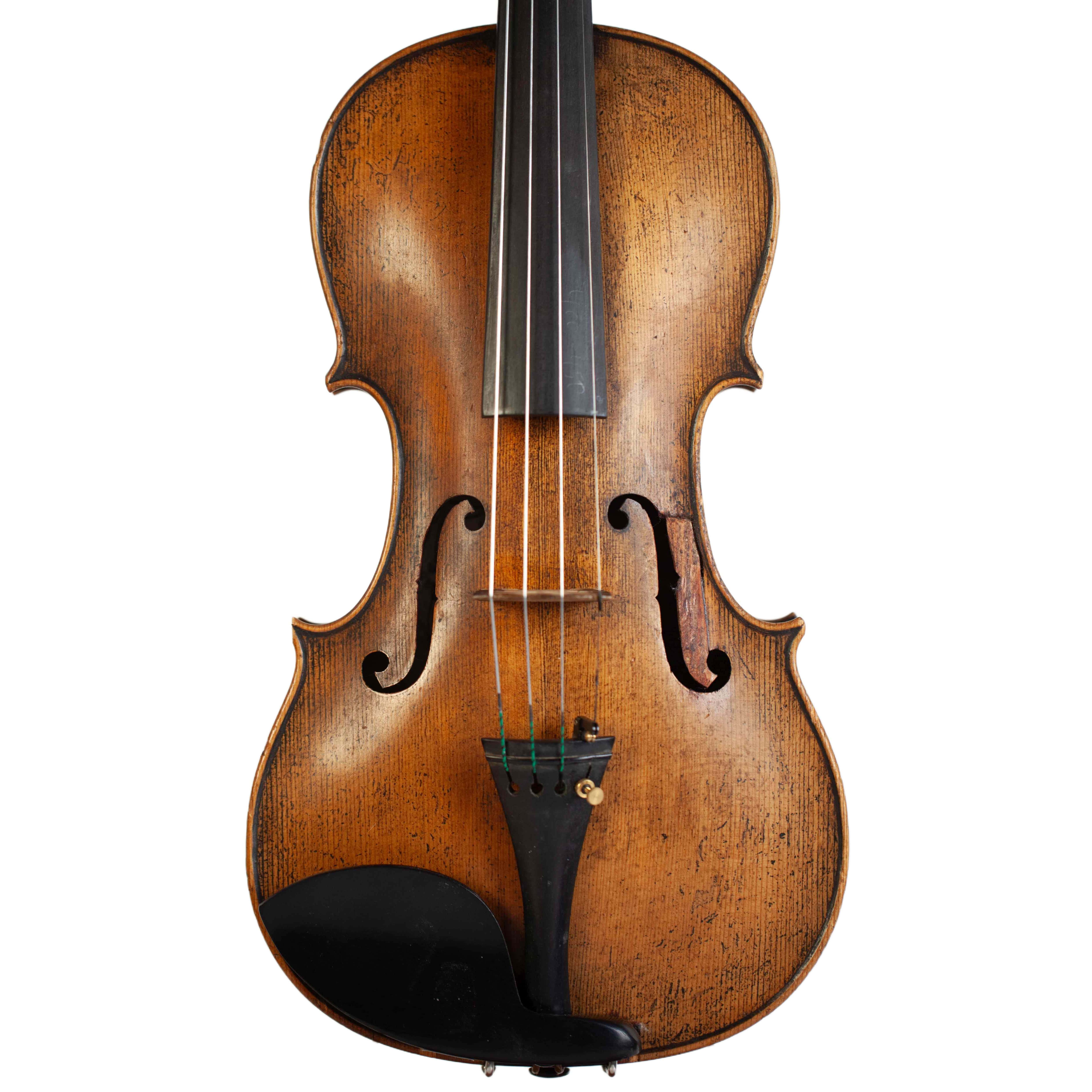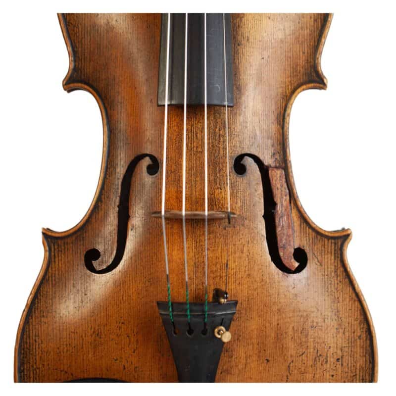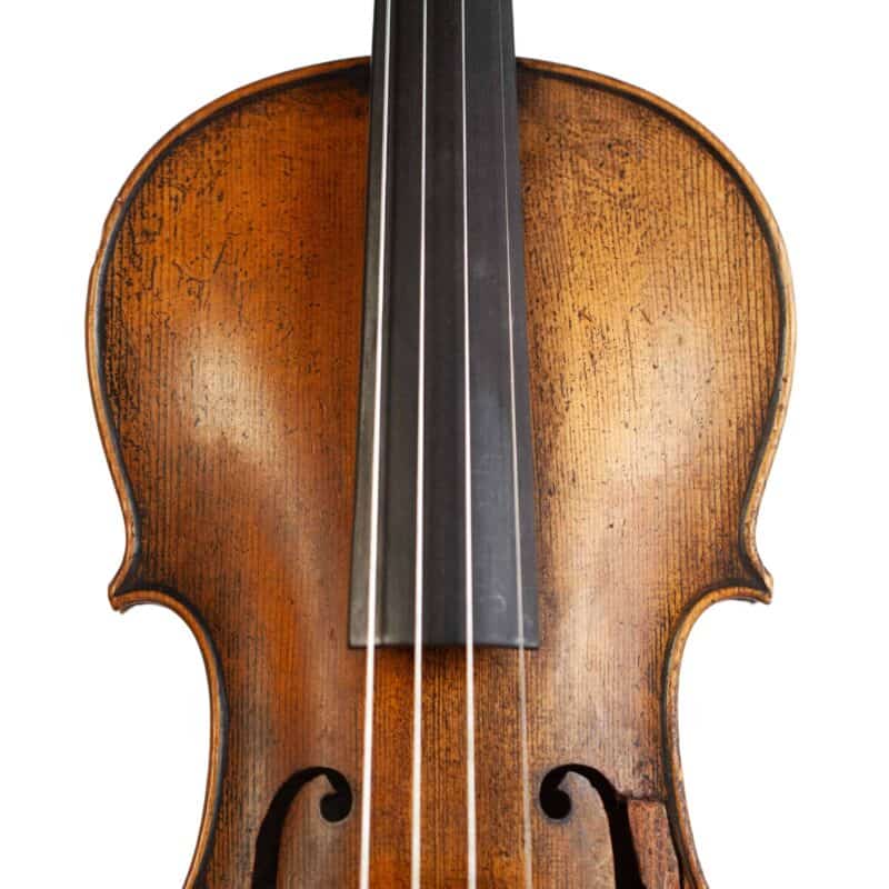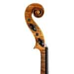 The whole length of the violin is 591 mm and the back 358 mm. The width of the upper bouts: 163 mm; middle bouts: 110 mm; lower bouts: 208 mm.