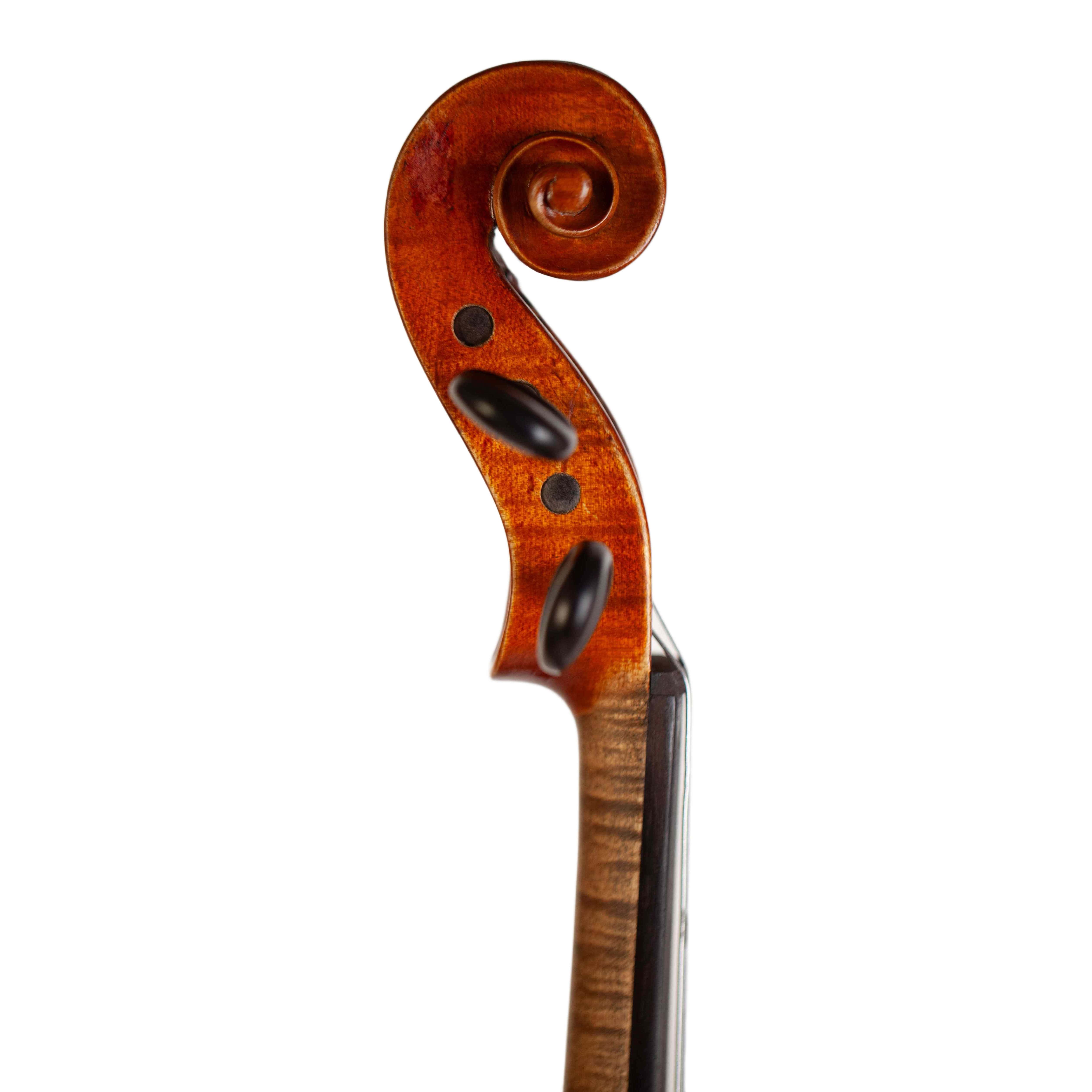 The total length of the violin is 588 mm, body – 356 mm. Width of the upper bout: 168 mm; middle: 113 mm; lower: 210 mm.