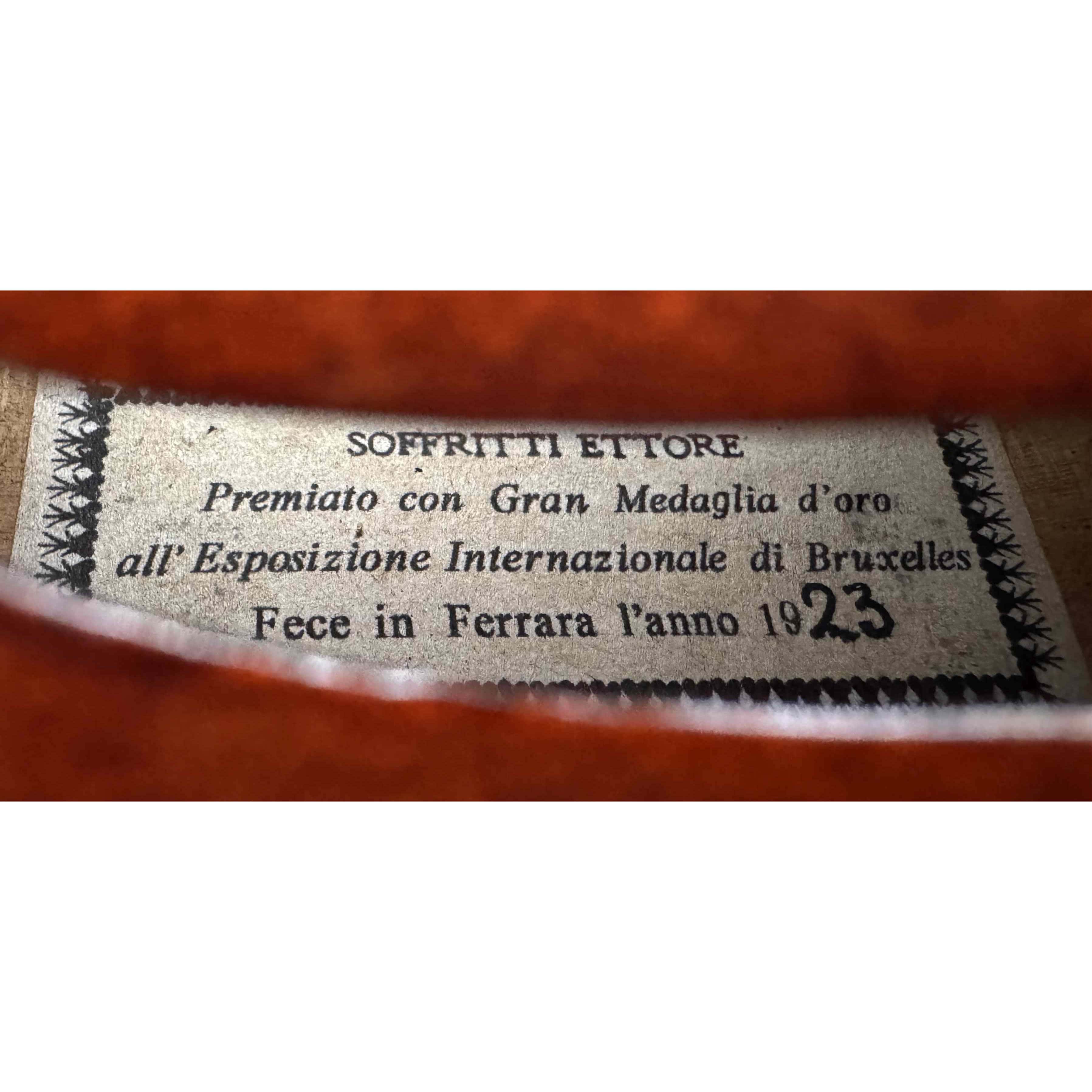 Label: SOFFRITTI ETTORE Premiato con Gran Medaglia d’oro all’Esposizione Interazionale di Bruxelles Fece in Ferrara l’anno 1923.