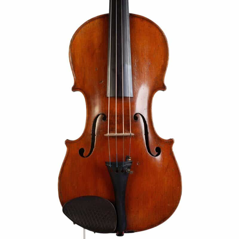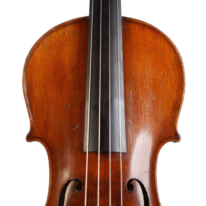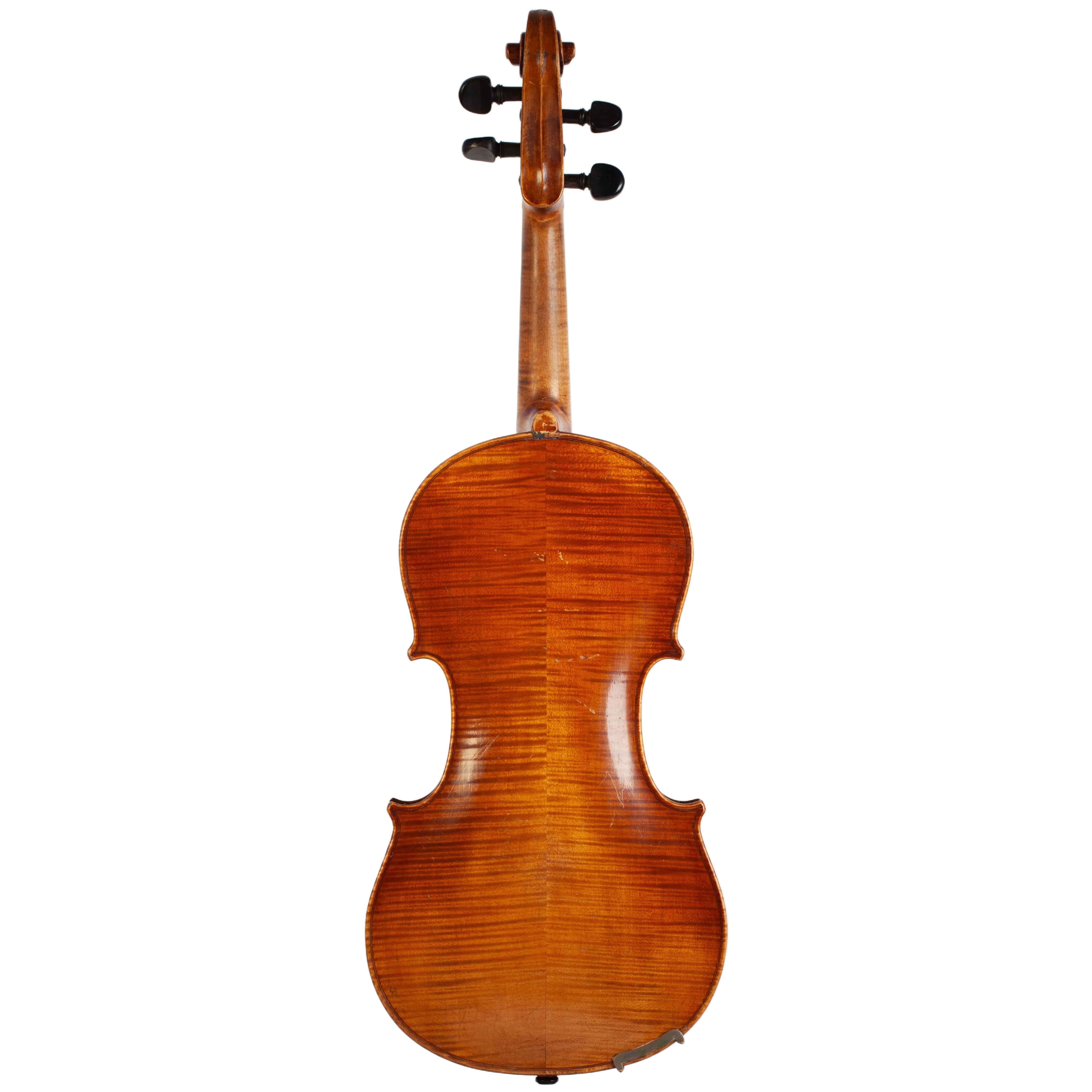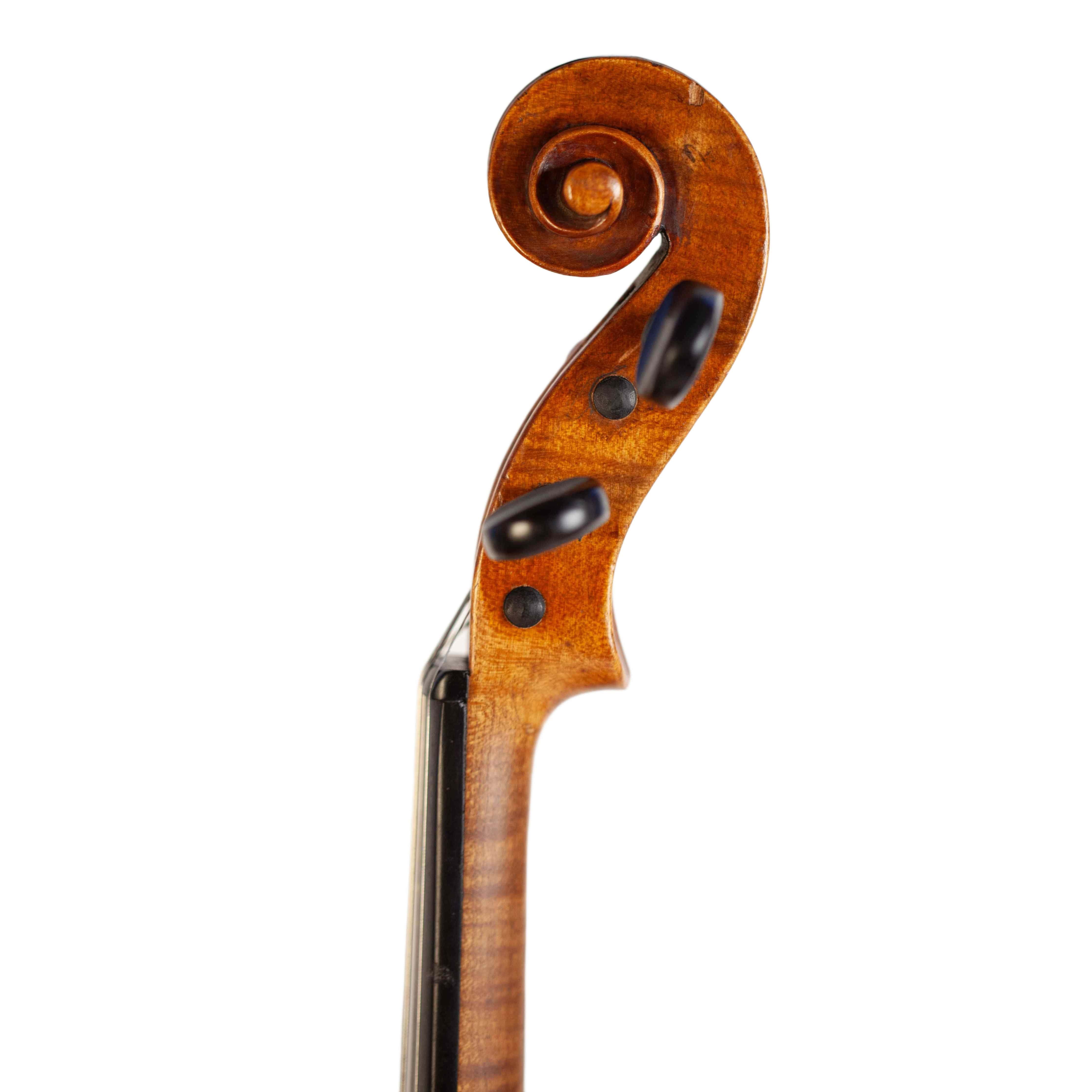 The whole length of the violin is 588 mm and the back 356 mm. The width of the upper bouts: 163 mm; middle bouts: 108 mm; lower bouts: 200 mm.
